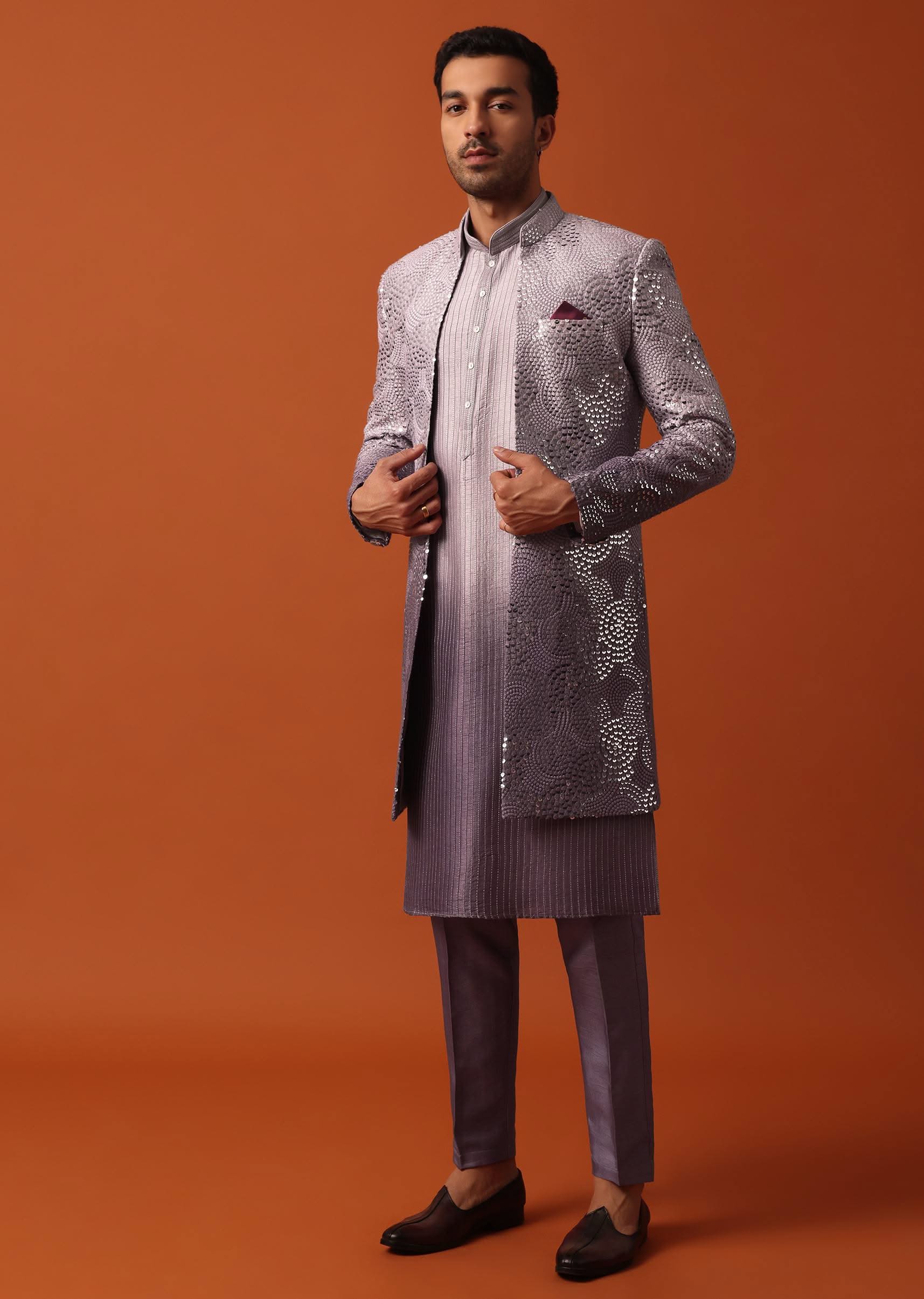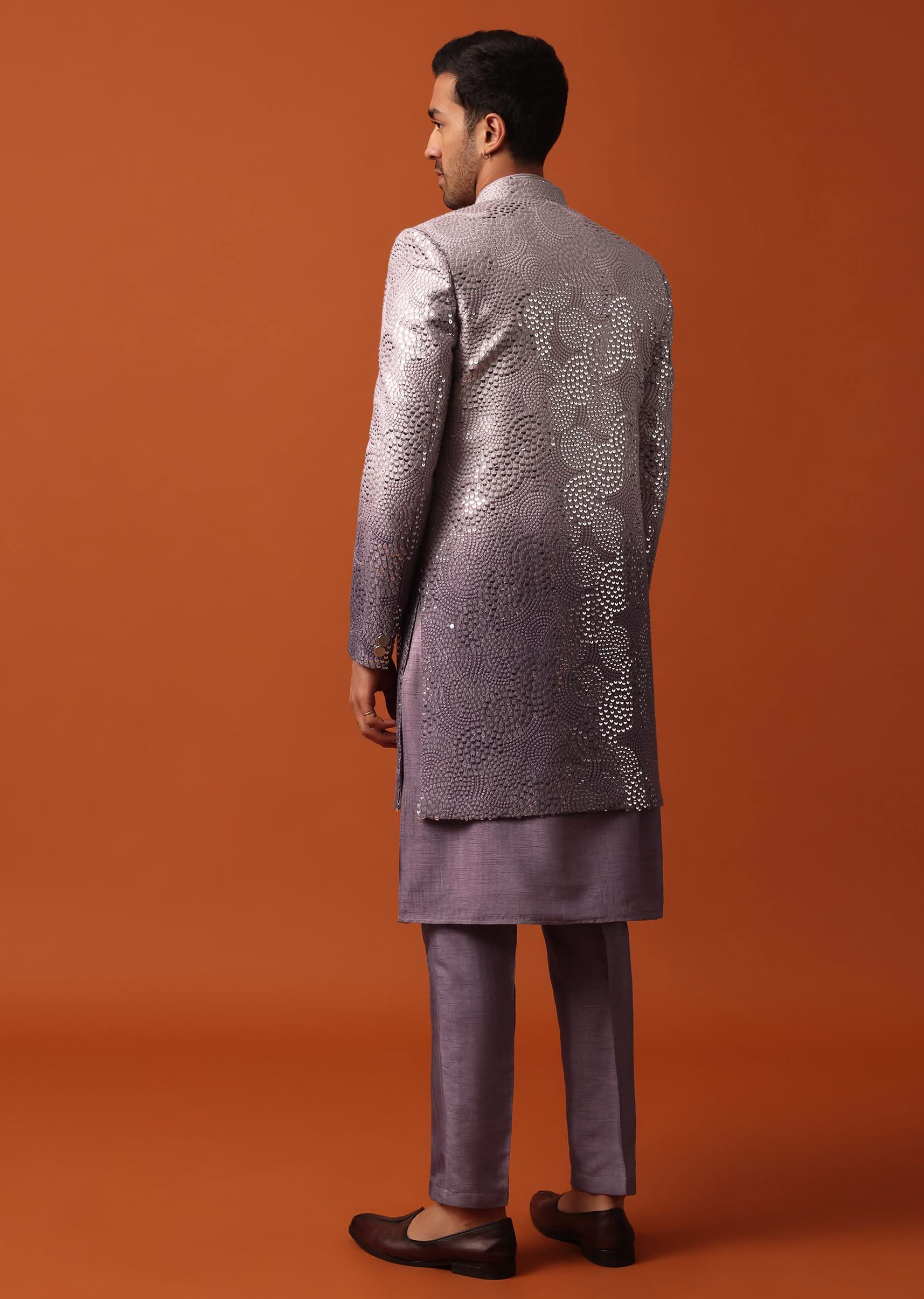 Purple Silk Intricate Sequin Embroidered Sherwani Set