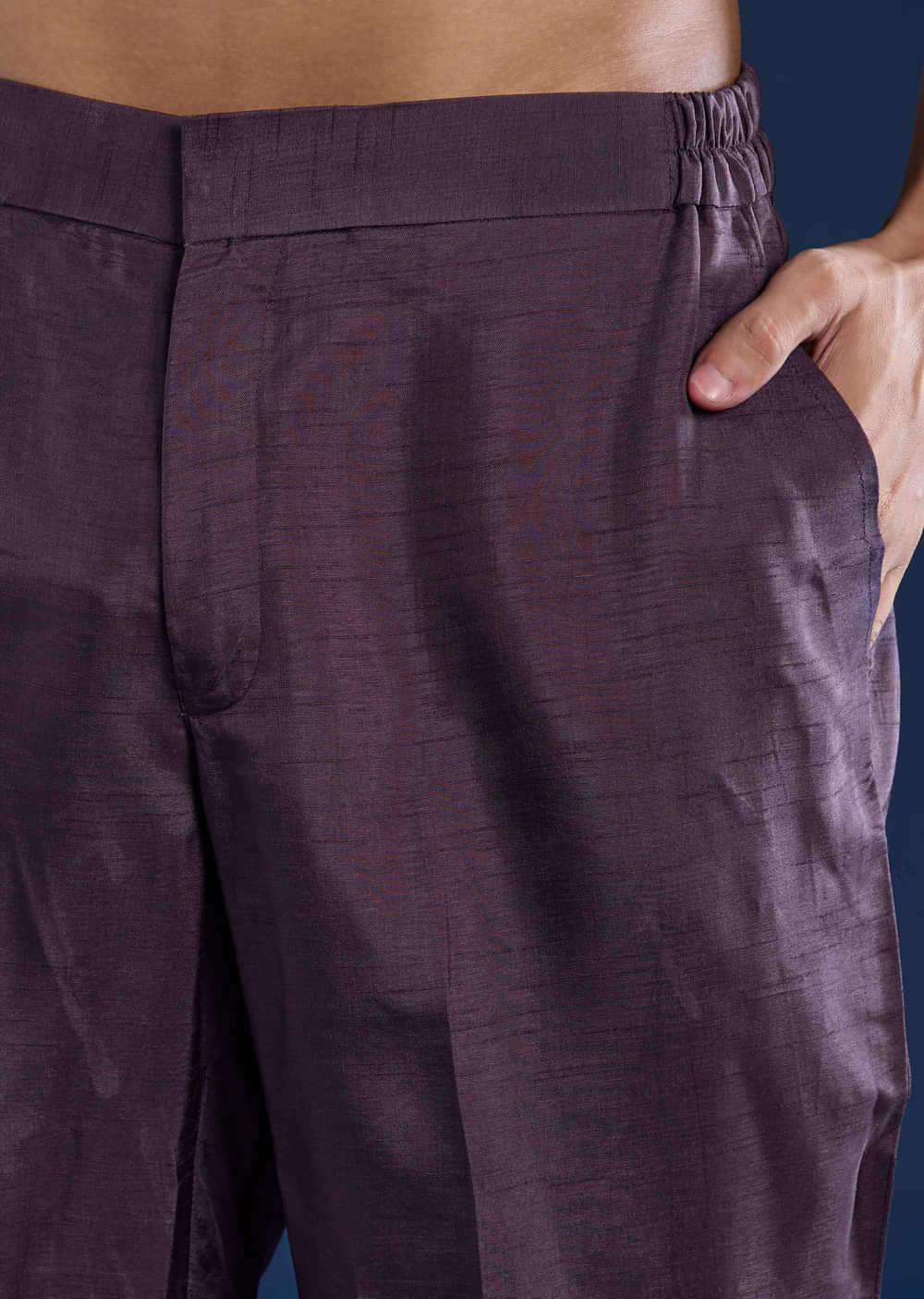 Infused with regal sophistication, this purple silk jacket and kurta set with matching pants reflects timeless elegance and craftsmanship. The rich silk fabric serves as the perfect canvas for intricate... More Product Details