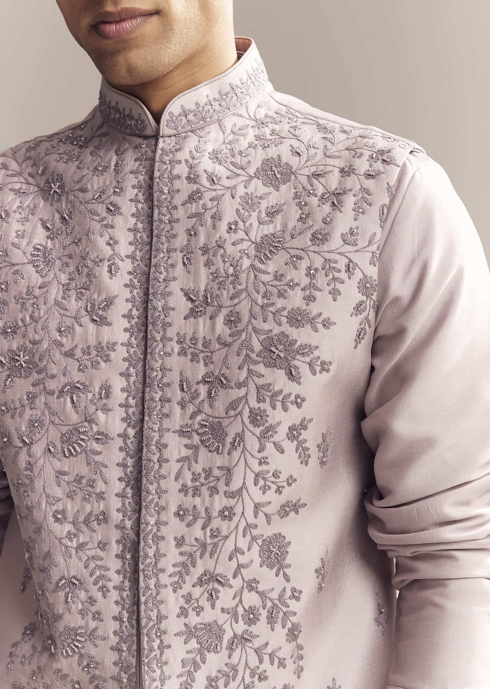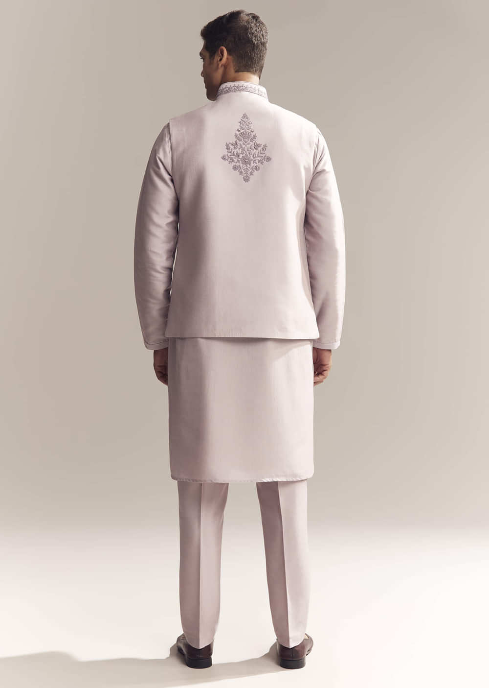 Purple Silk Kurta Jacket Set For Men With Heavy Embroidery