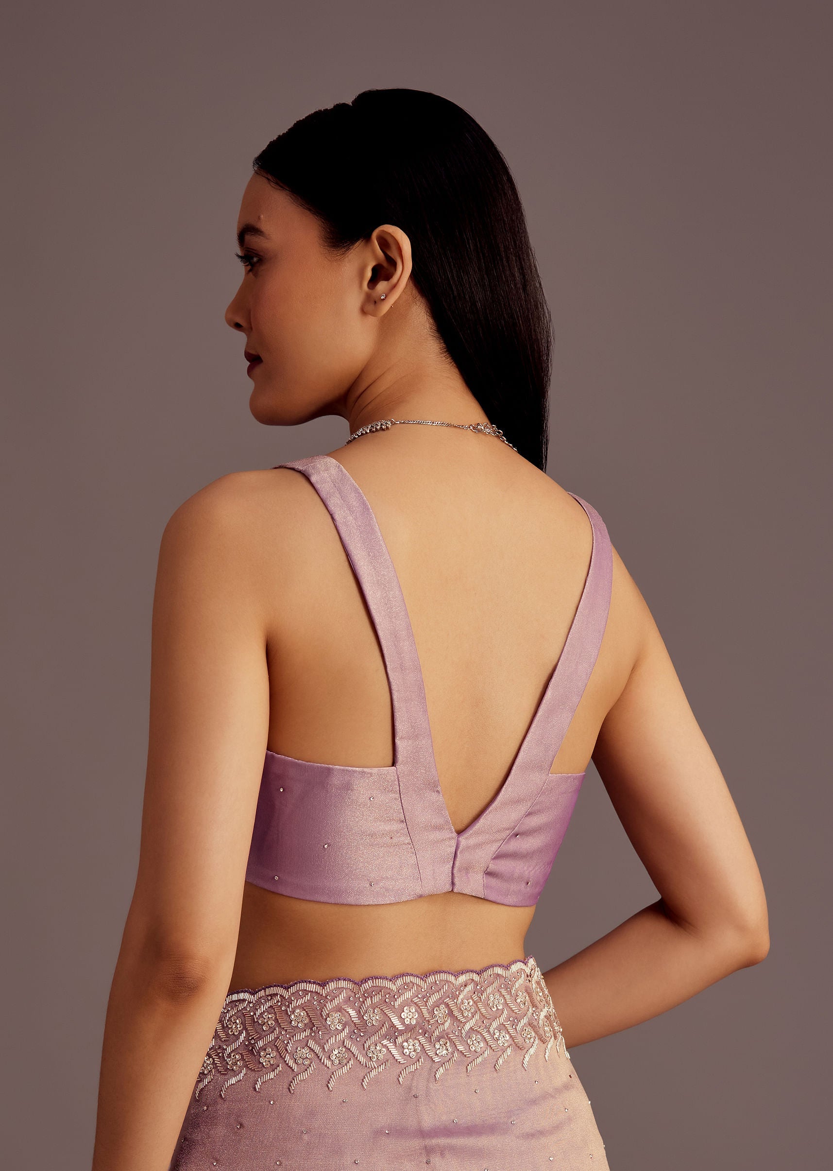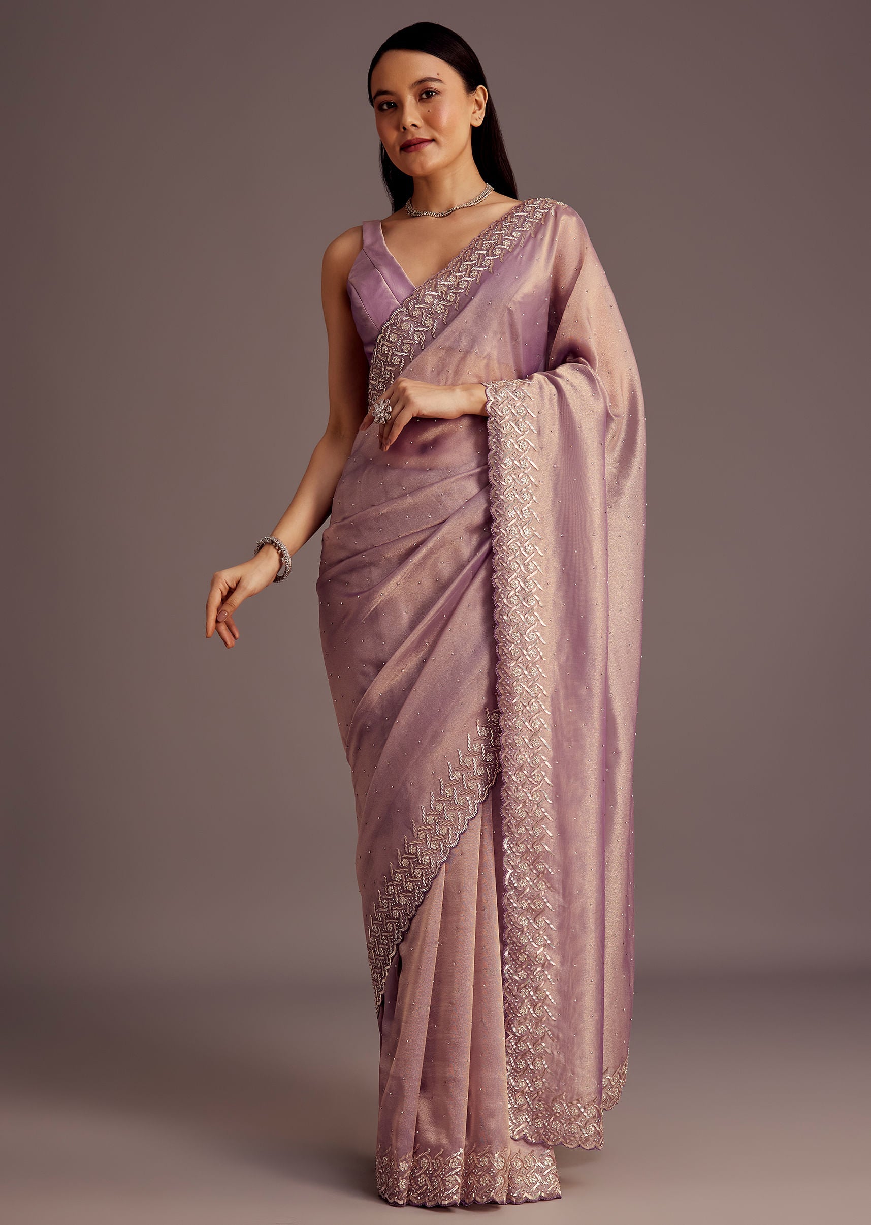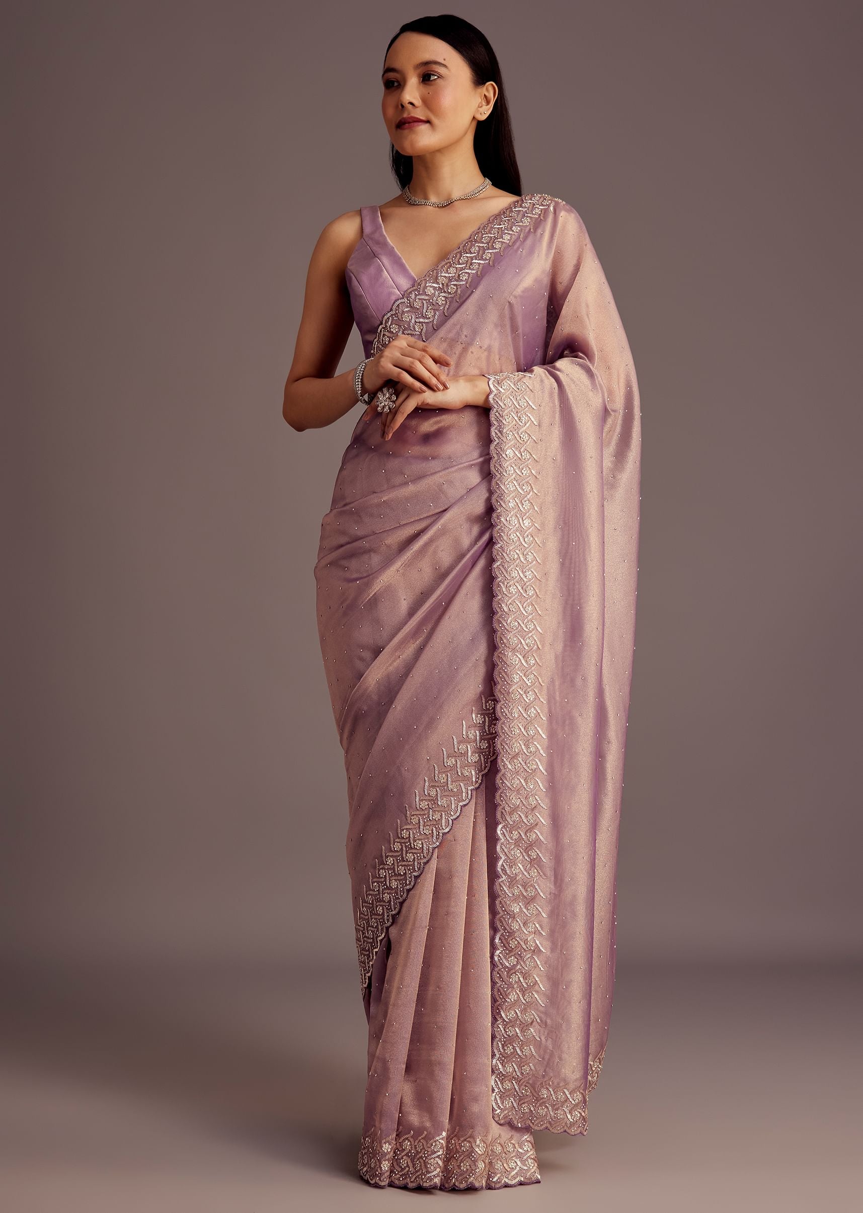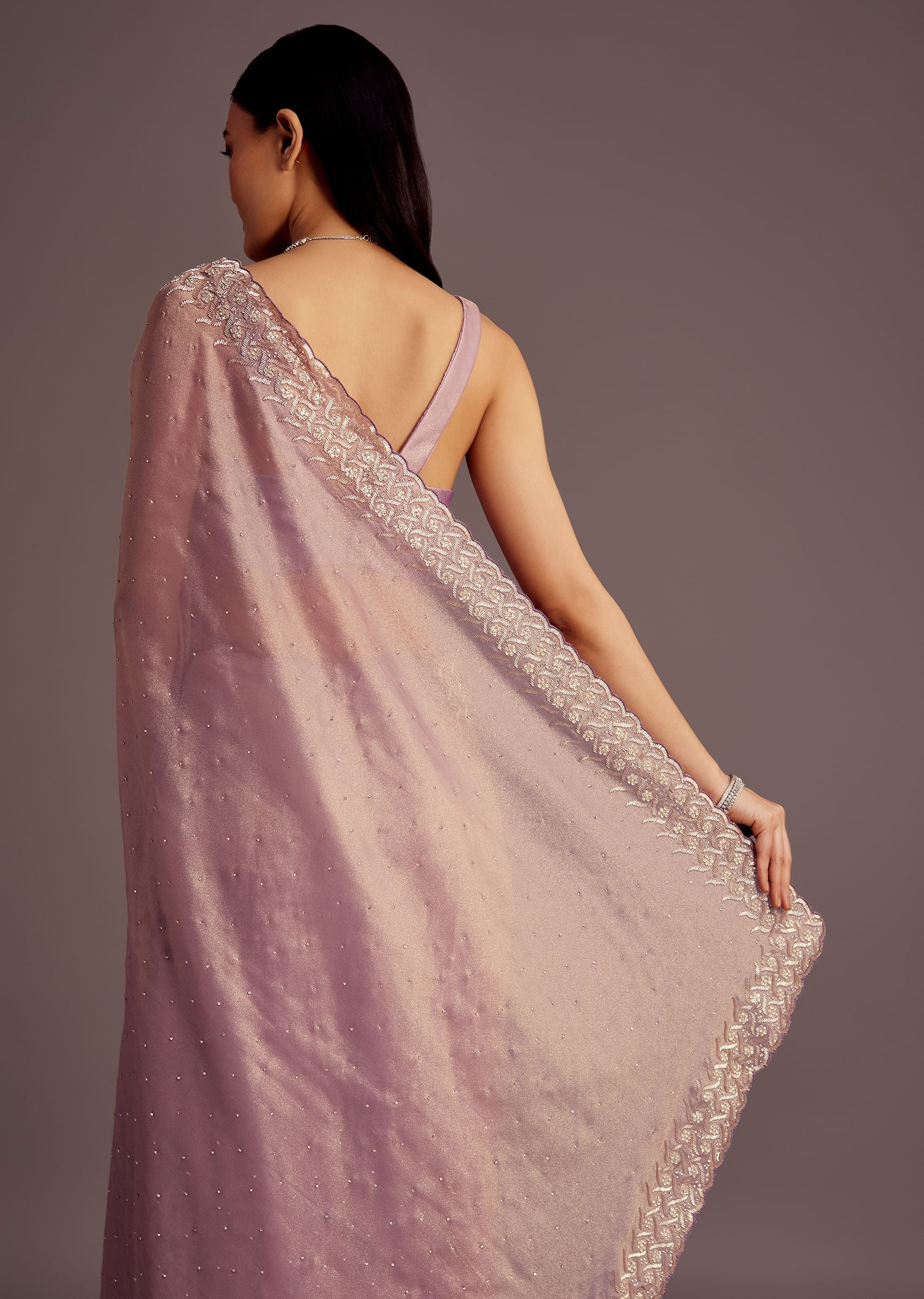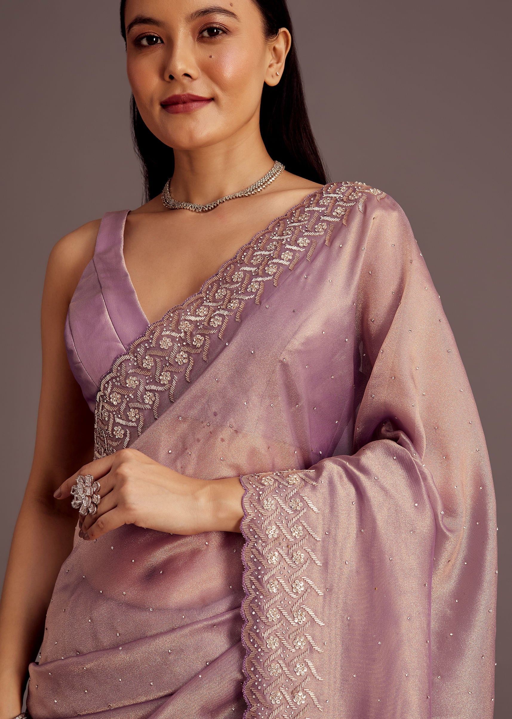 Purple Tissue Saree With Cutdana And Stone Embroidery