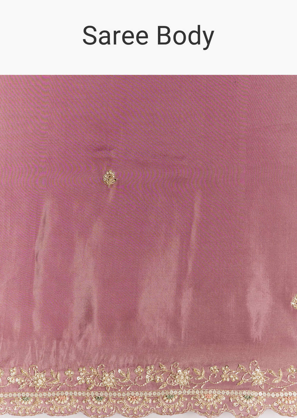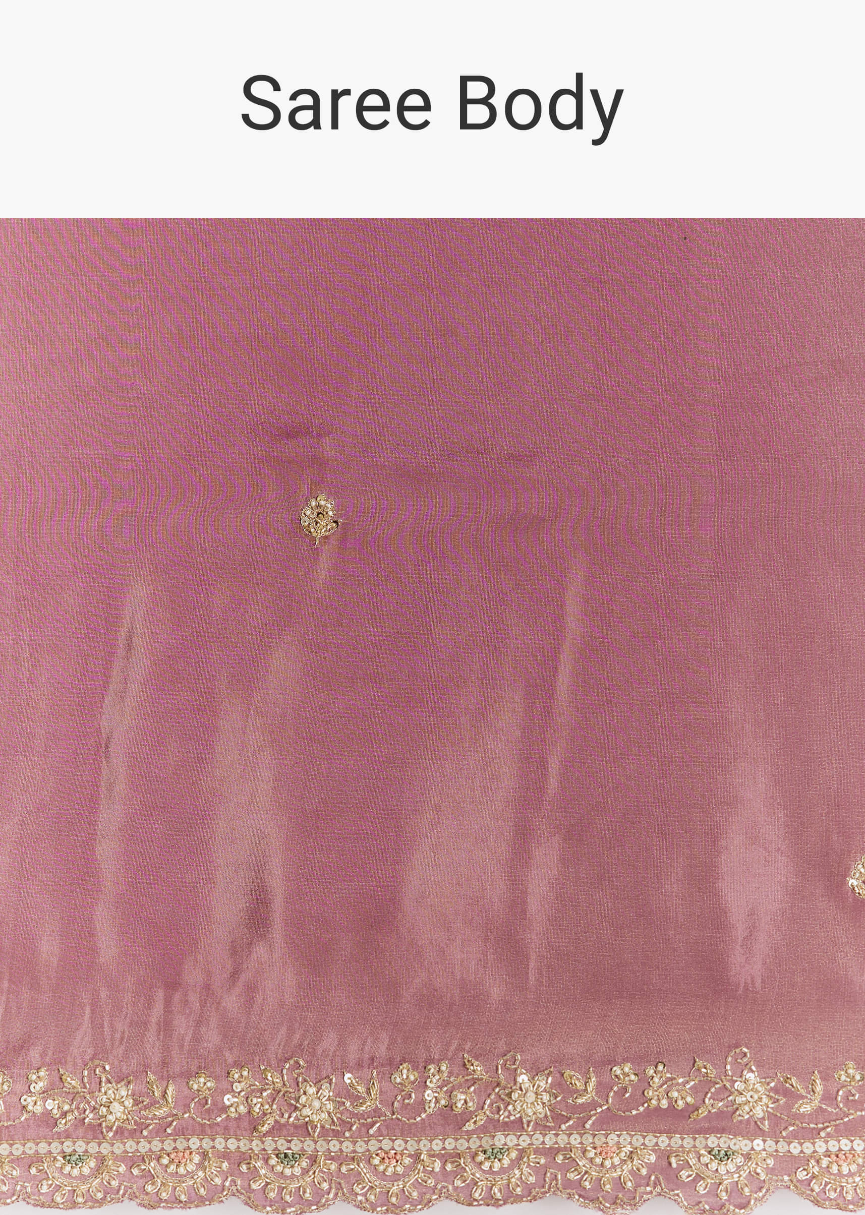 Purple Tissue Saree With Cutdana Sequins And Resham Knot Work