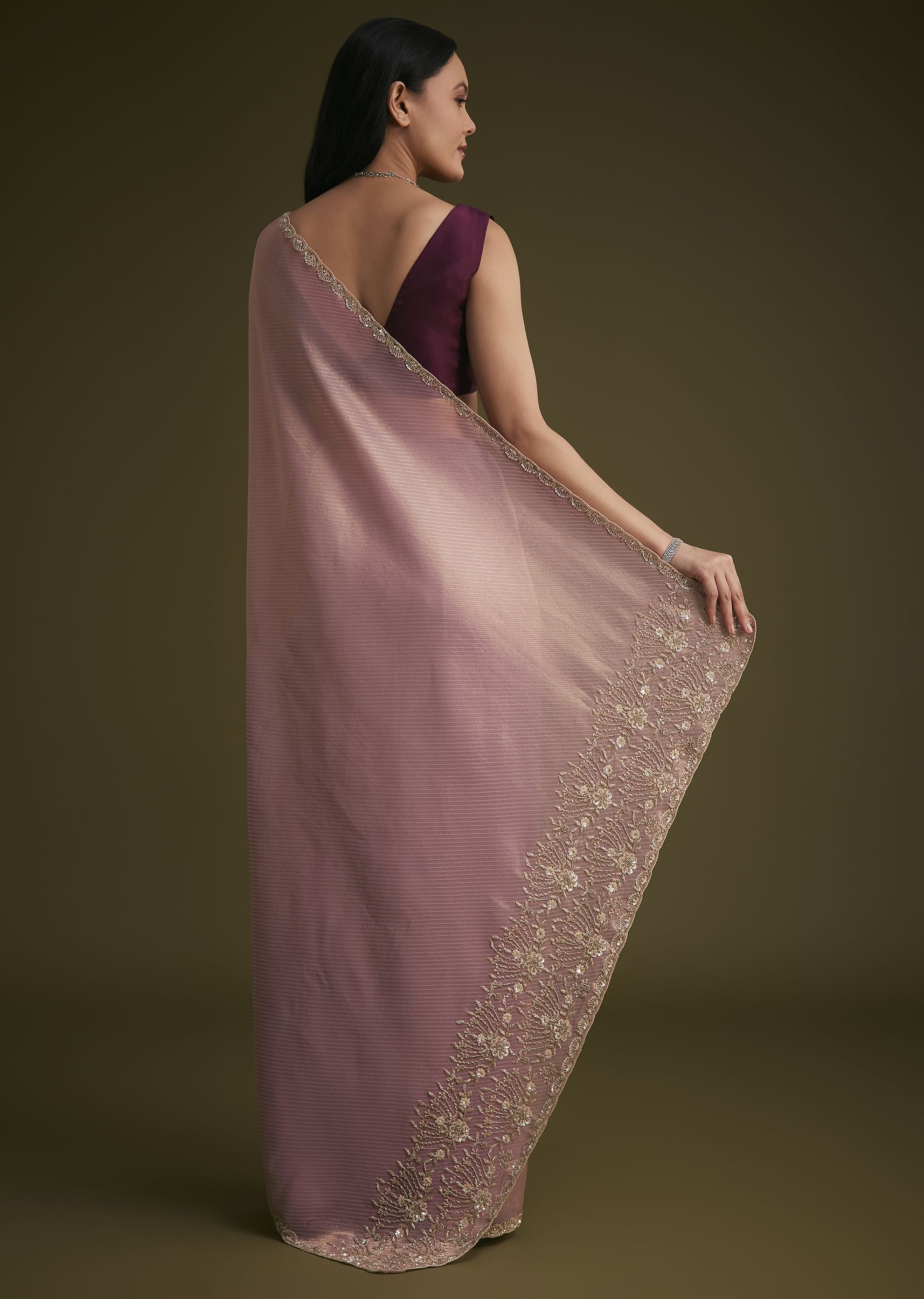 Purple Tissue Sequins Saree With Contrast Blouse