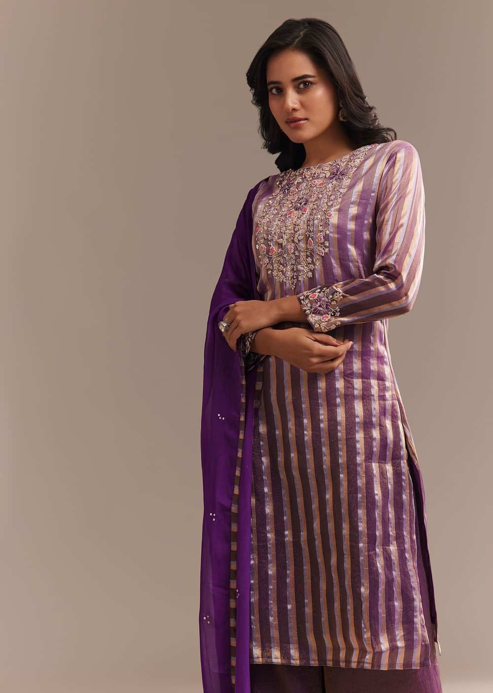 Purple Tissue Zardosi Embroidered Palazzo Set