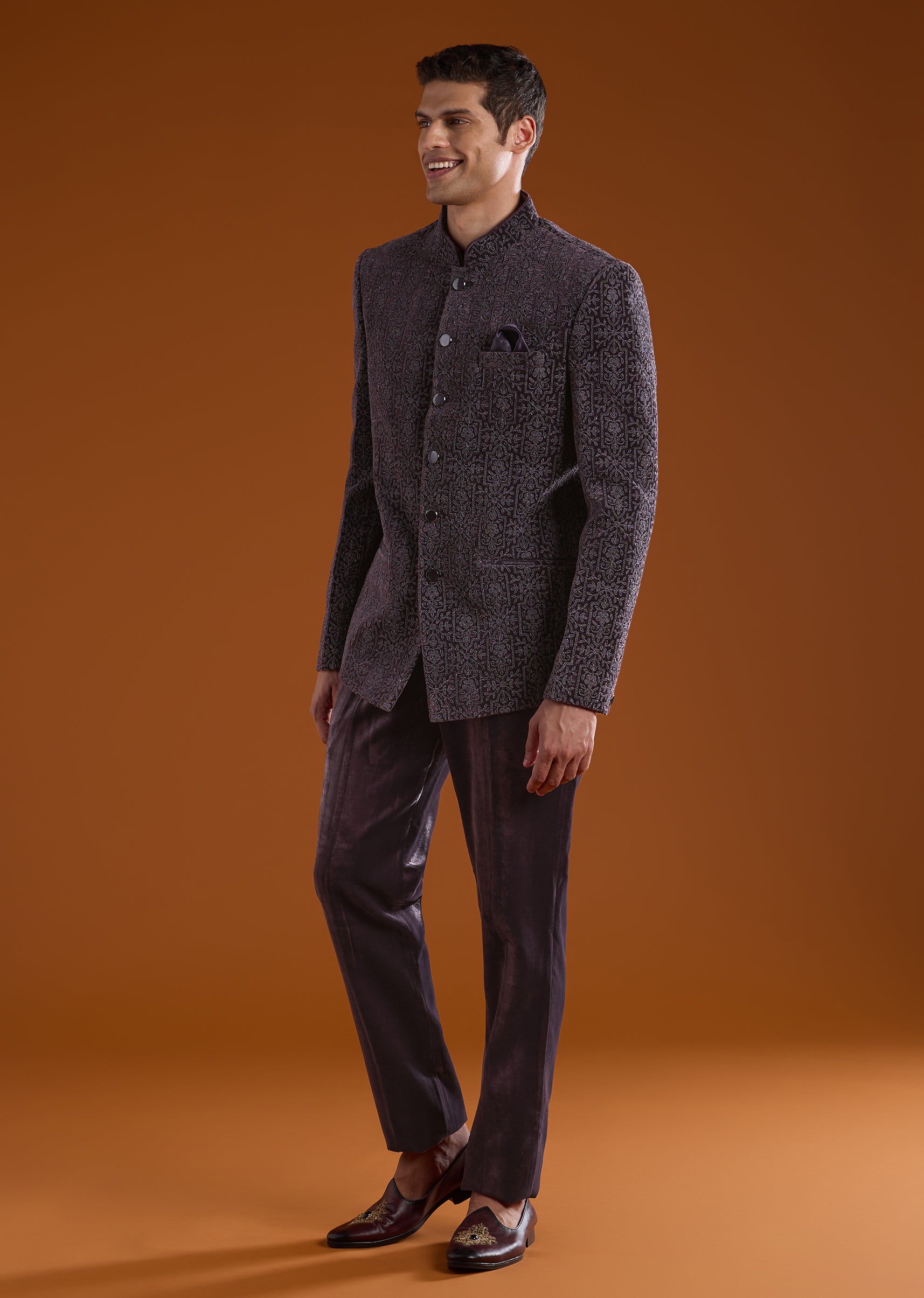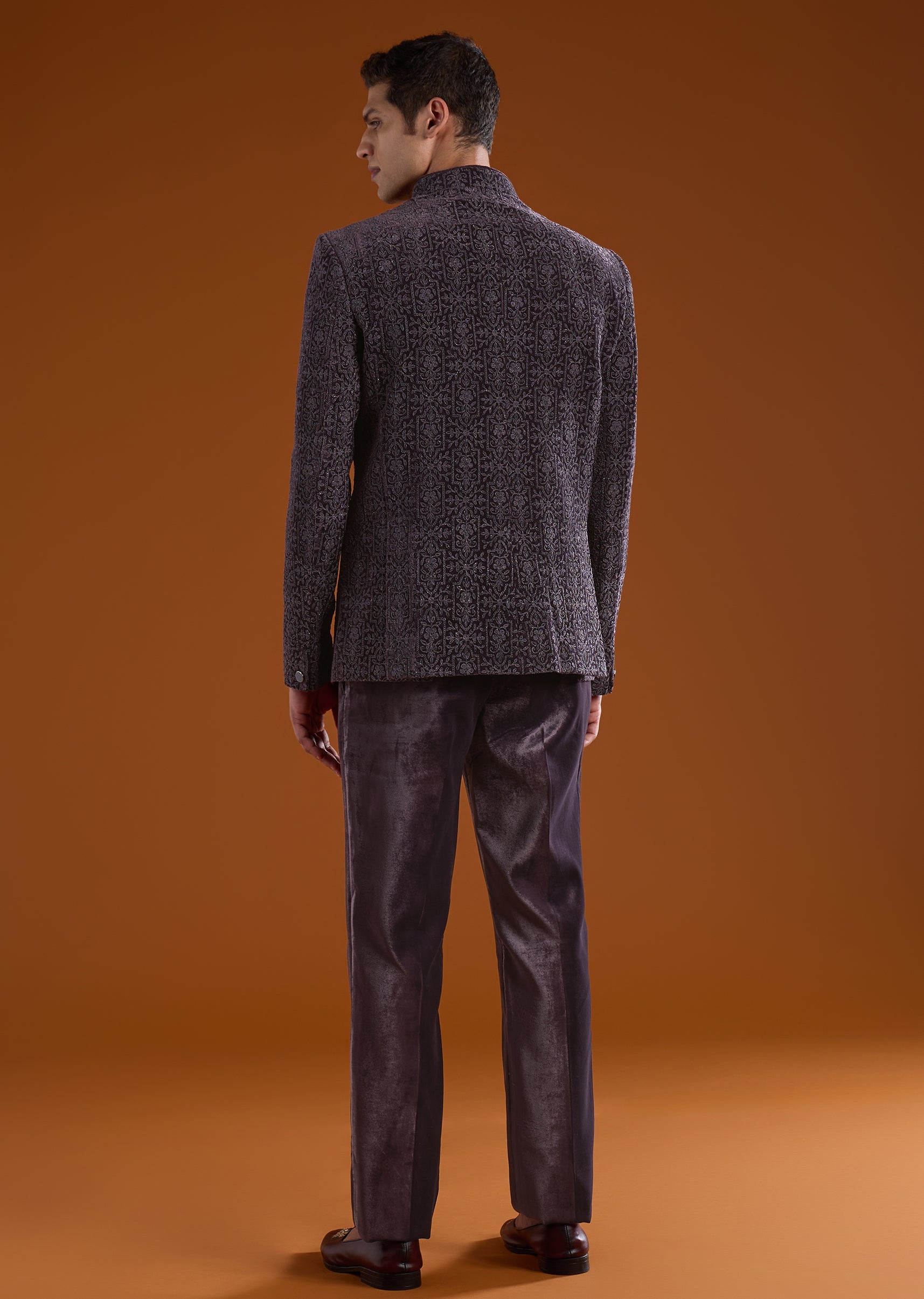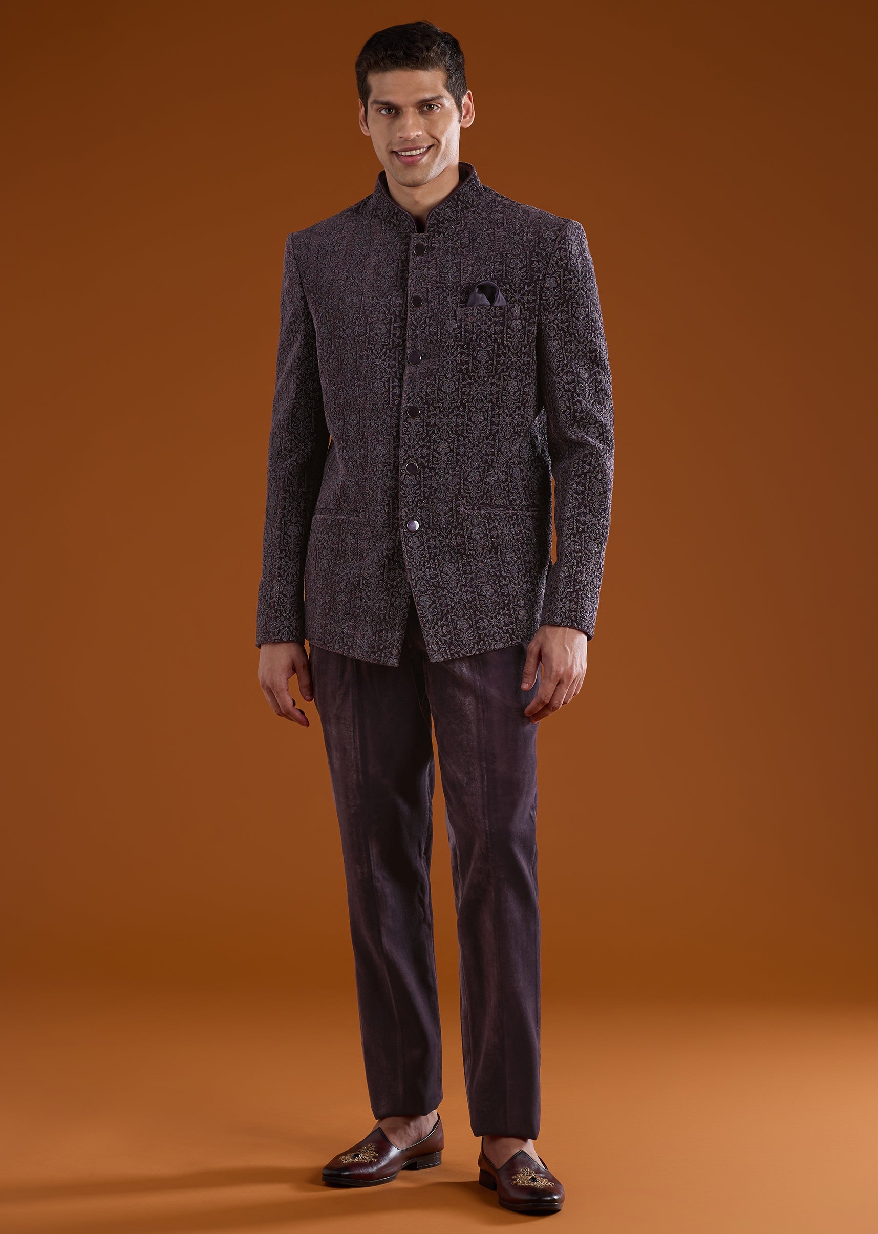Purple Velvet Jodhpuri and Pant Set