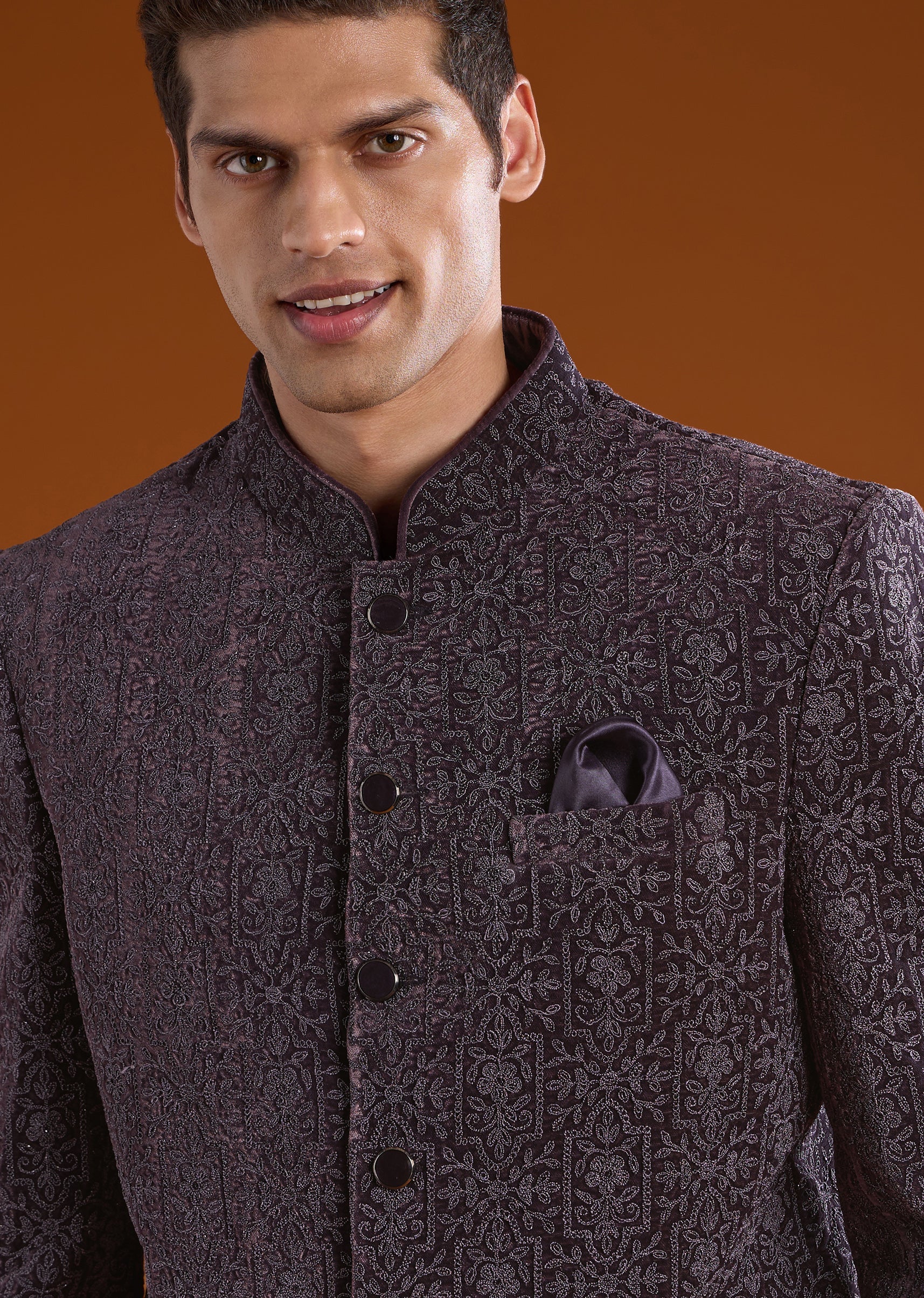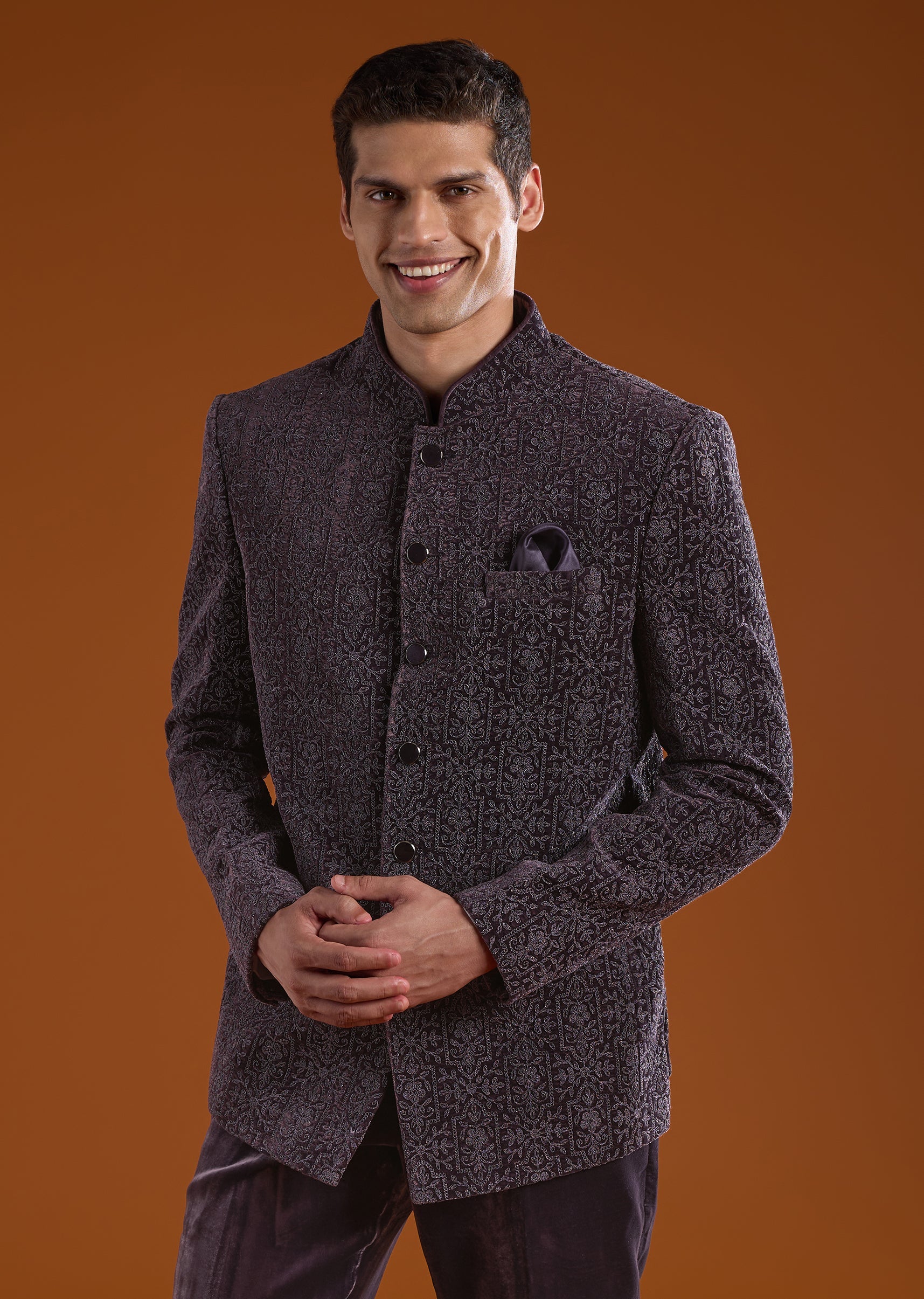 Understated yet commanding, this velvet jodhpuri pants set is crafted for refined festive dressing. The rich velvet fabric brings depth and a regal feel, while the full sleeves and mandarin collar create a sharp, structured silhouette. Designed with clean lines and classic detailing, it reflects timeless jodhpuri elegance. Ideal for weddings, festive evenings, and formal celebrations where sophistication takes precedence.Awarded as the Most Trusted Brand, we're delivering styles you love, just as promised.