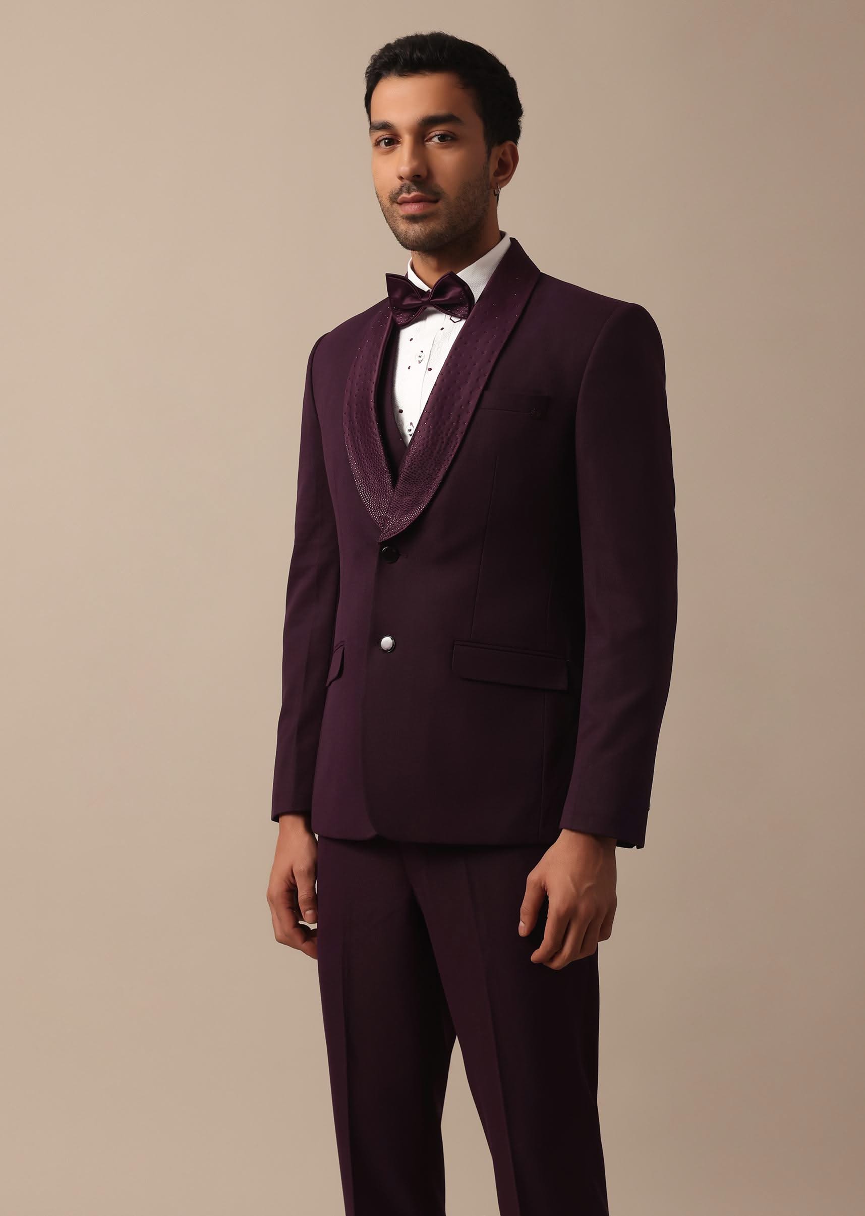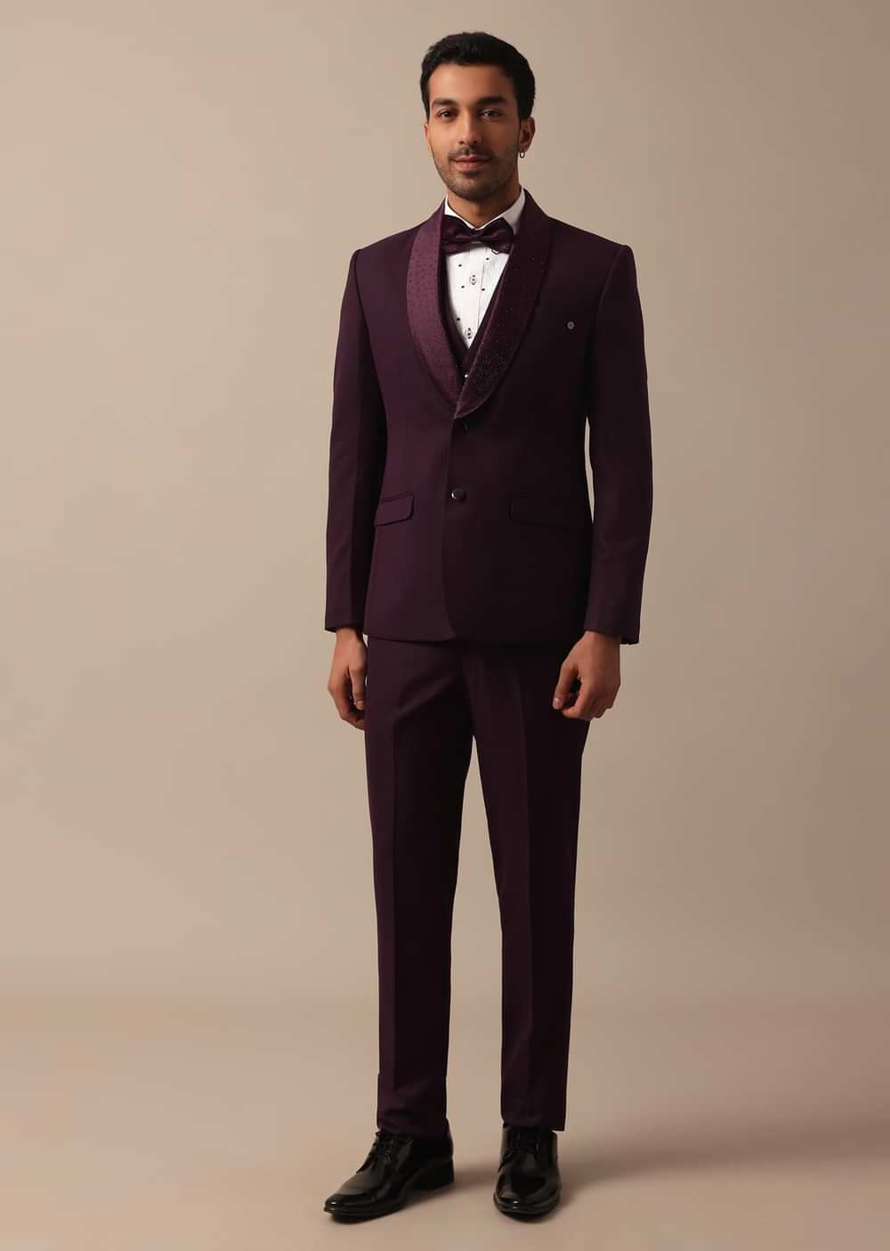 Purple Wine Coloured Tuxedo With Intricate All Over Embroidery