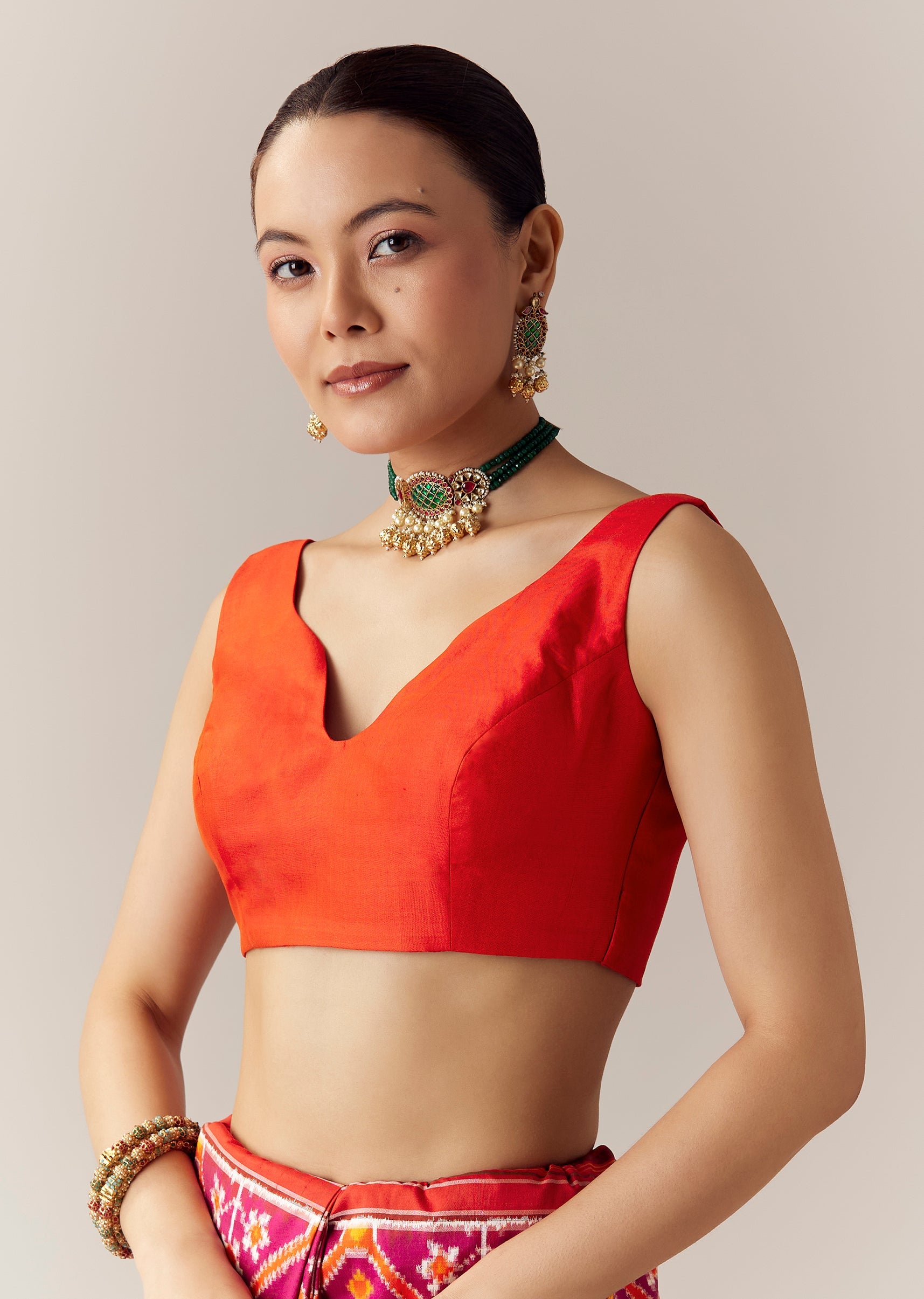 Fit Tips:Drape the pallu neatly for an elegant fall and tailor the blouse to create a structured and balanced silhouette.