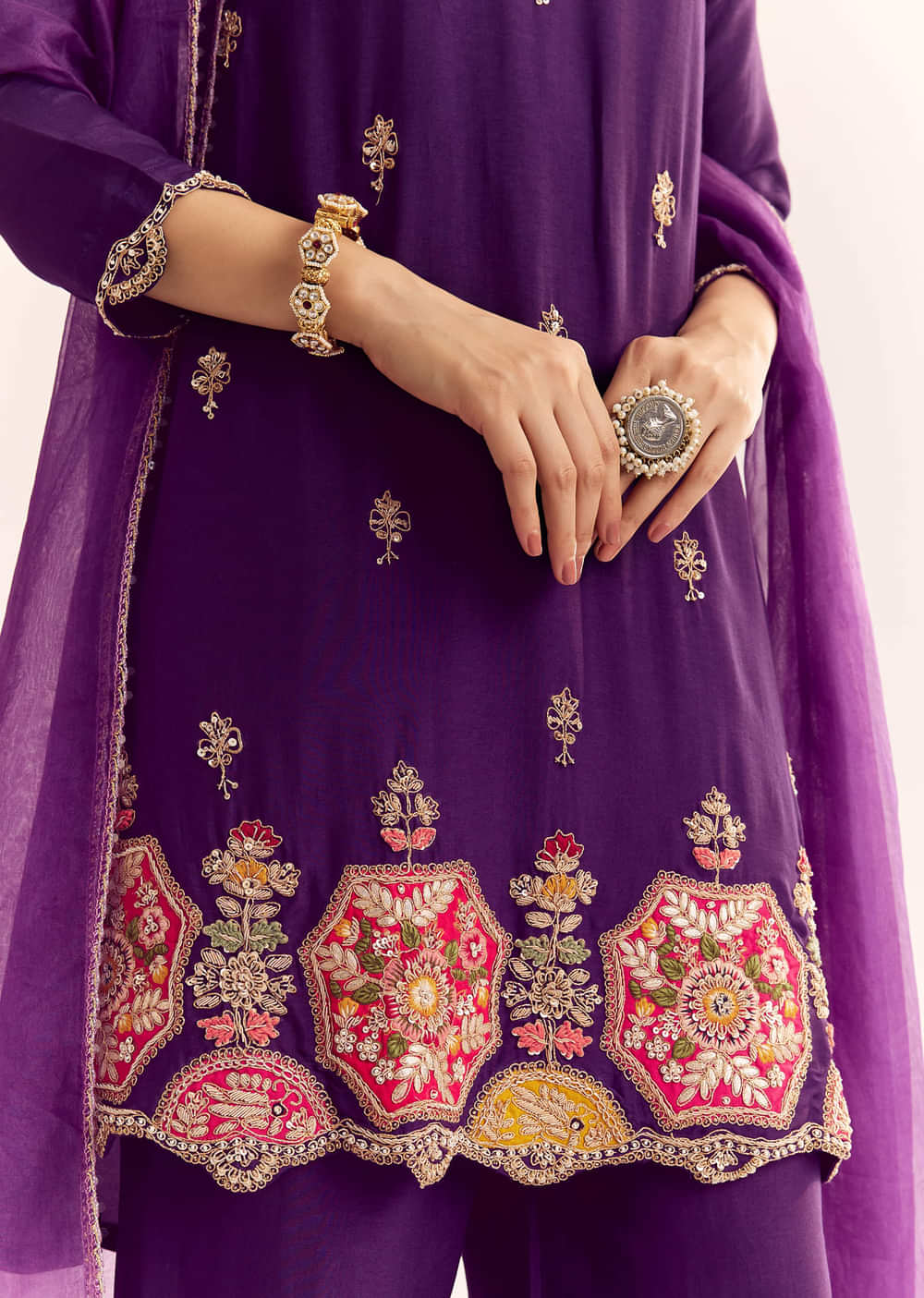 Purple Zardosi Work Dola Silk Kurta With Organza Dupatta