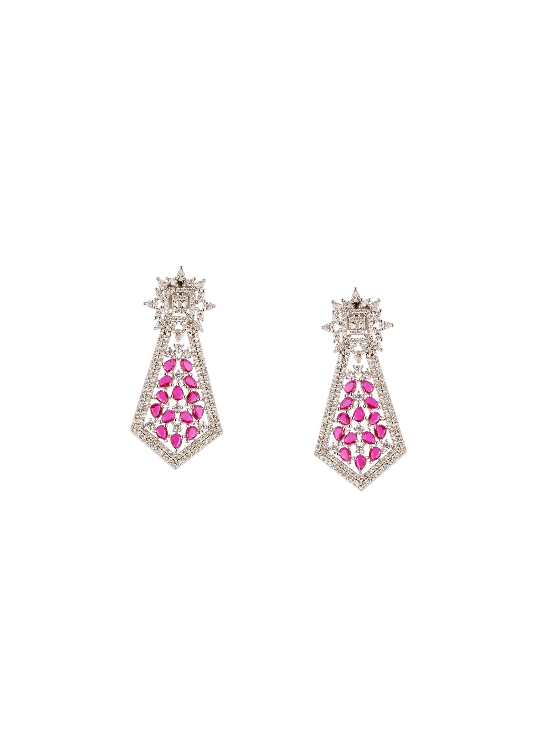 Rani Pink Anti Tarnish Finish Rhodium Plated Long Necklace Set In Brass with CZ Diamonds