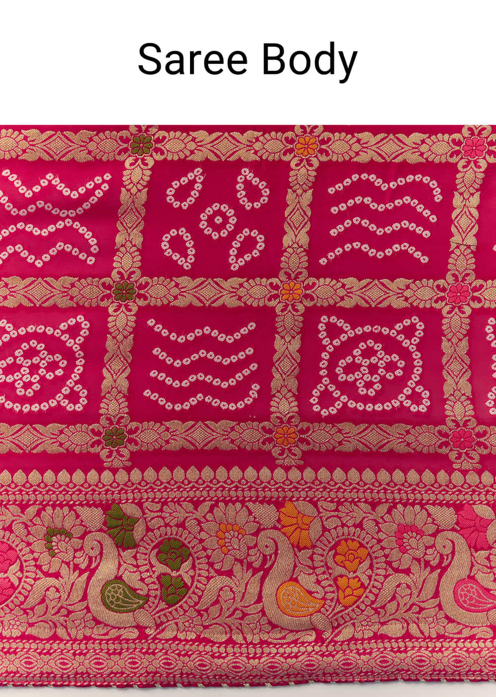 Rani Pink Dola Silk Bandhani Woven Saree with Unstitched Blouse