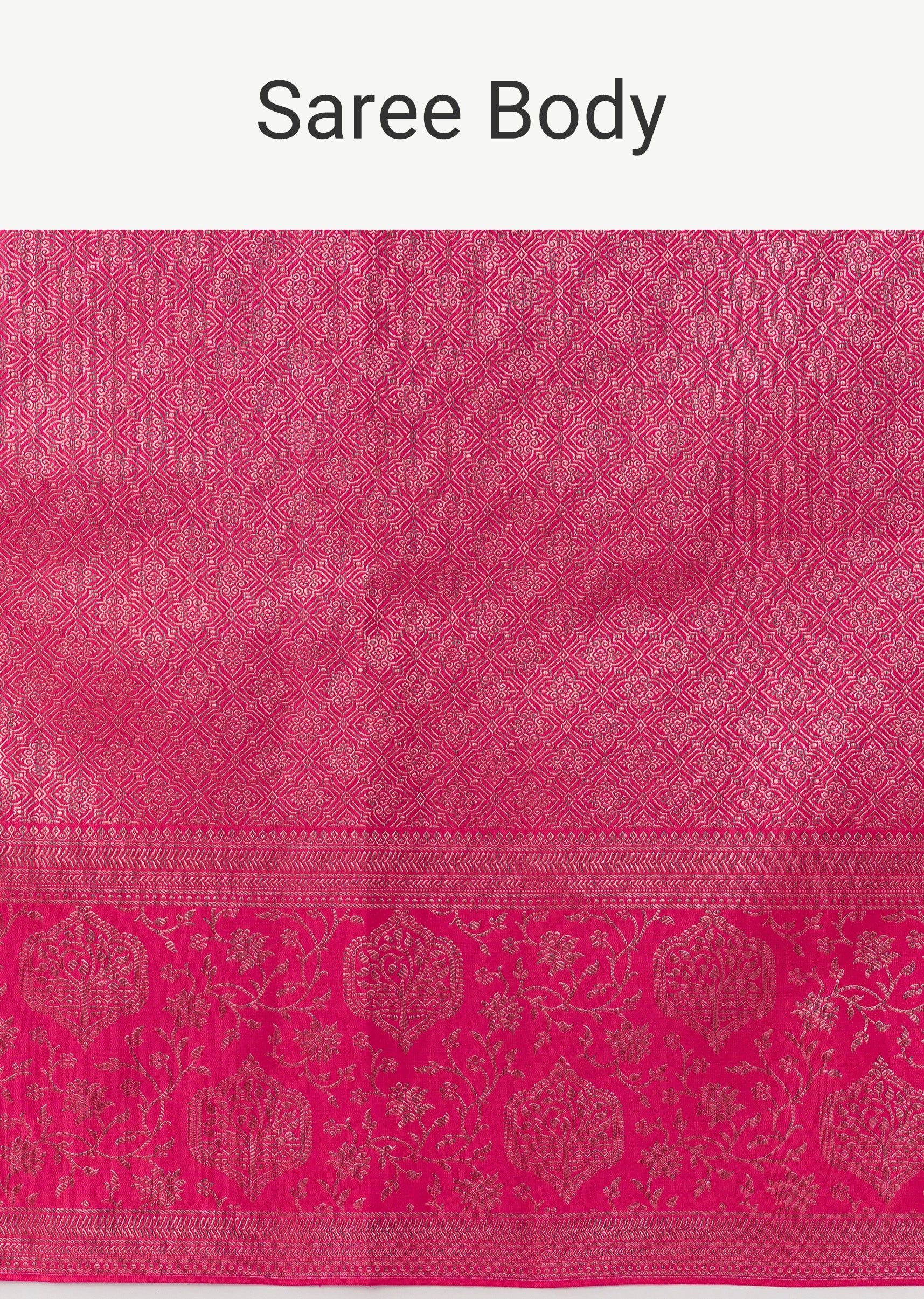 Rani Pink Silk Chanderi Zari Woven Saree And Floral Statement Border