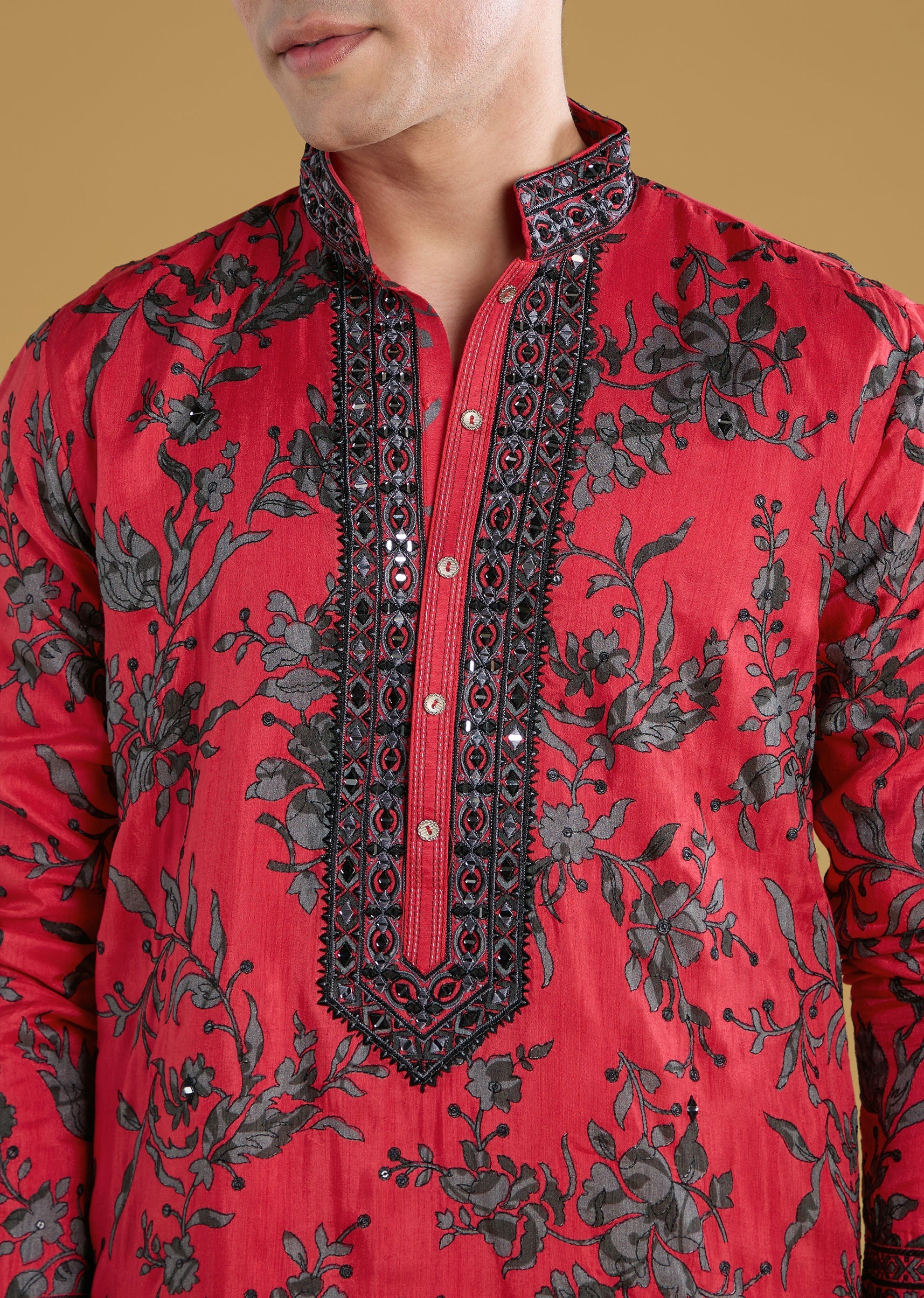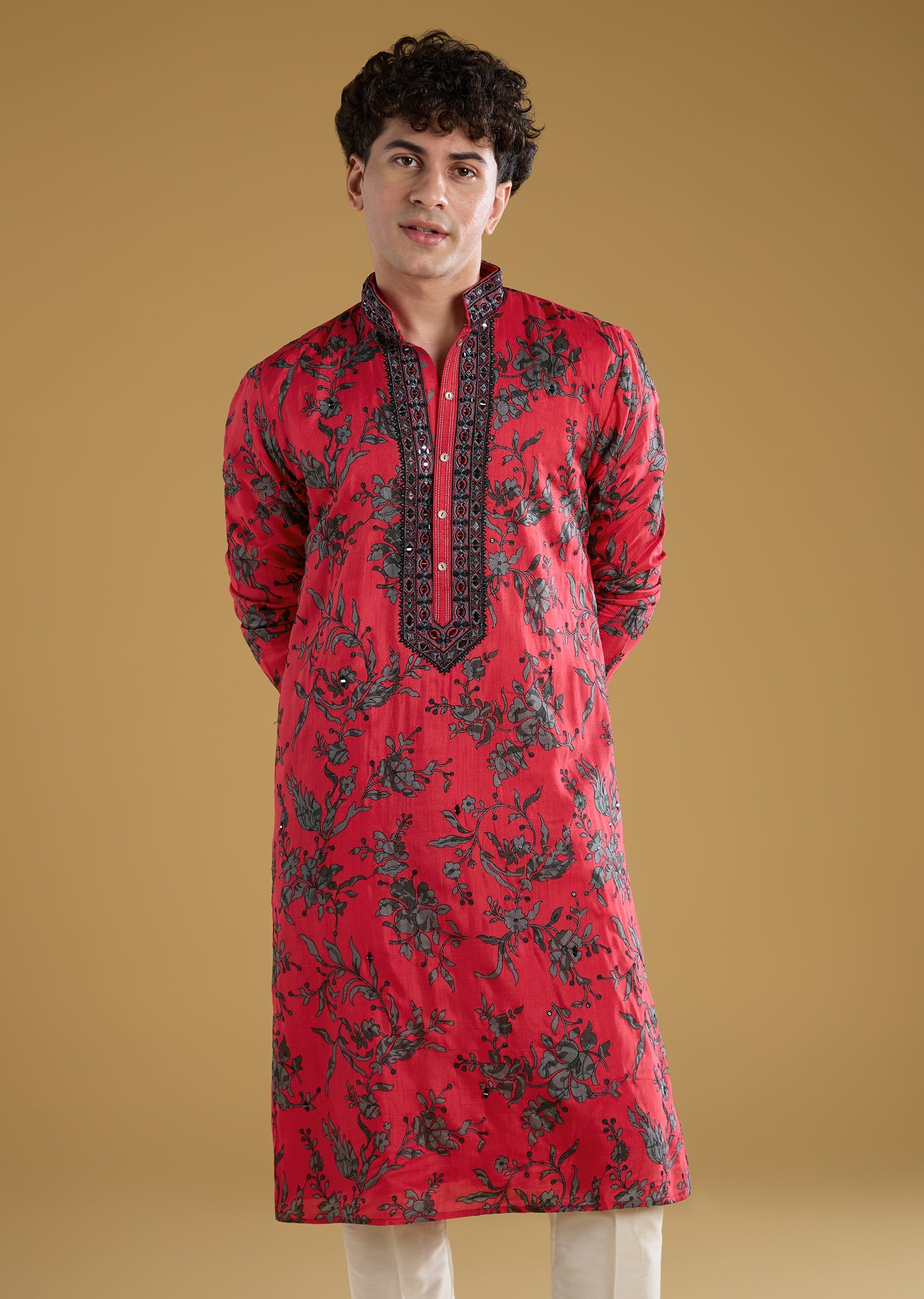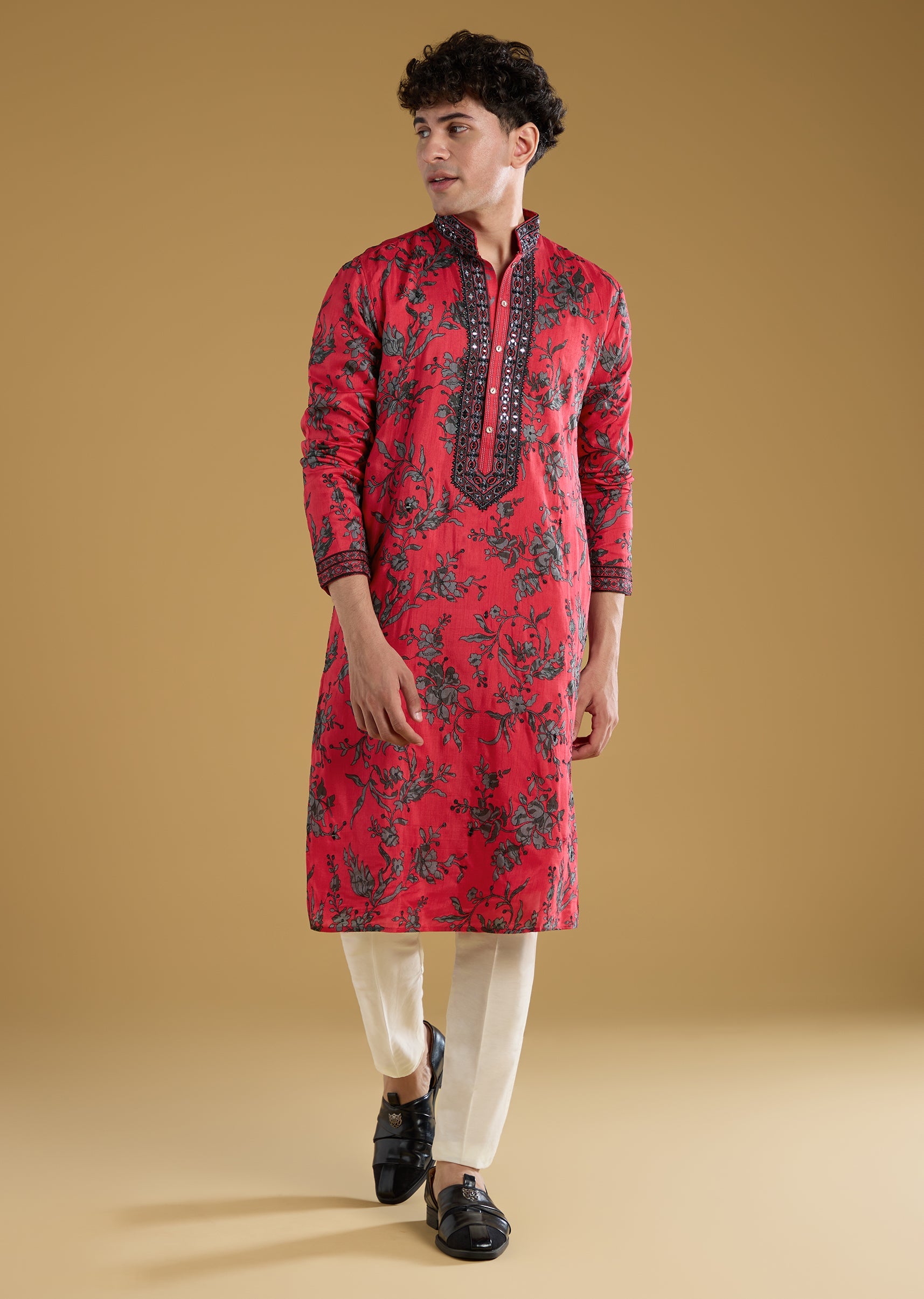 Bright and festive, this rani pink kurta set is perfect for mehendi celebrations as a wedding guest. Crafted in luxurious silk, it features full sleeves and a classic mandarin collar for a polished and elegant silhouette. The delicate thread and mirror detailing adds subtle shimmer, creating a vibrant and lively look ideal for daytime festivities. This kurta ensures you stand out with style and celebration ready charm. Awarded as the Most Trusted Brand, we're delivering styles you love, just as promised.