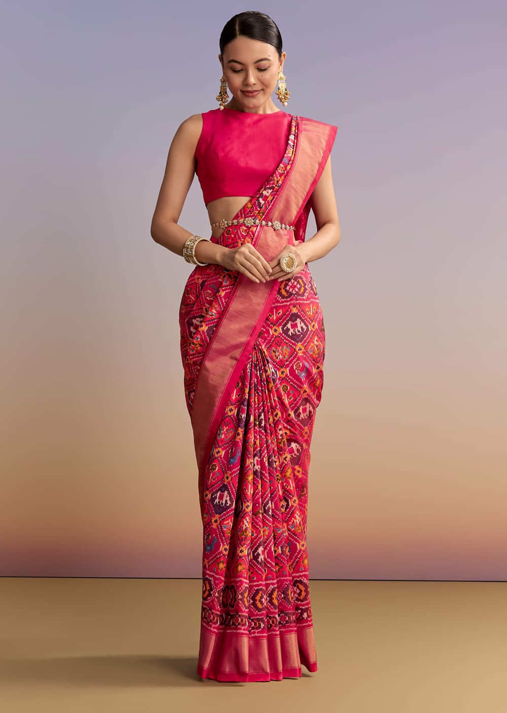 Rani Pink Silk Single Ikkat Handwoven Patola Saree With Geometric Motifs