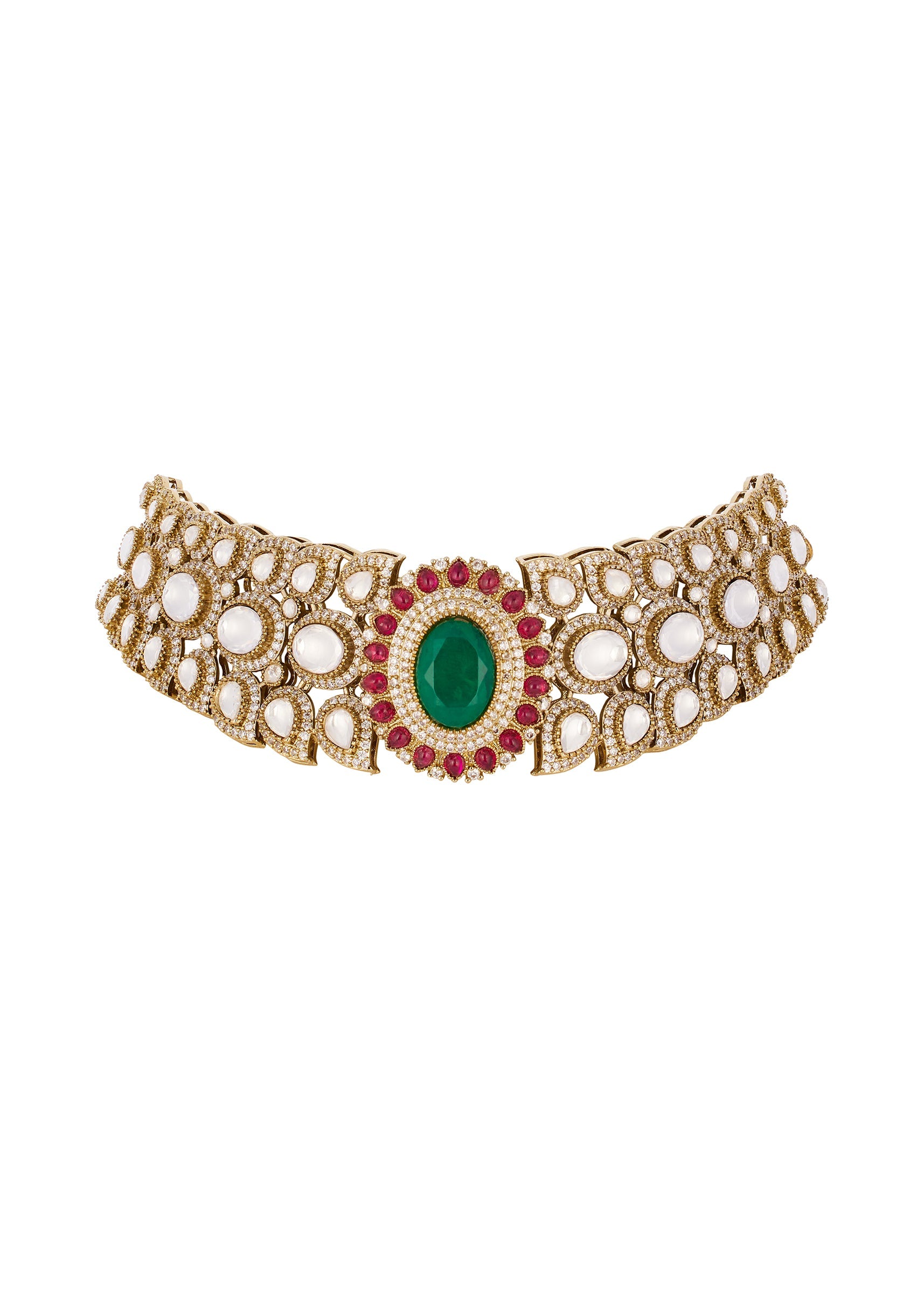 Red and Green Anti Tarnish Rhodium Plated Cz Diamond Necklace Set
