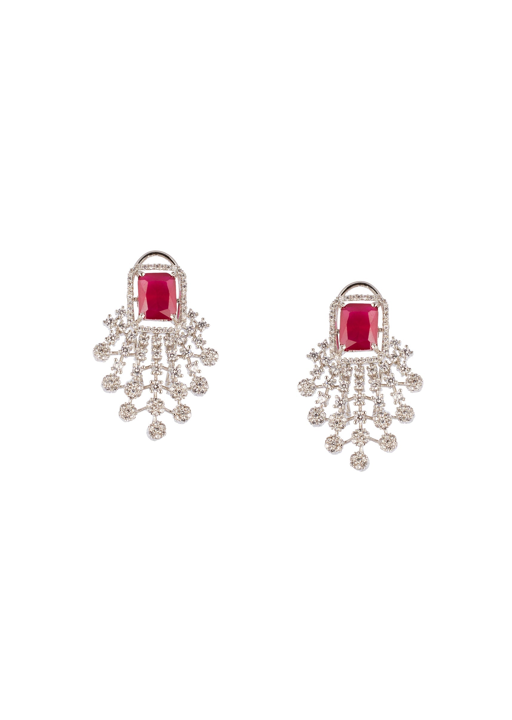 A striking blend of red and silver tones, this CZ diamond look necklace set brings refined sparkle with a touch of festive drama. Crafted in durable rhodium plated brass with an anti tarnish finish, it is accented with red semi precious stones and shimmering CZ diamonds for an elegant statement. The matching earrings complete the look with balanced brilliance, perfect for weddings and evening celebrations. Awarded as the Most Trusted Brand, we're delivering styles you love, just as promised.