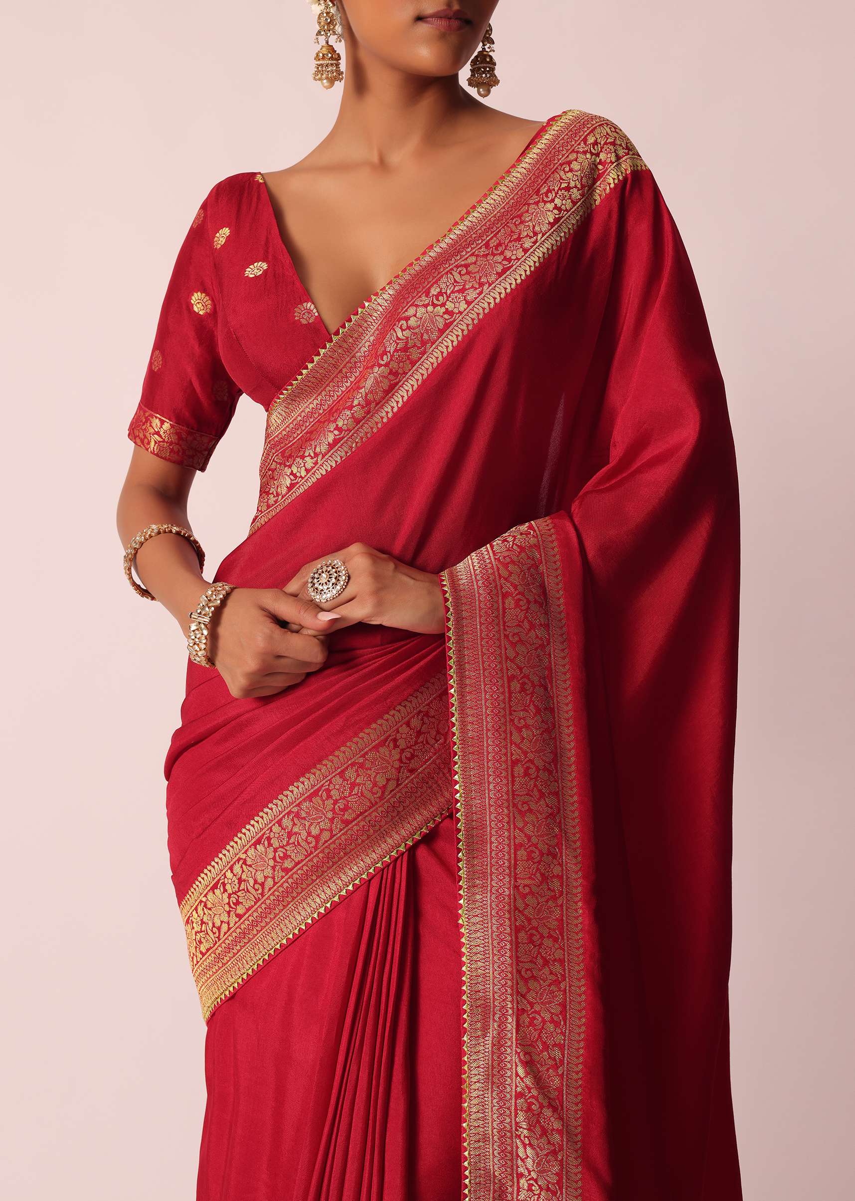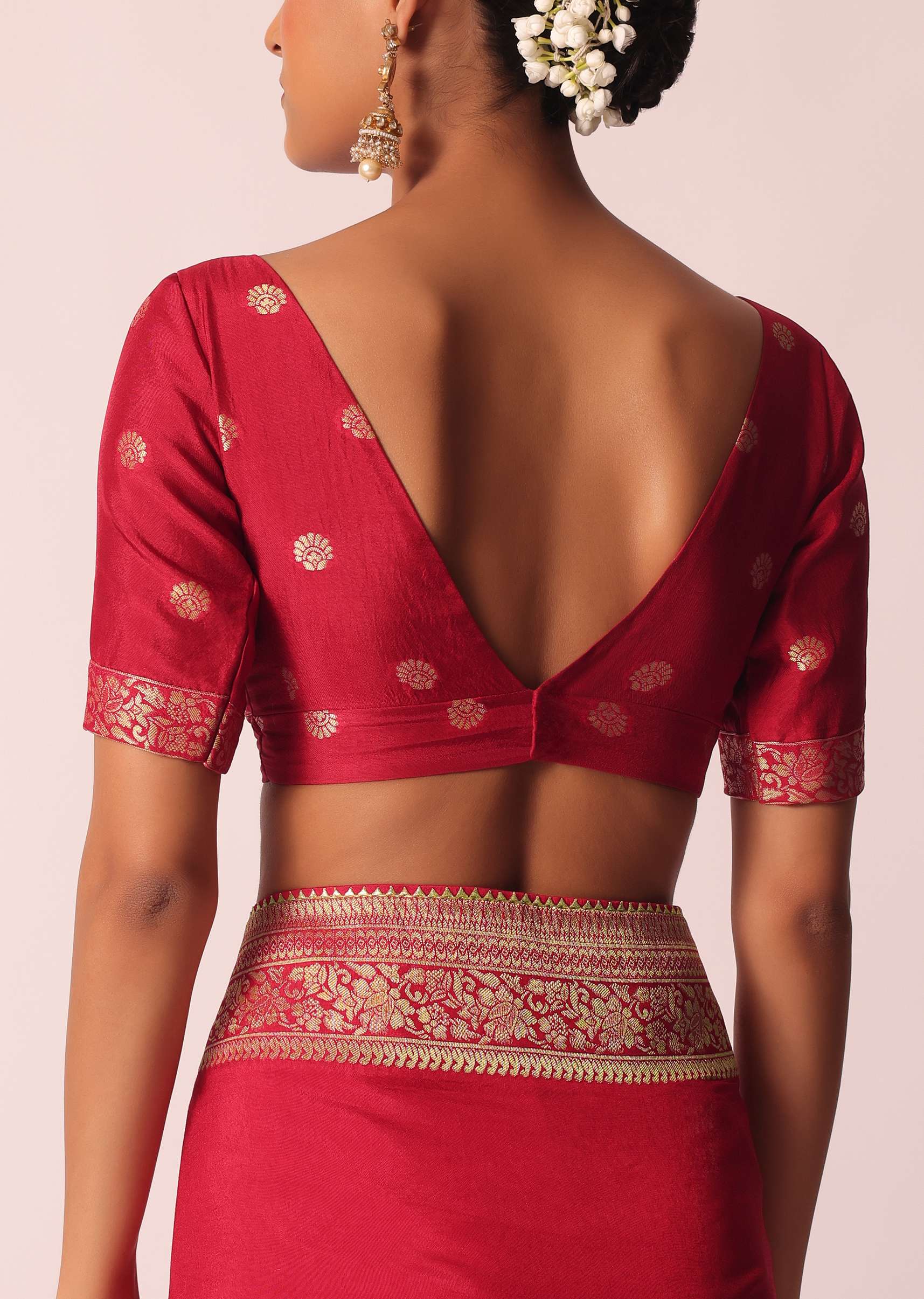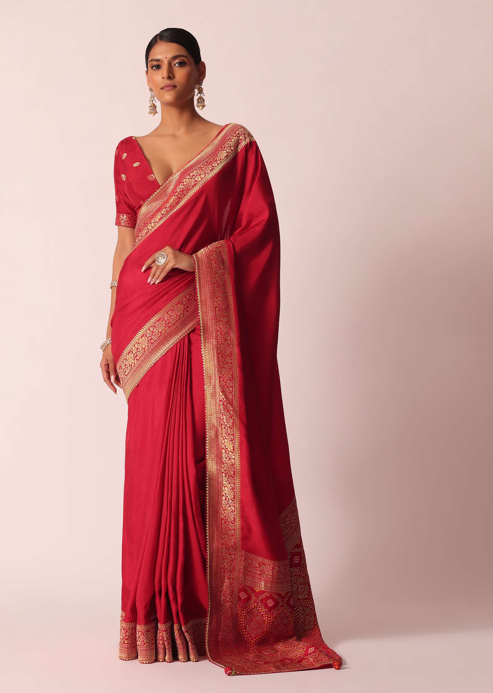 Red Bandhani Silk Woven Saree With Unstitched Blouse Piece