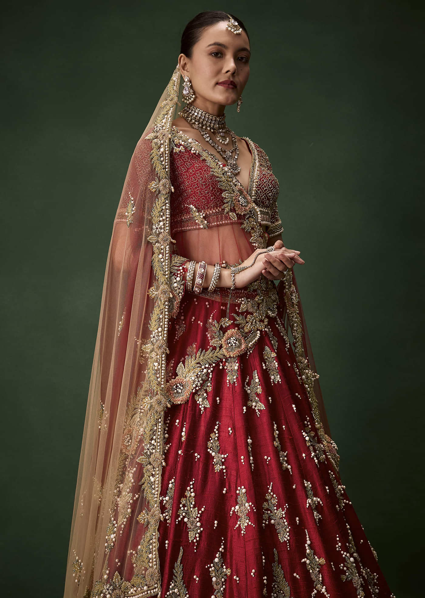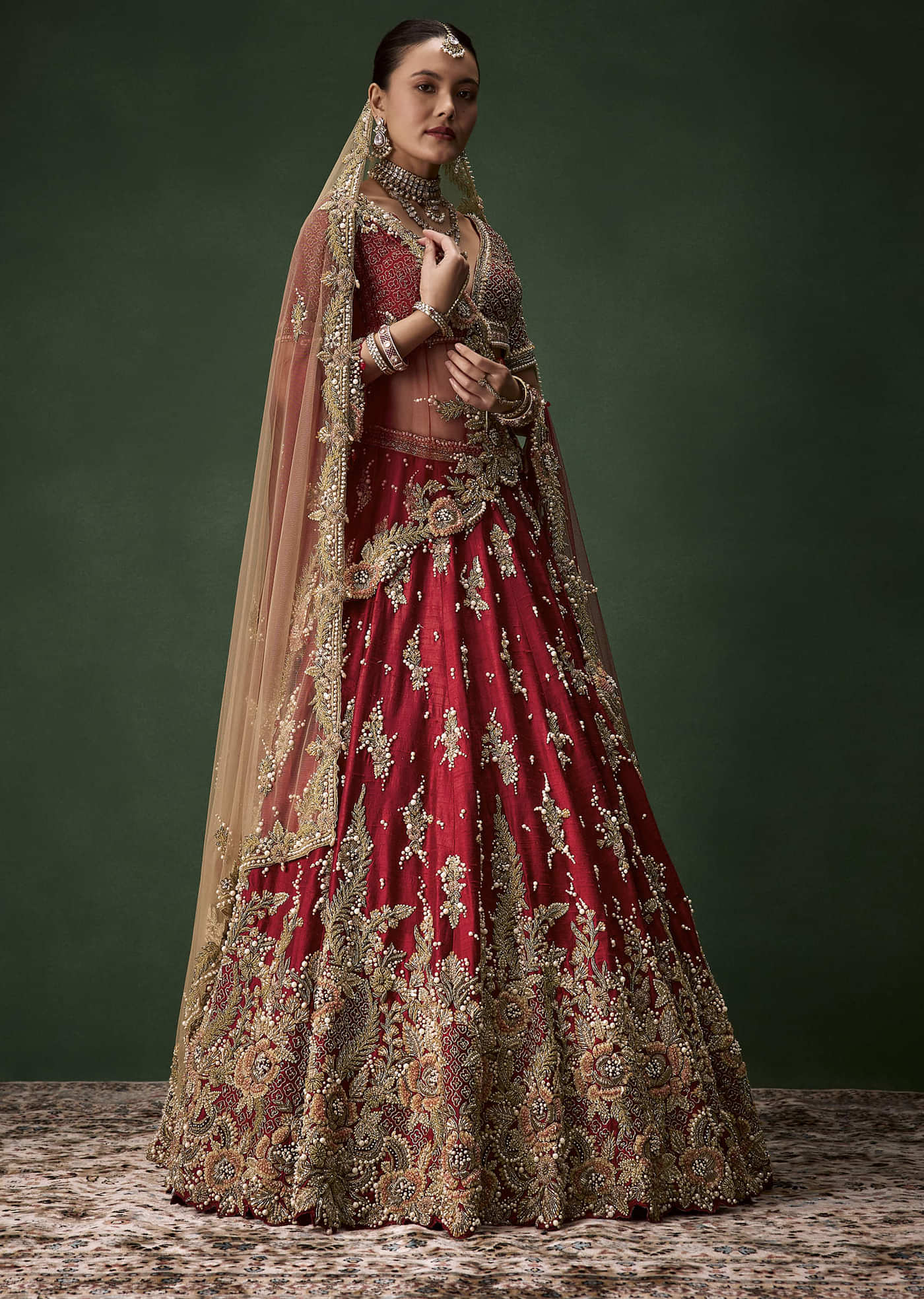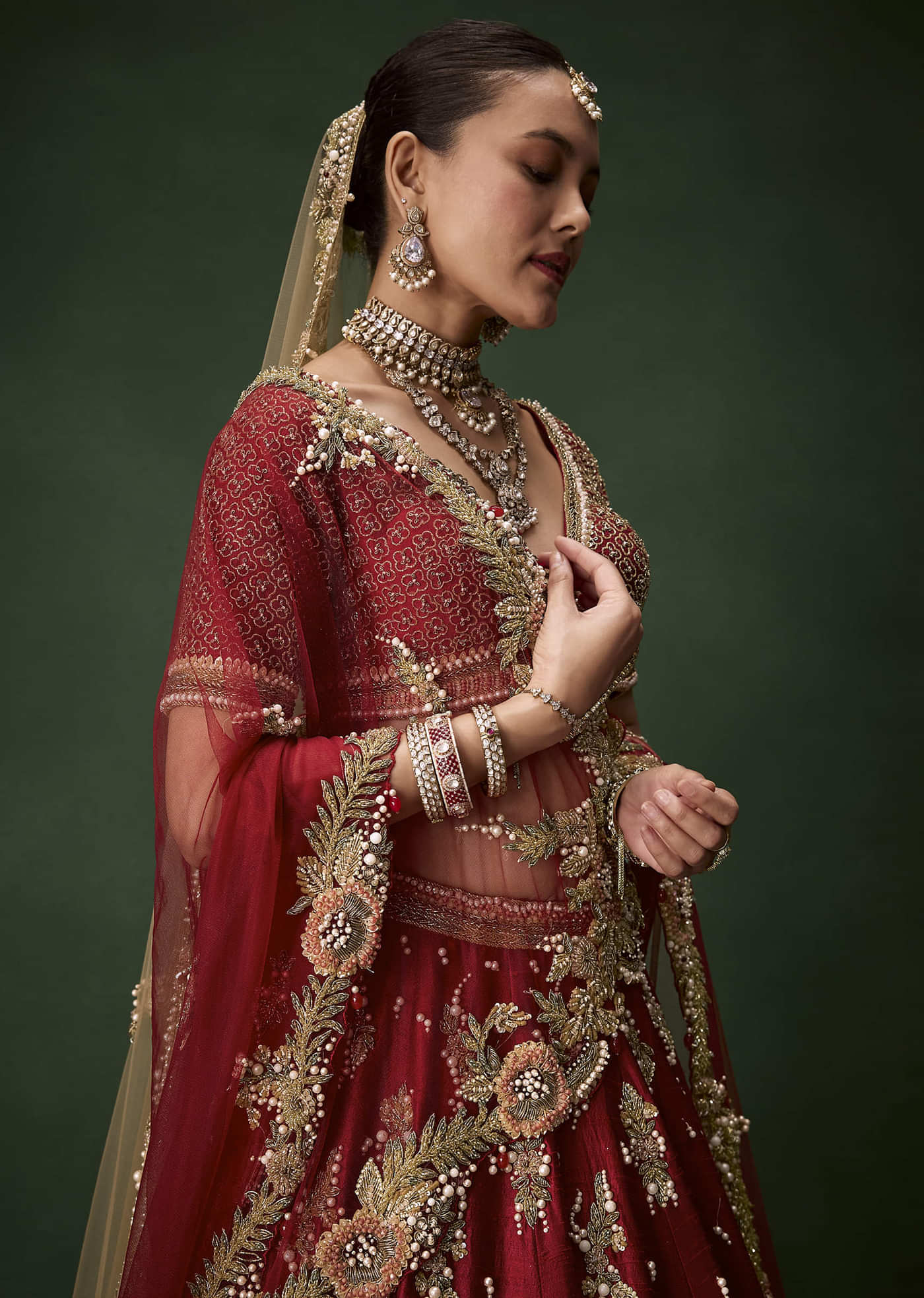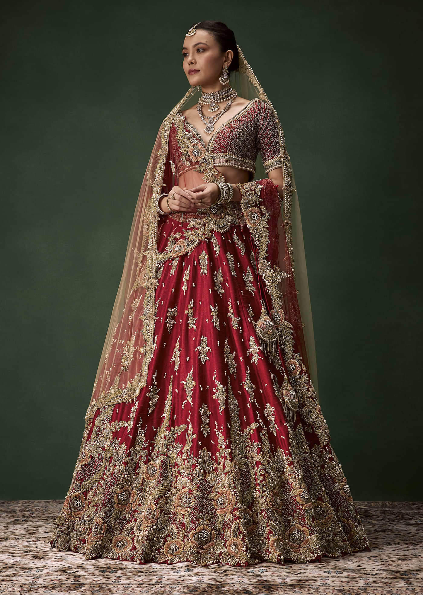 A timeless ode to bridal grandeur, this red silk lehenga set blends heritage richness with modern refinement. The luxurious silk base is adorned with sparkling sequin and cutdana detailing, creating... More Product Details