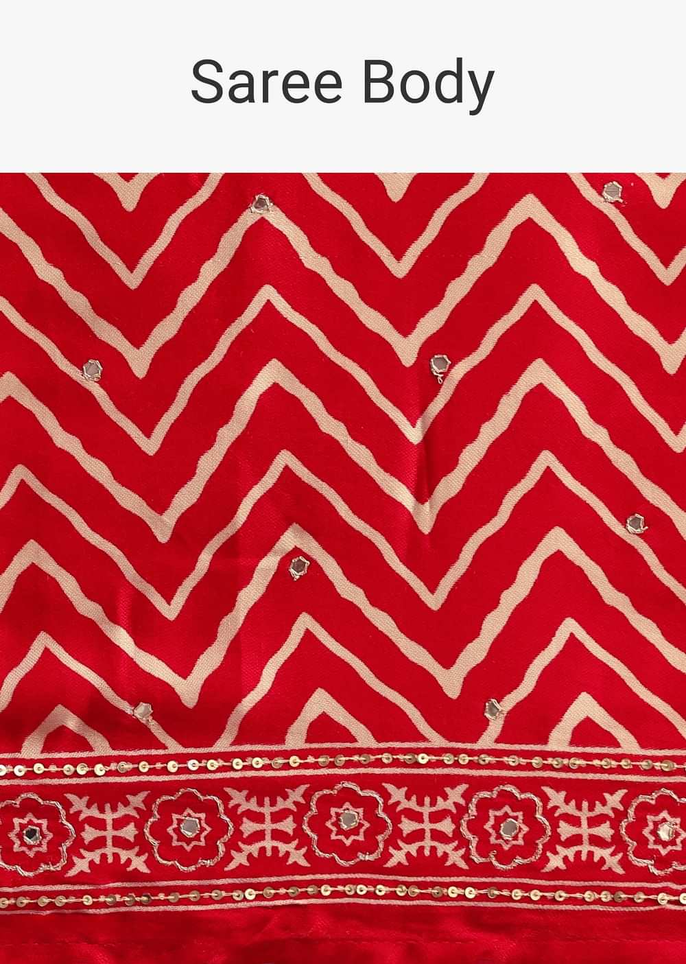 - Featuring a bold chevron print, the design adds a modern touch to the classic saree style, making it eye-catching and chic.