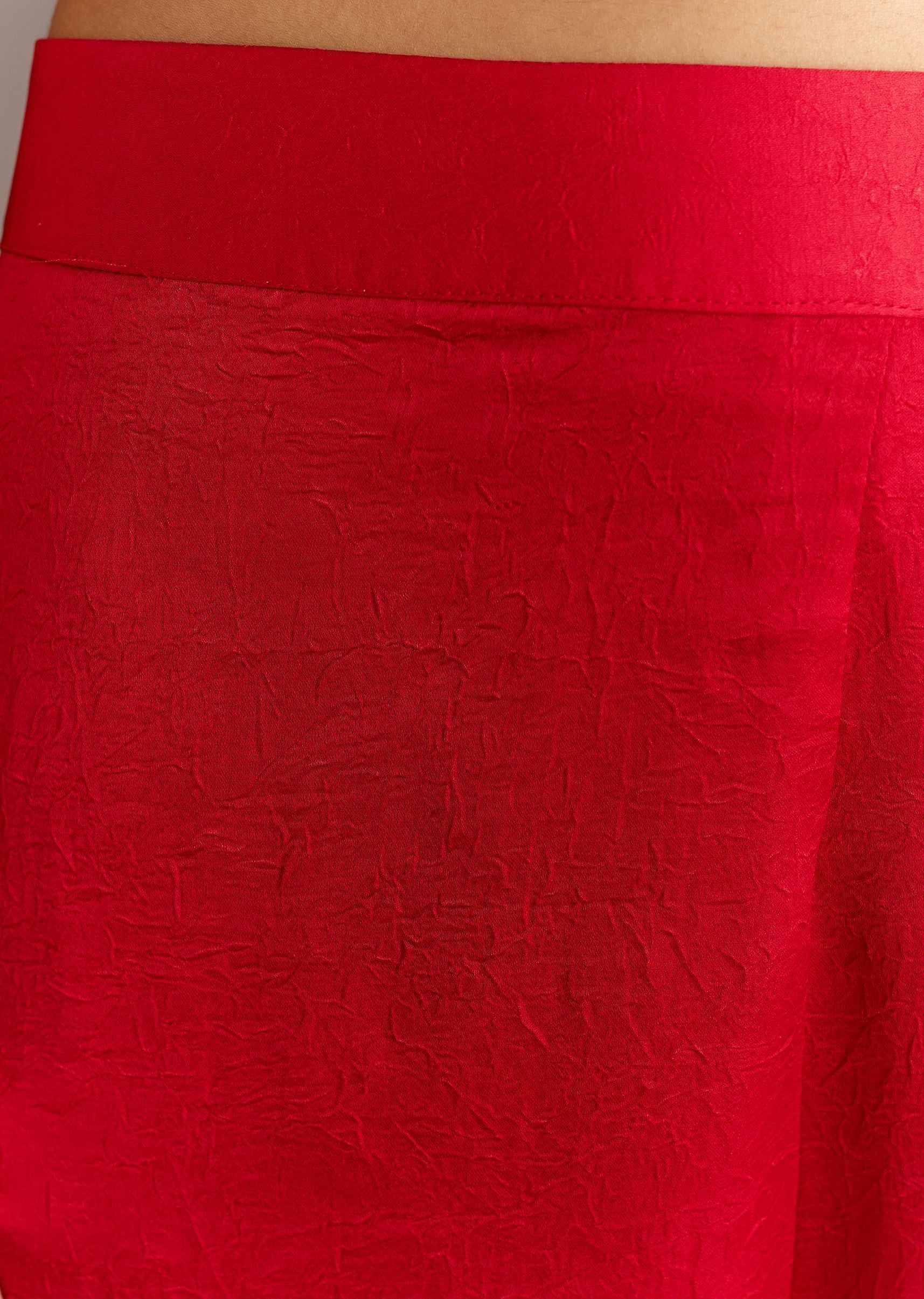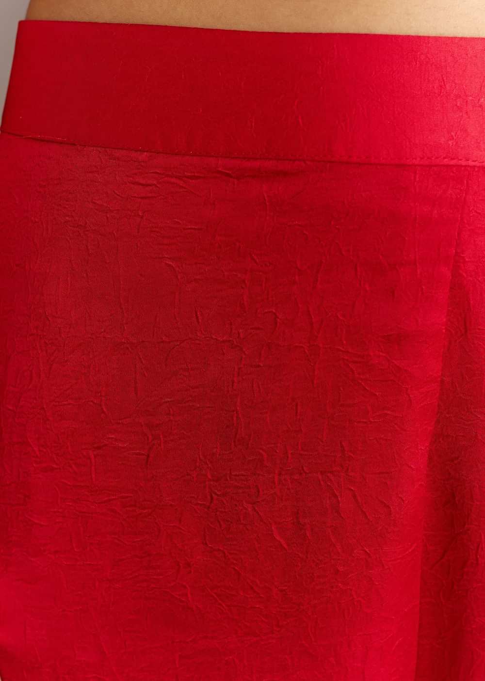 Red Crush Silk Kaftaan Set With Stone Neckpiece