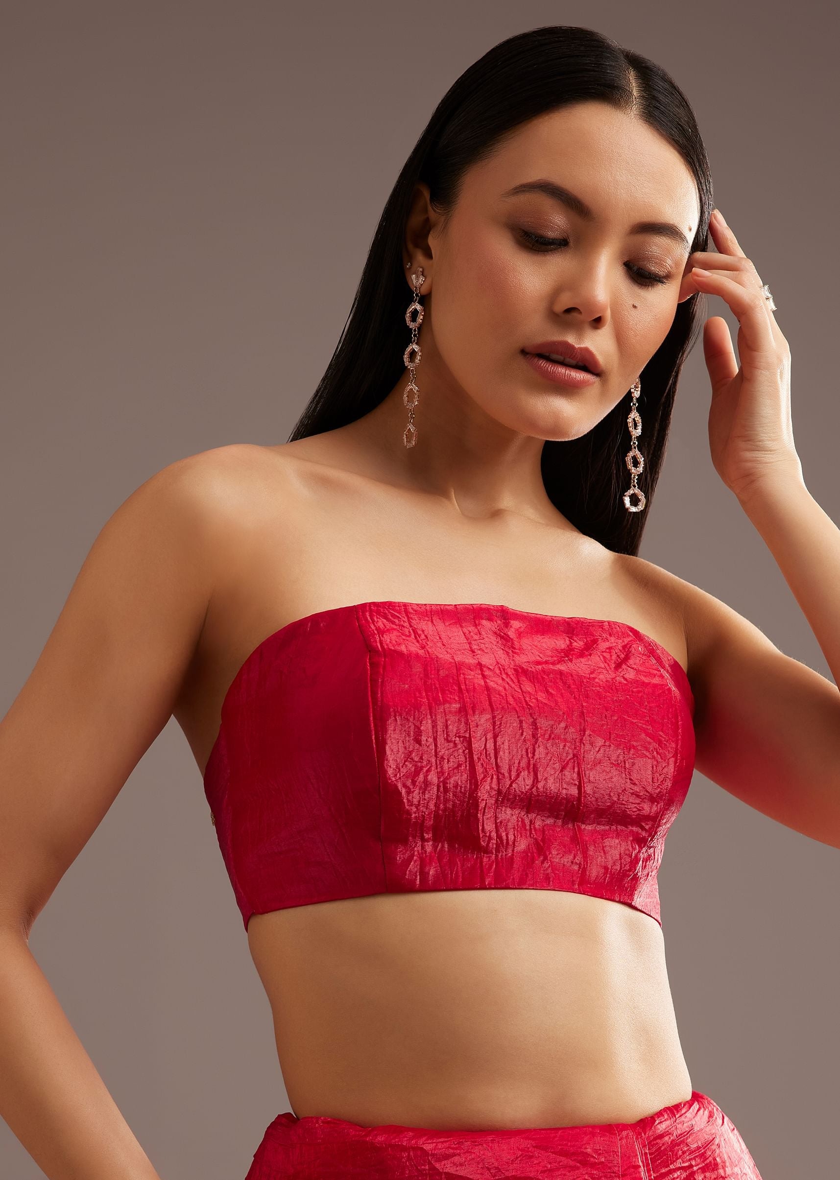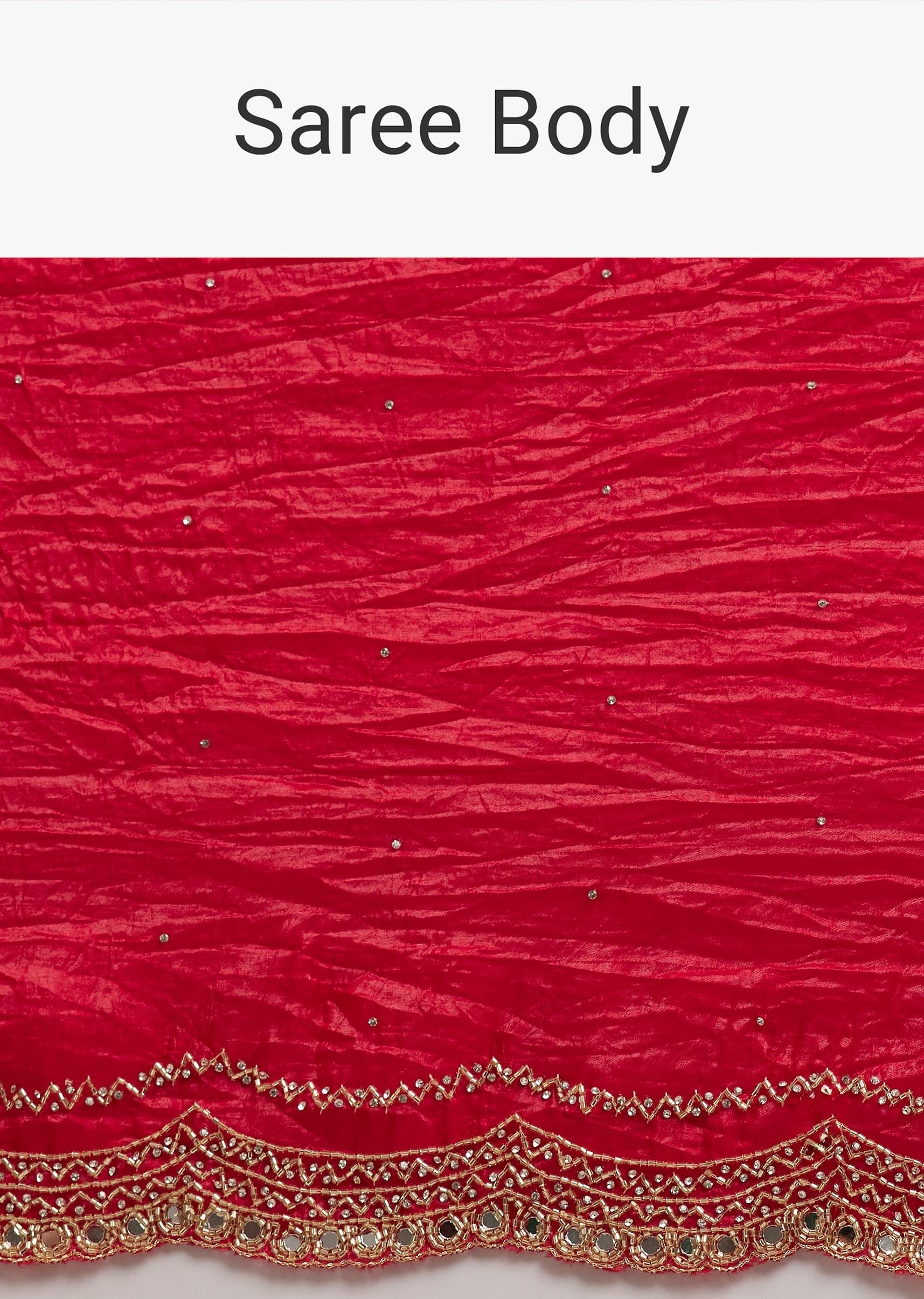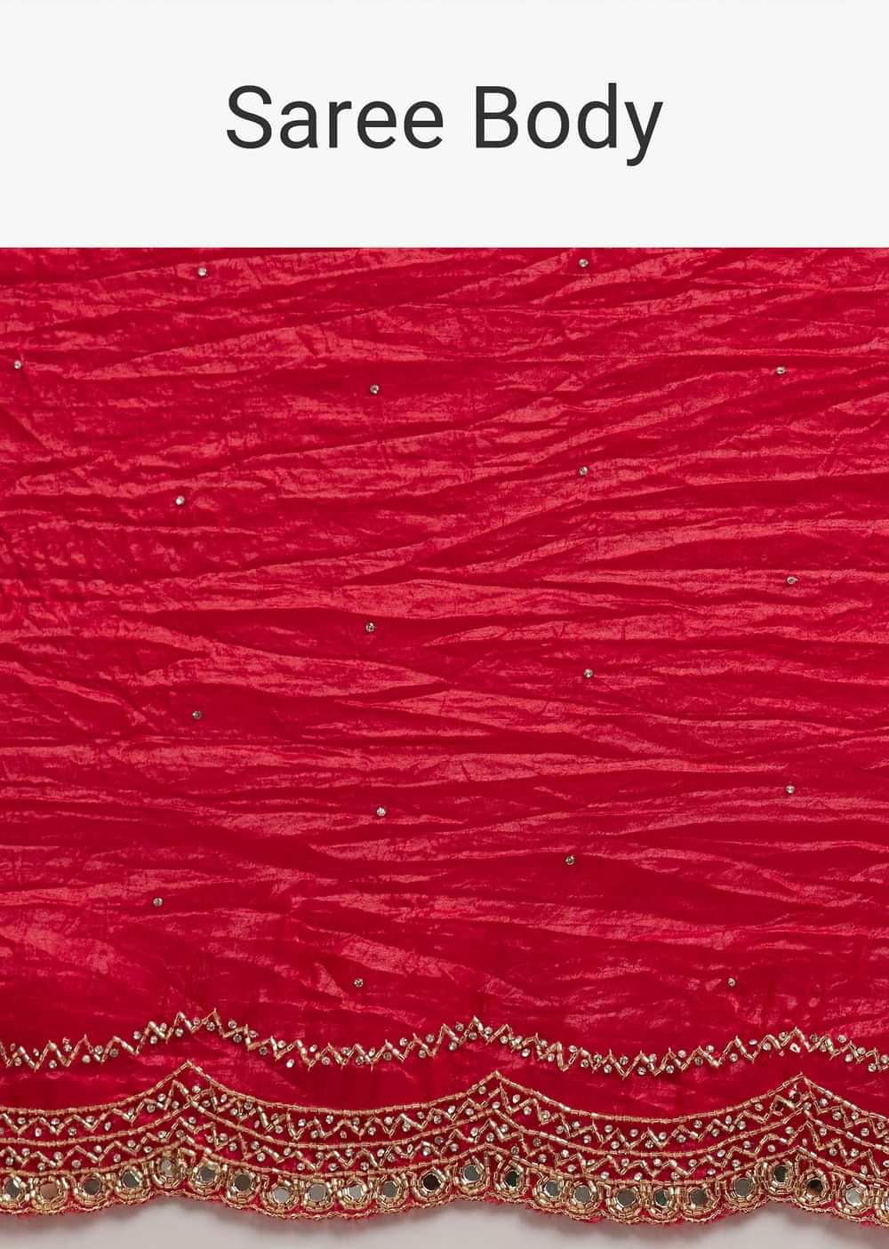 Red Crushed Tissue Silk Saree With Cutdana Scallop Border