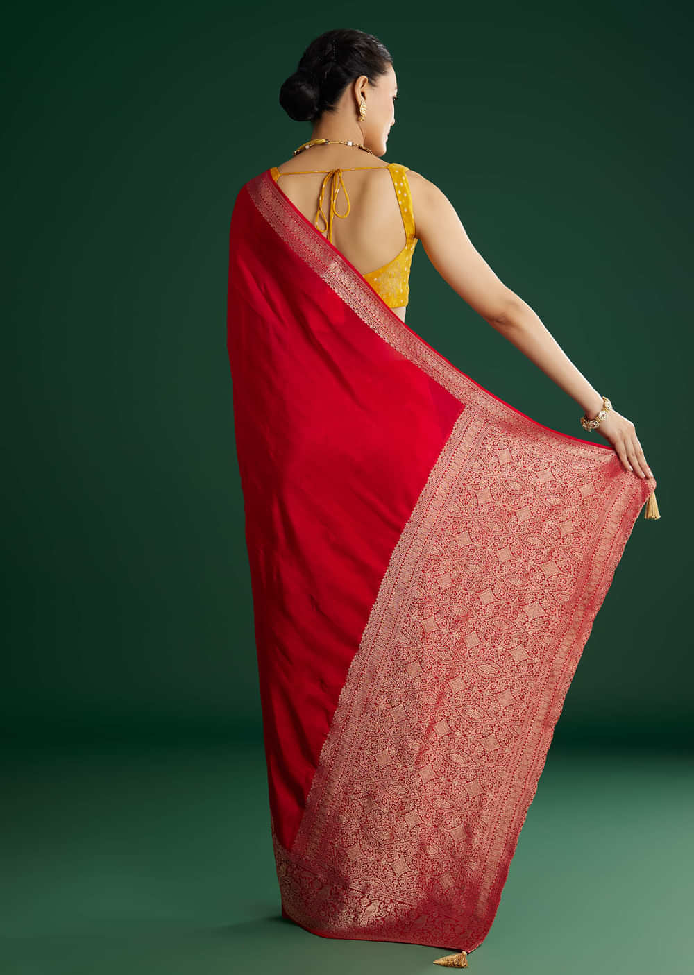This Red Dola Silk Saree features a finely woven border and pallu that enhance its traditional appeal. Ideal for weddings, religious ceremonies, or festive gatherings, it combines elegance with timeless craftsmanship for a striking ethnic look. Awarded as the Most Trusted Brand, we're delivering styles you love, just as promised.