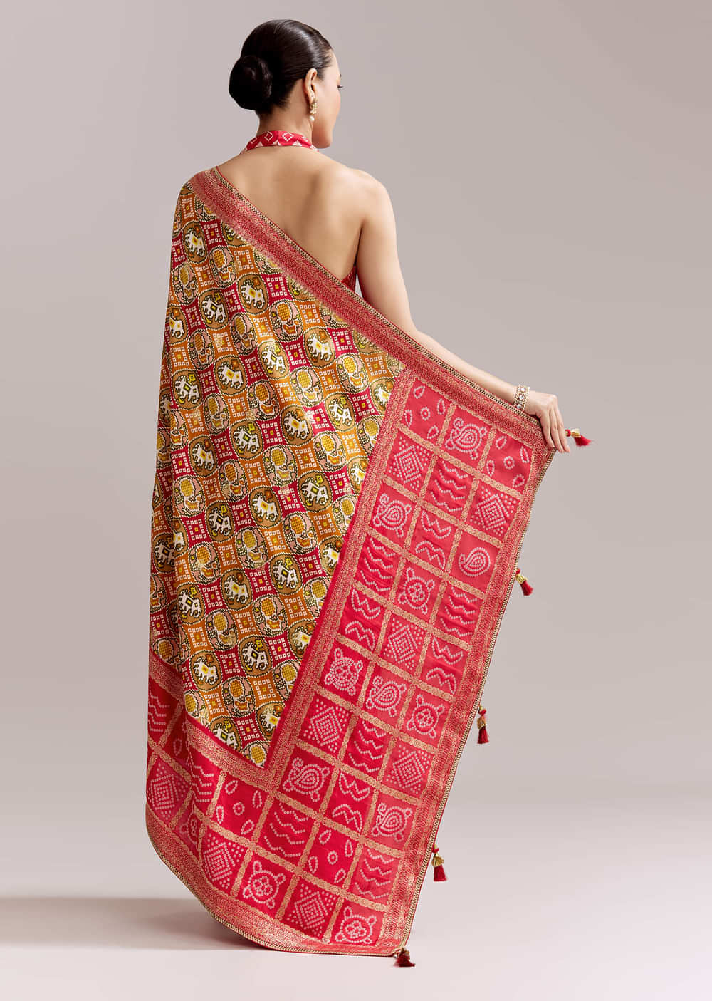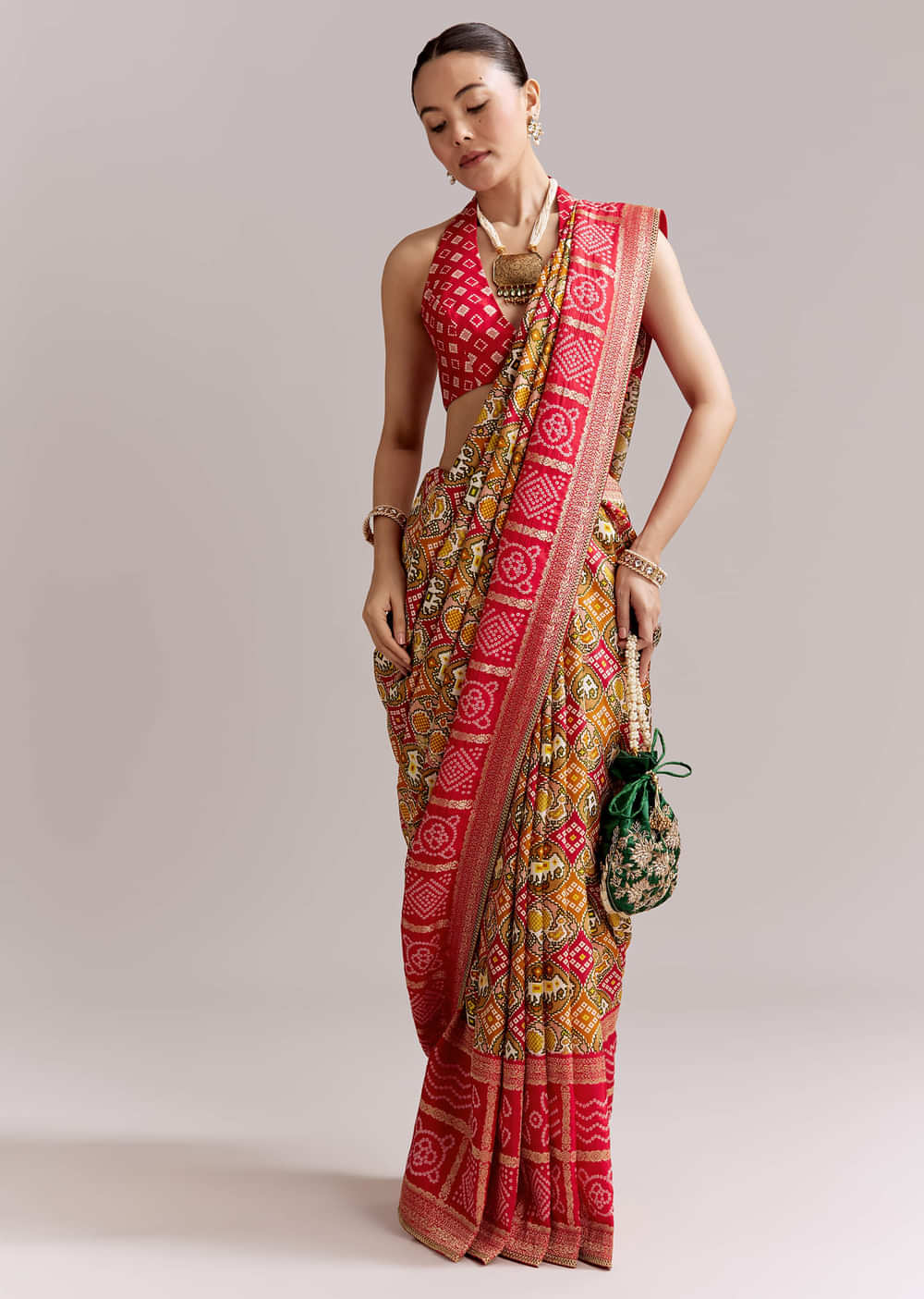 Red Dola Silk Woven Bandhani Saree With Gotapatti Detailing