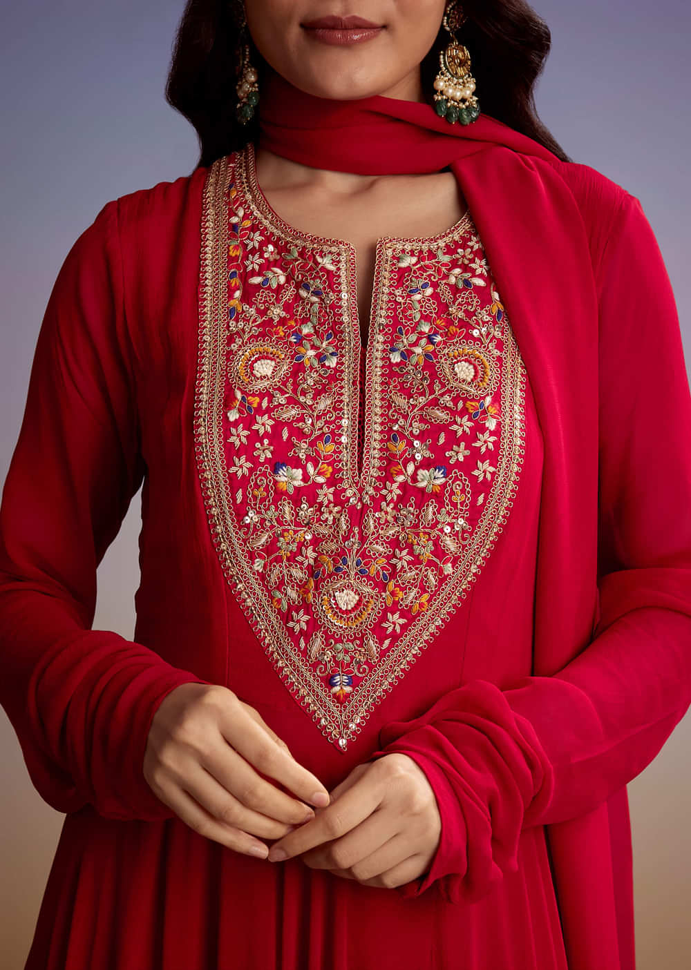 Red Georgette Anarkali Suit With Zari And Sequins Work