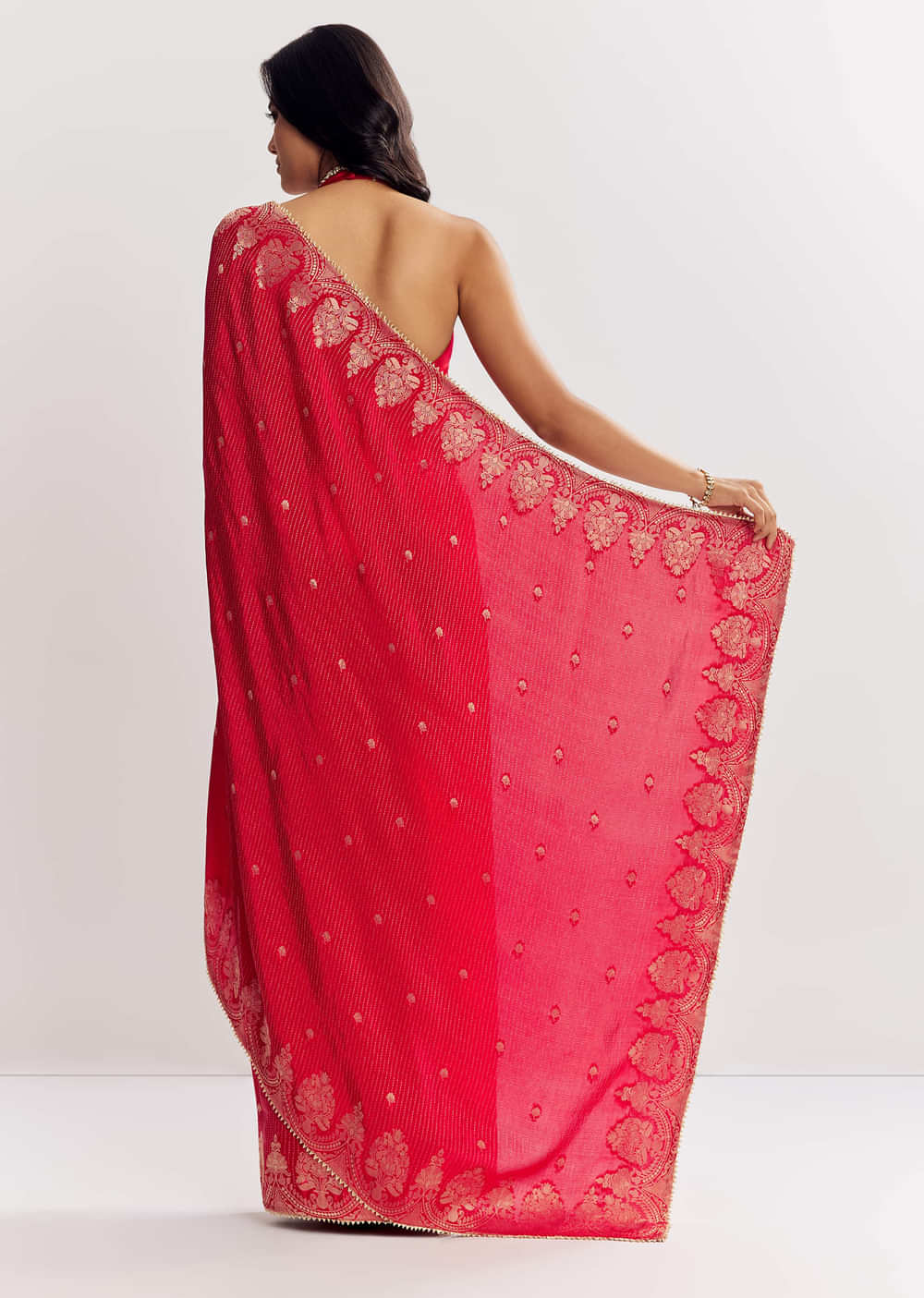 Red Georgette Lurex Saree With Brocade Butti And Gota Patti Border