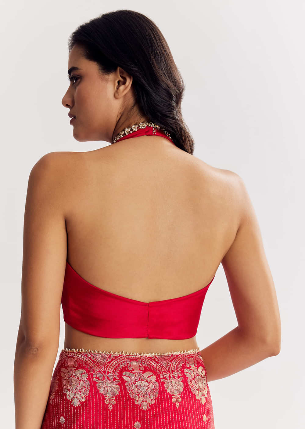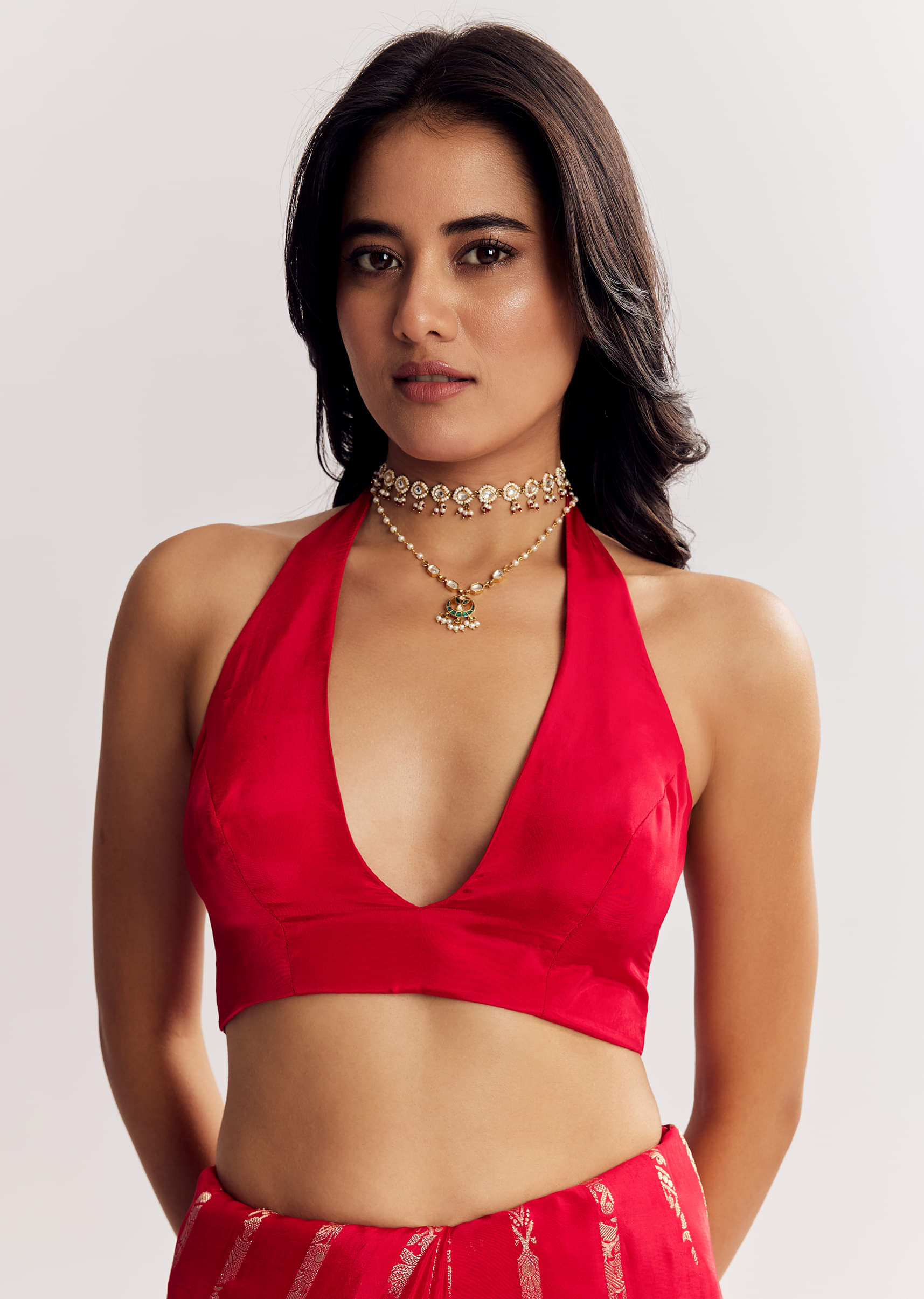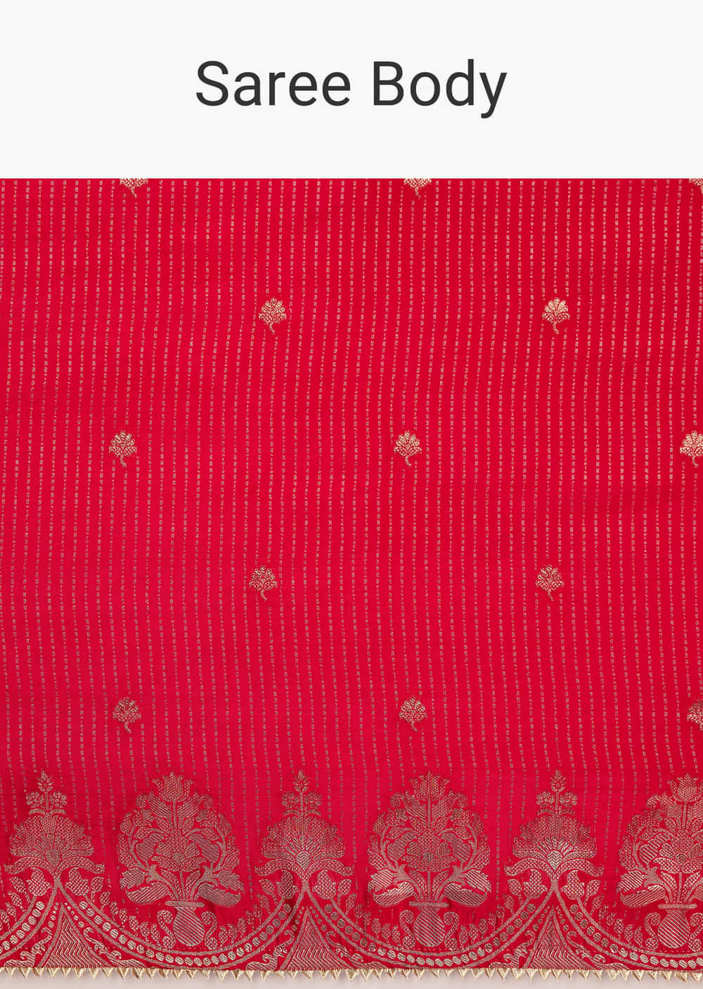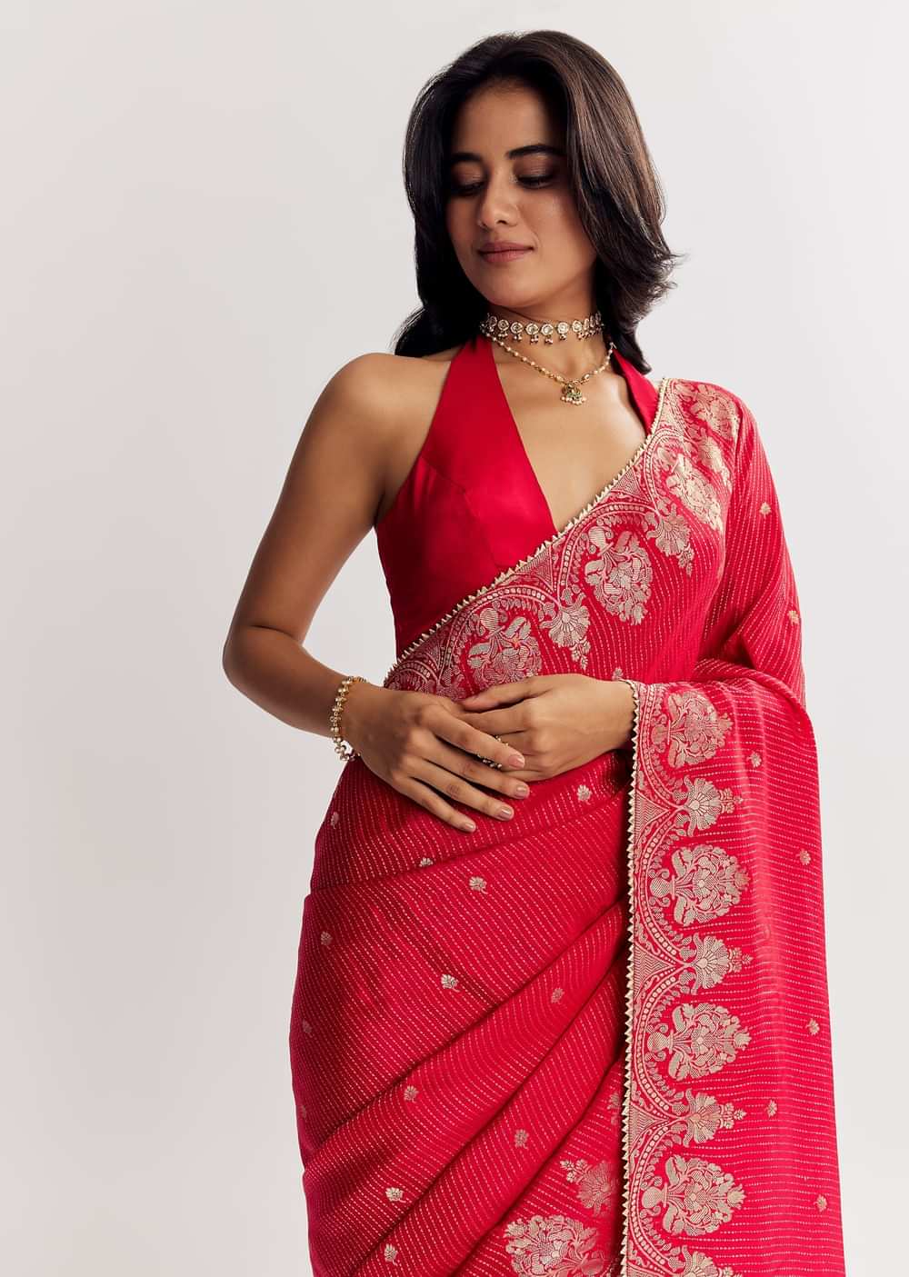 Wrapped in vibrance, this red georgette lurex saree boasts woven brocade butti and glistening gota patti border all over. Awarded as the Most Trusted Brand, we're delivering styles you love, just as promised.