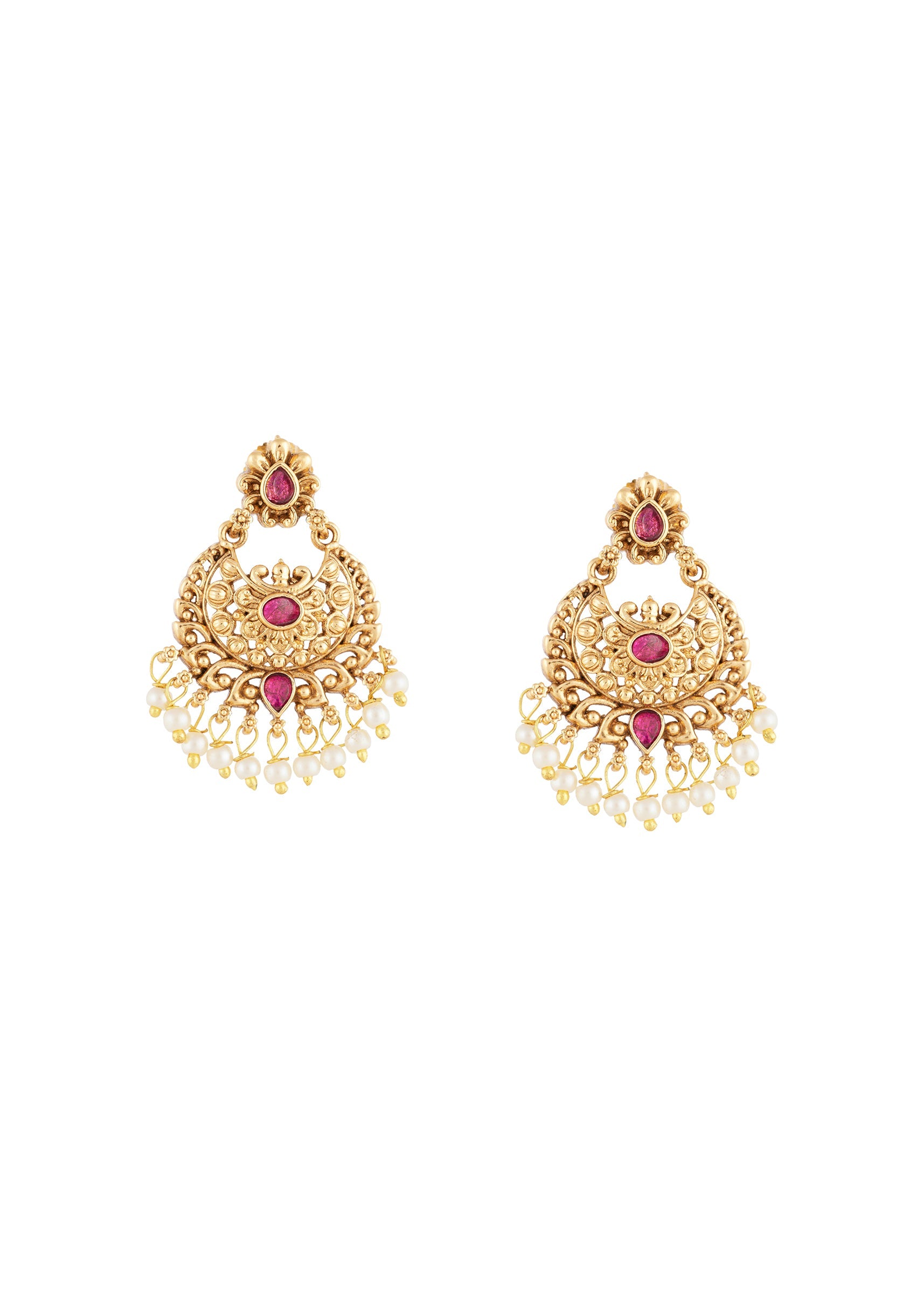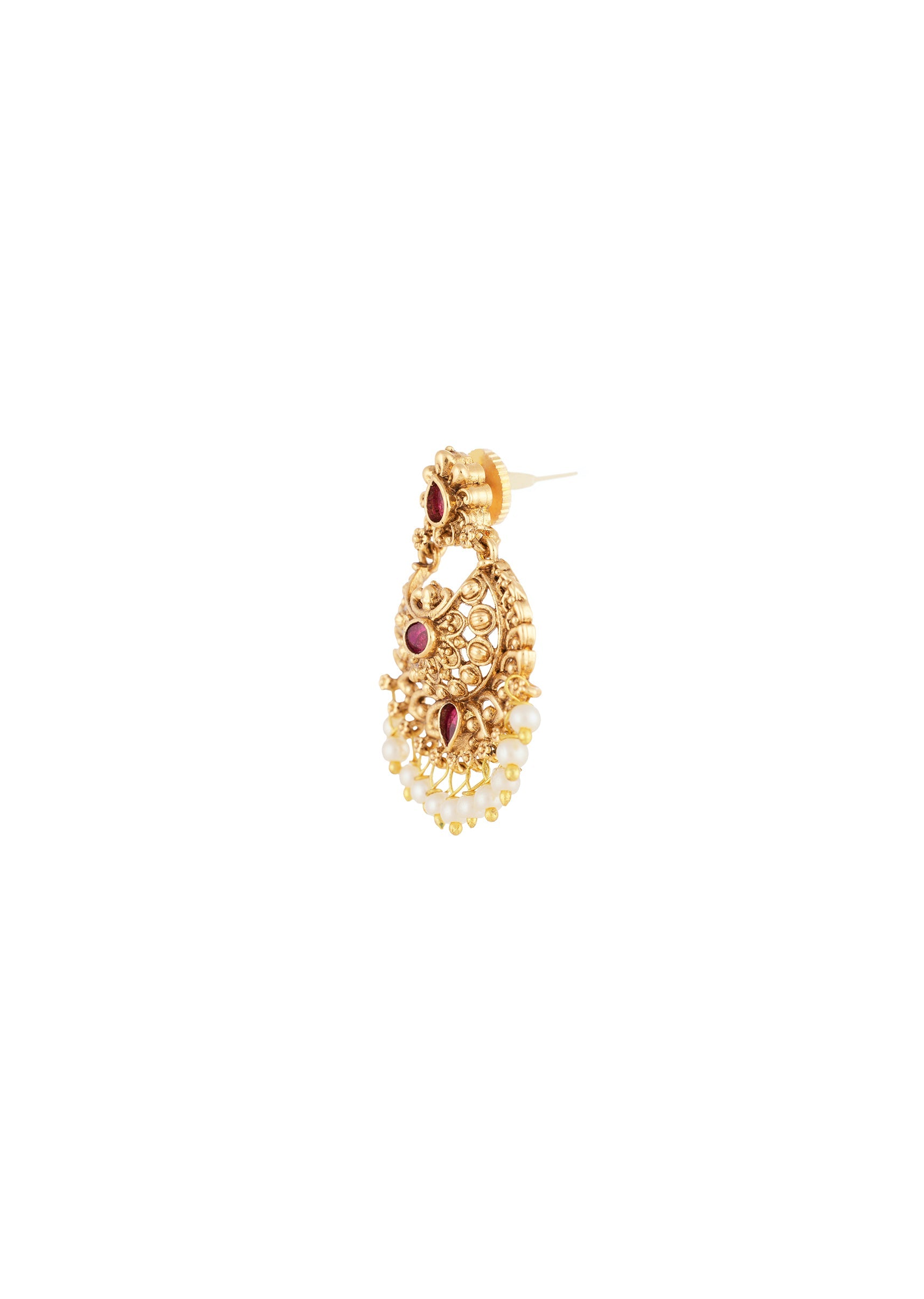 Red Gold Earrings With Kundan Detail Work