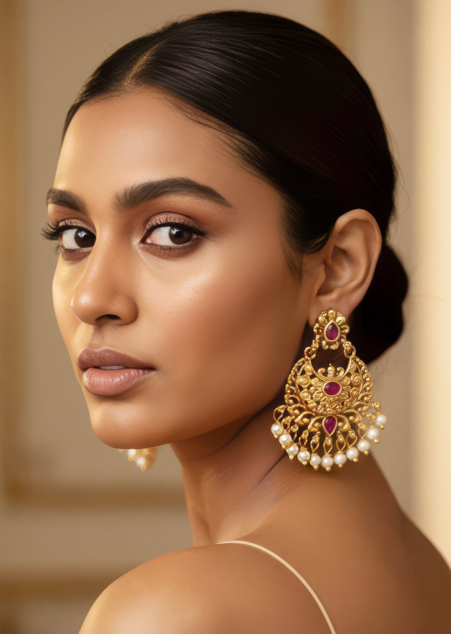 Pair them with a red or gold embroidered outfit to highlight their vibrant kundan accents.