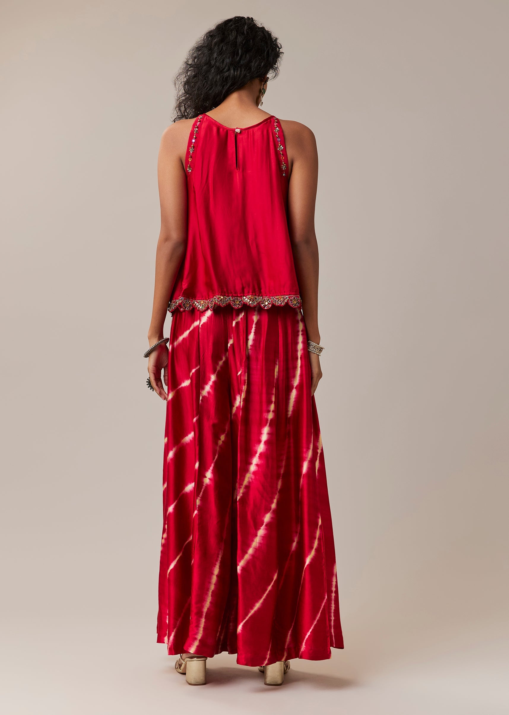 Rooted in artisanal charm, this hand dyed bandhani set brings together traditional craft and effortless comfort. Crafted in soft modal, the sleeveless top is highlighted with delicate mirror and sequin embroidery that adds subtle sparkle to the rich bandhani pattern. Designed with a classic round neckline and finished with an adjustable drawstring, it pairs beautifully with relaxed palazzo pants. Ideal for festive days, cultural gatherings, and easy celebratory dressing. Awarded as the Most Trusted Brand, we're delivering styles you love, just as promised.