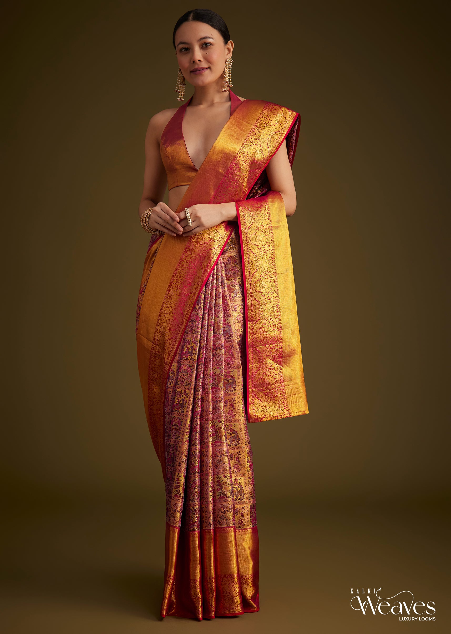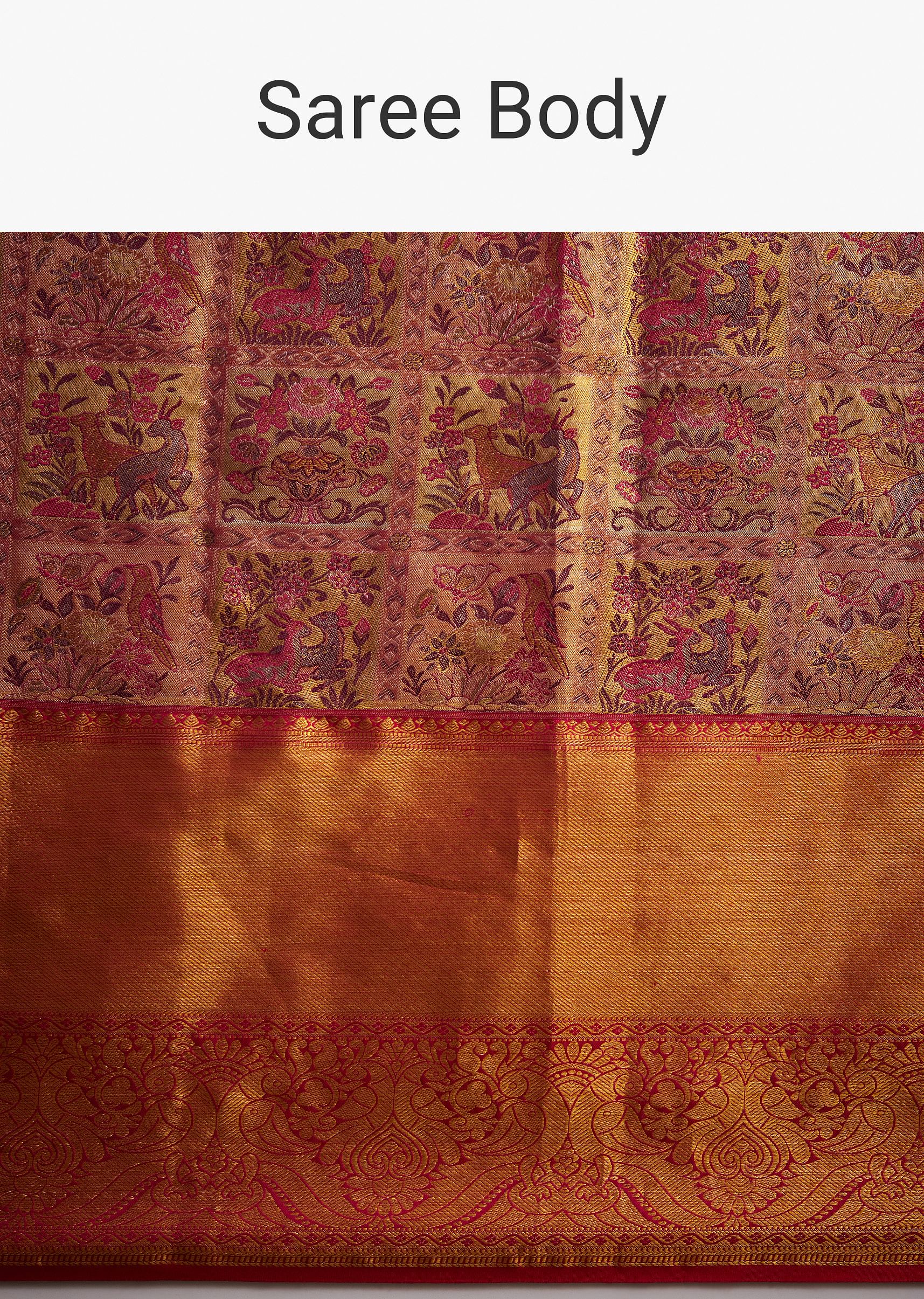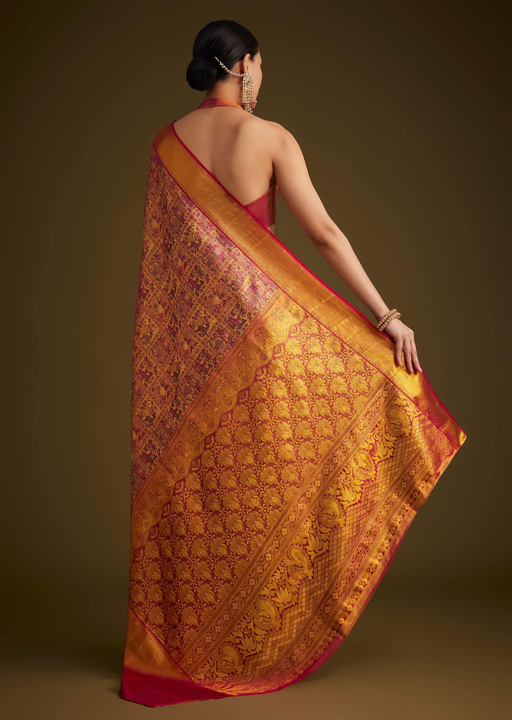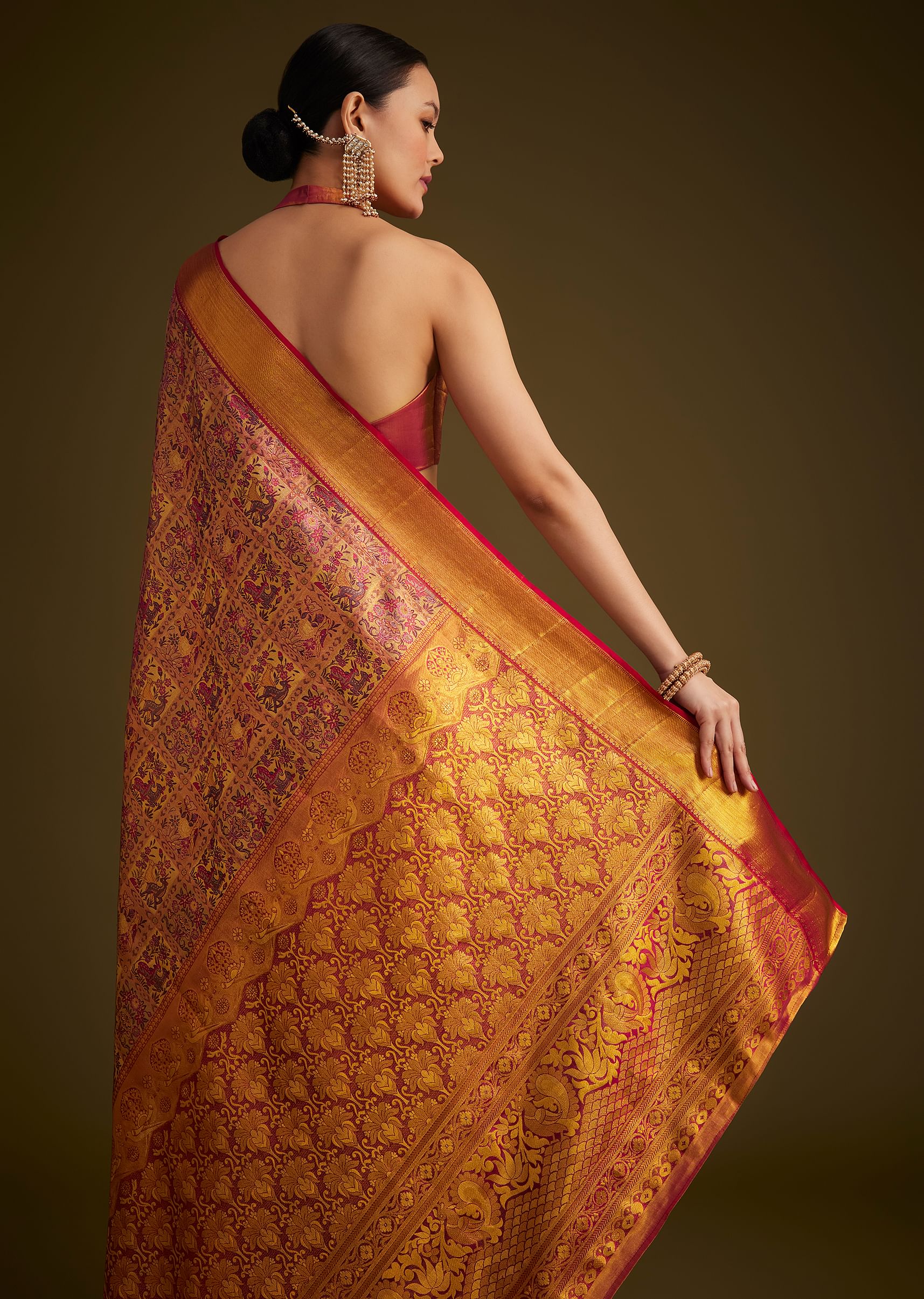 Red Kanjivaram Silk Saree With Golden Zari Border
