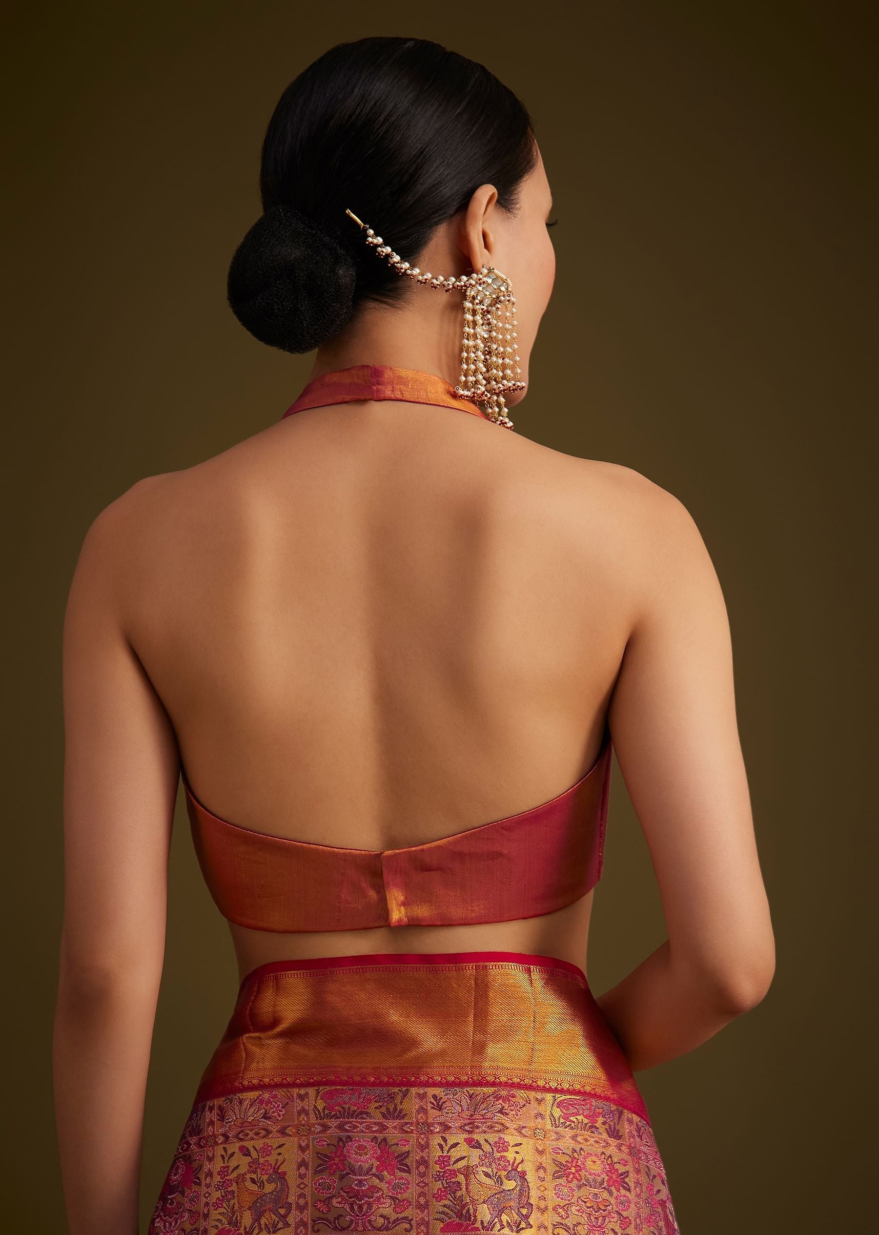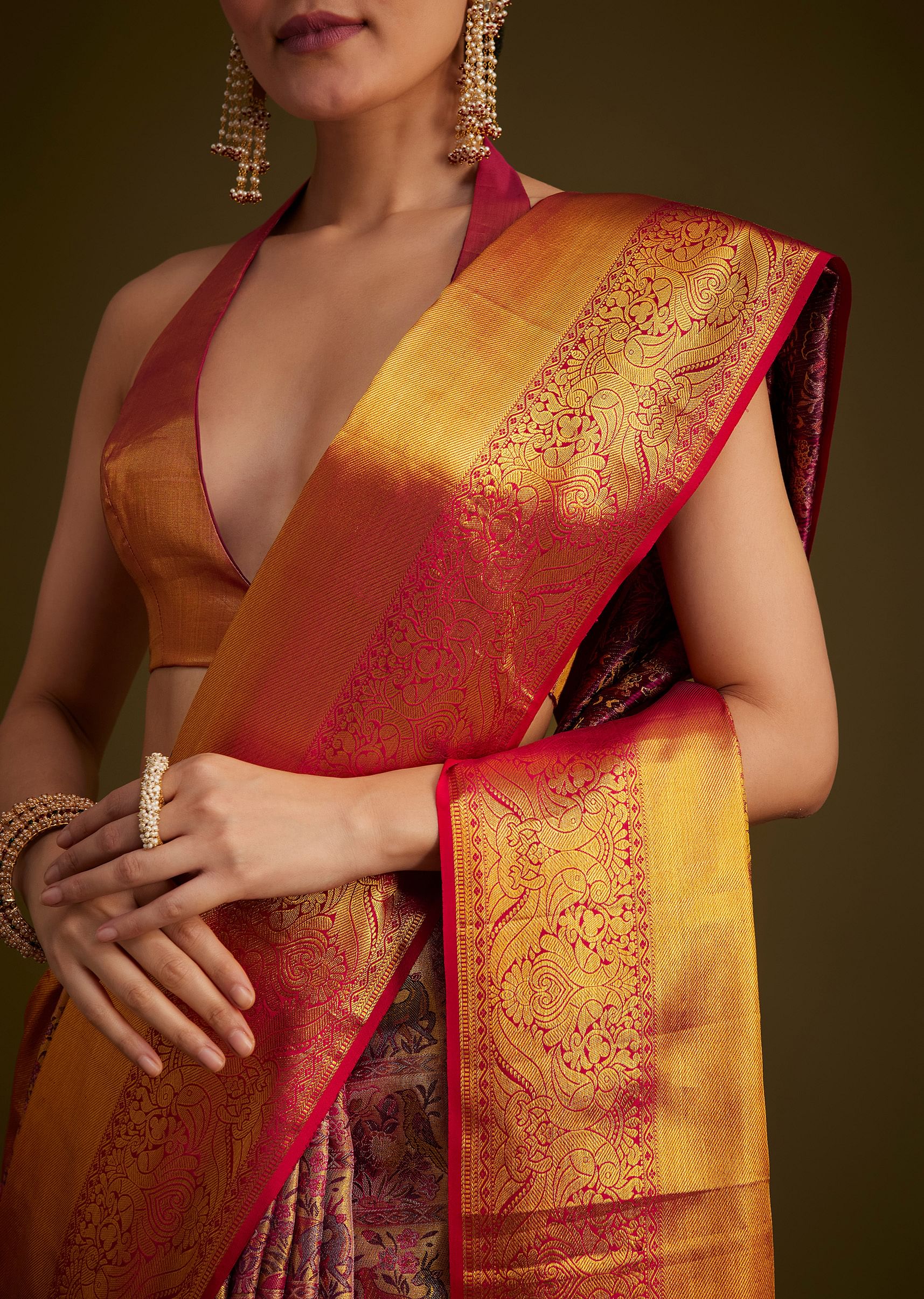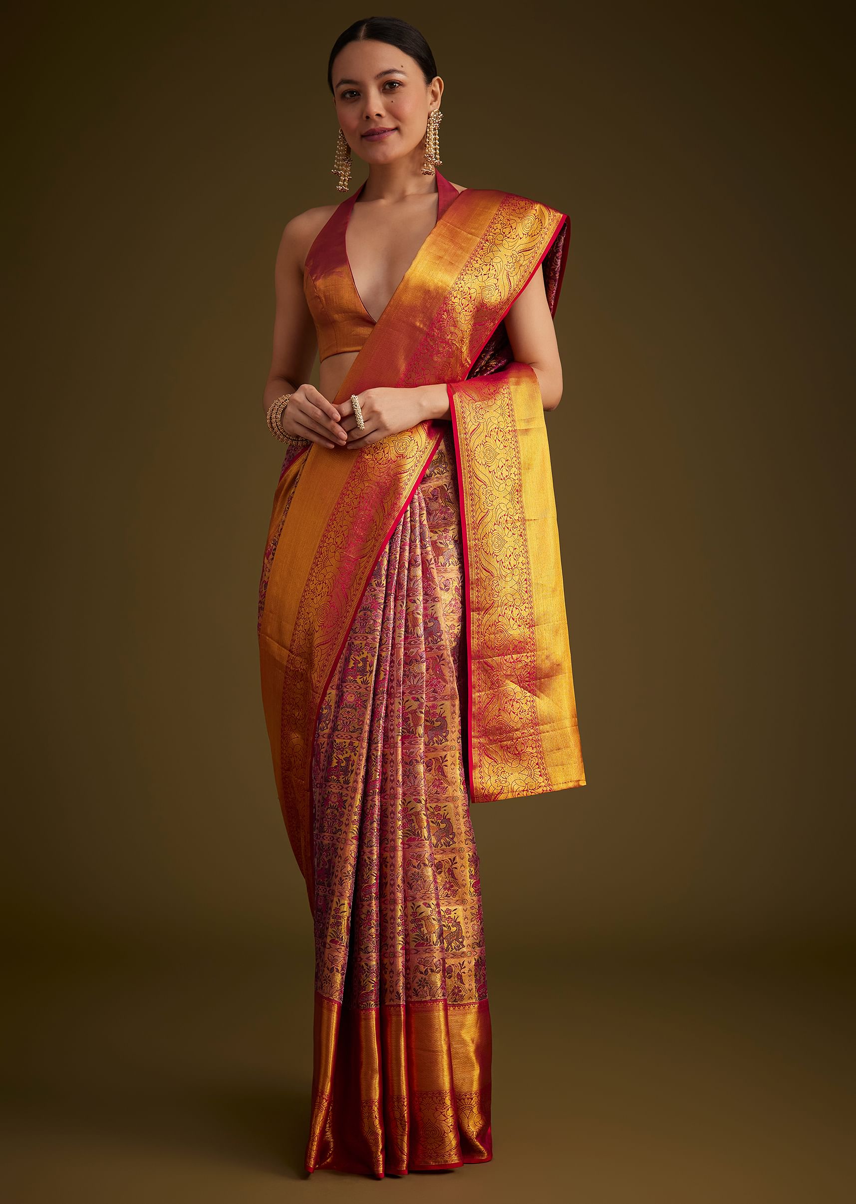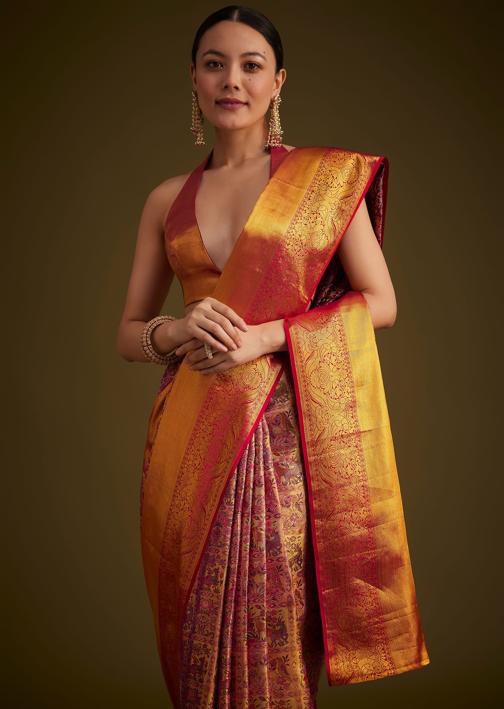 Red Kanjivaram Silk Saree With Golden Zari Border