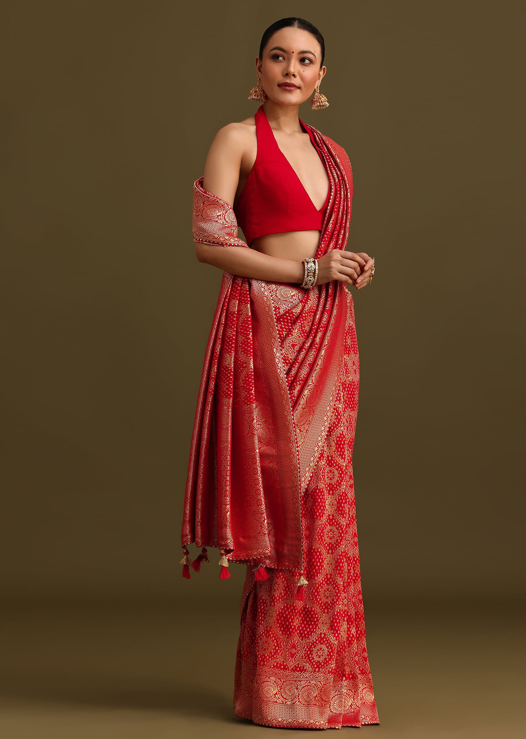 Red Khaddi Georgette Zari Weave Saree With Unstitched Blouse