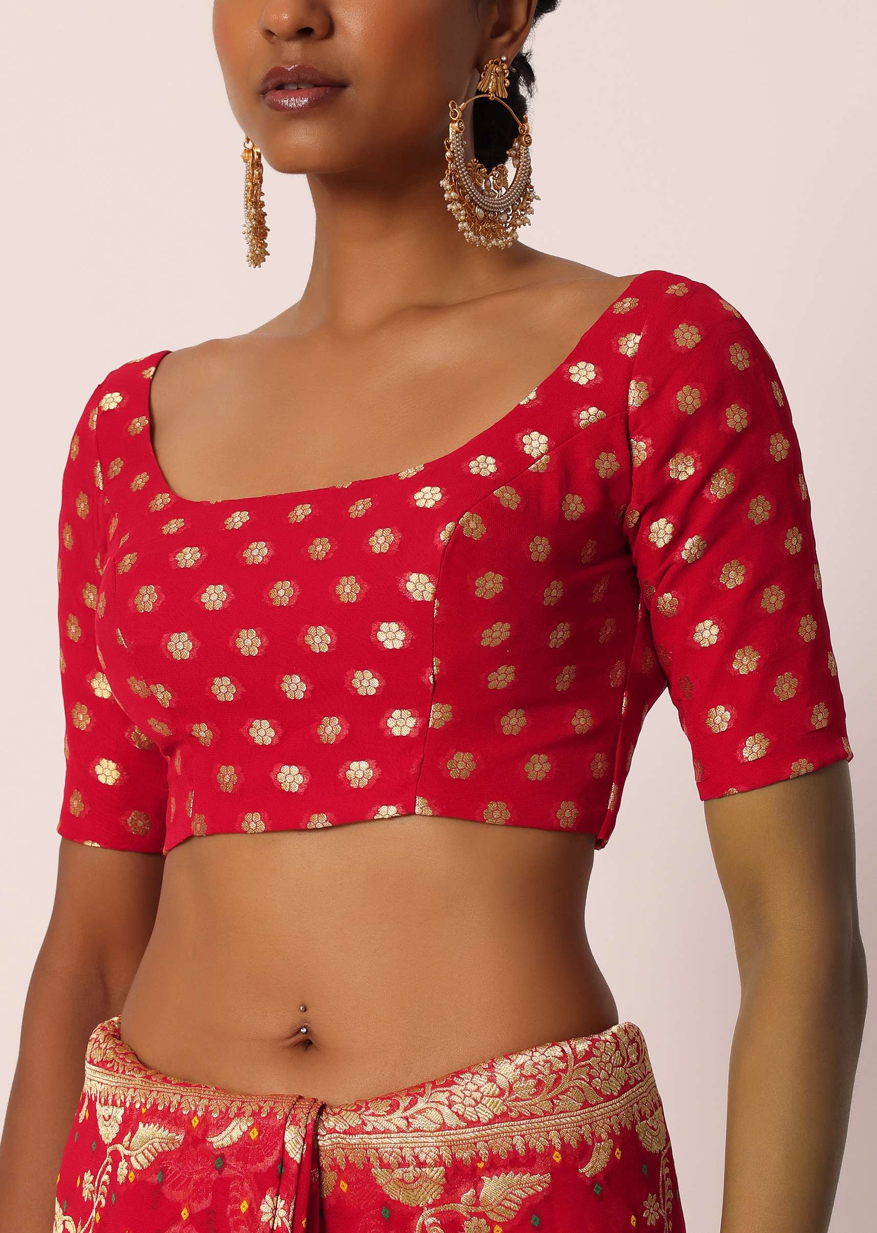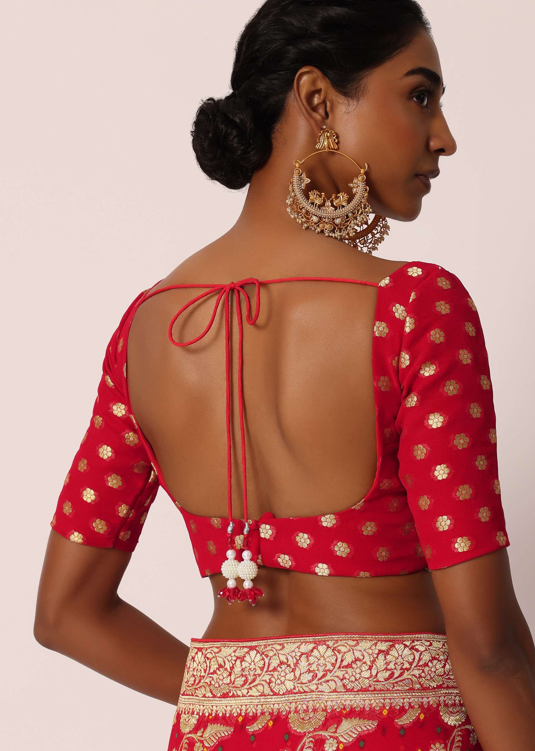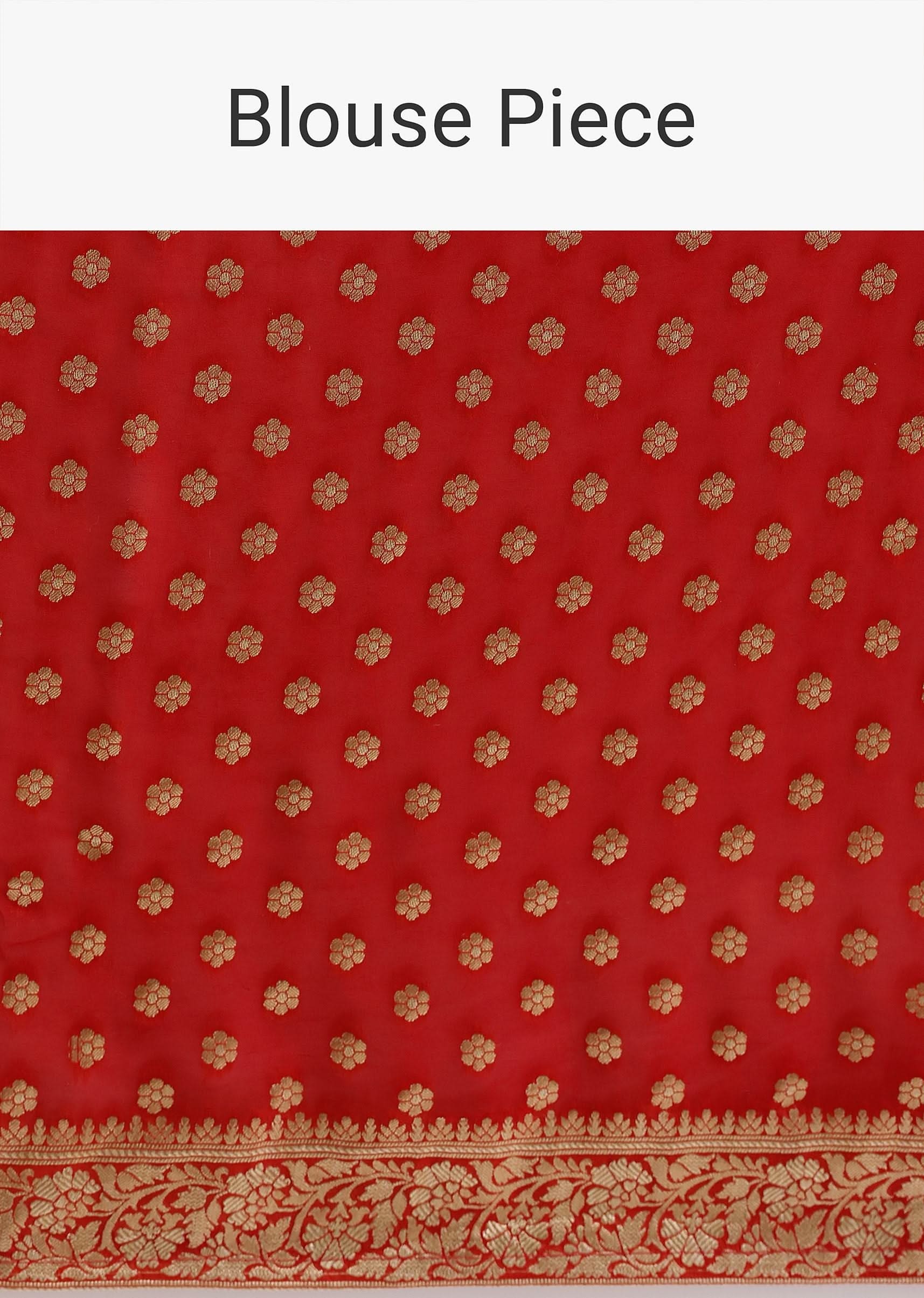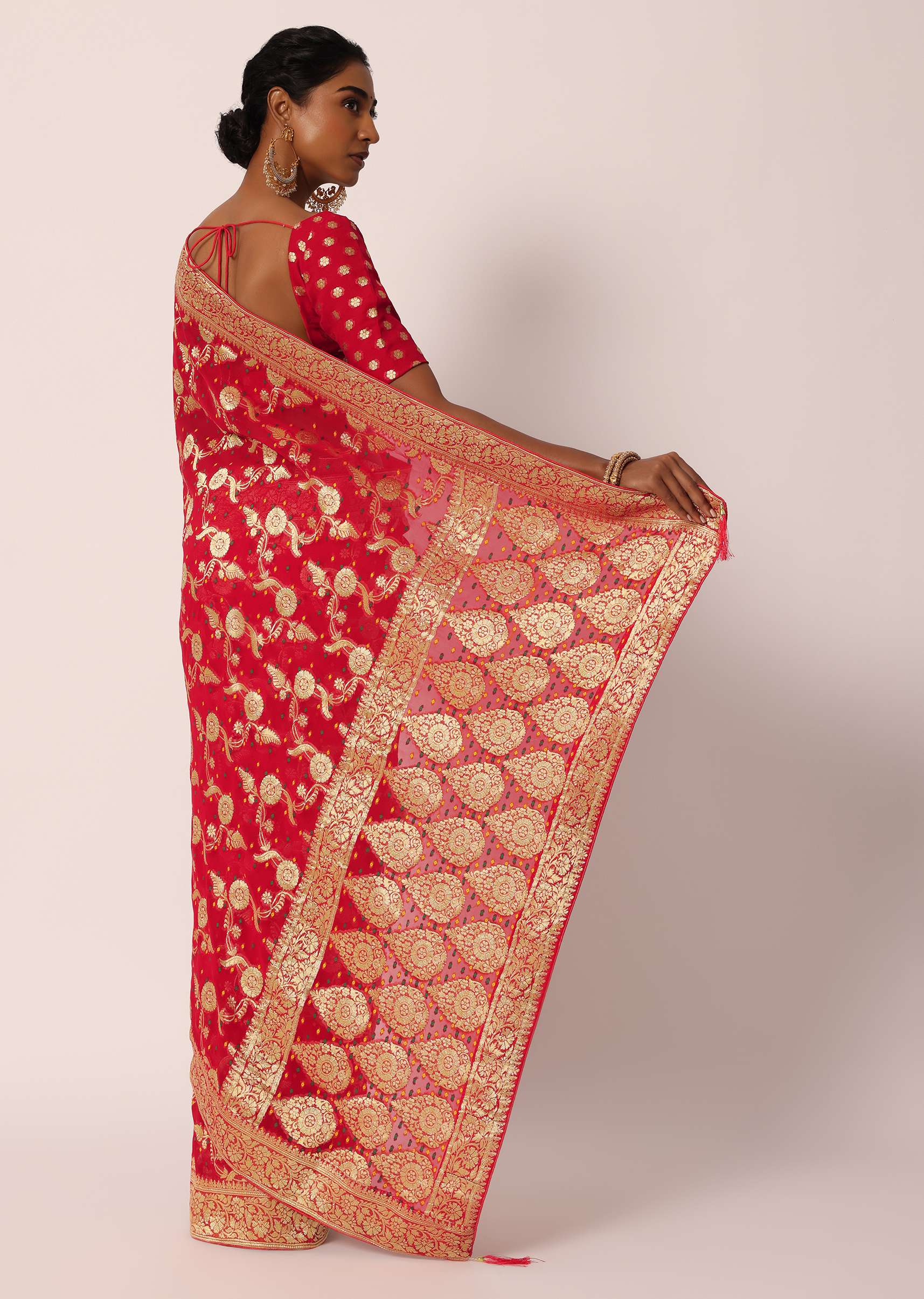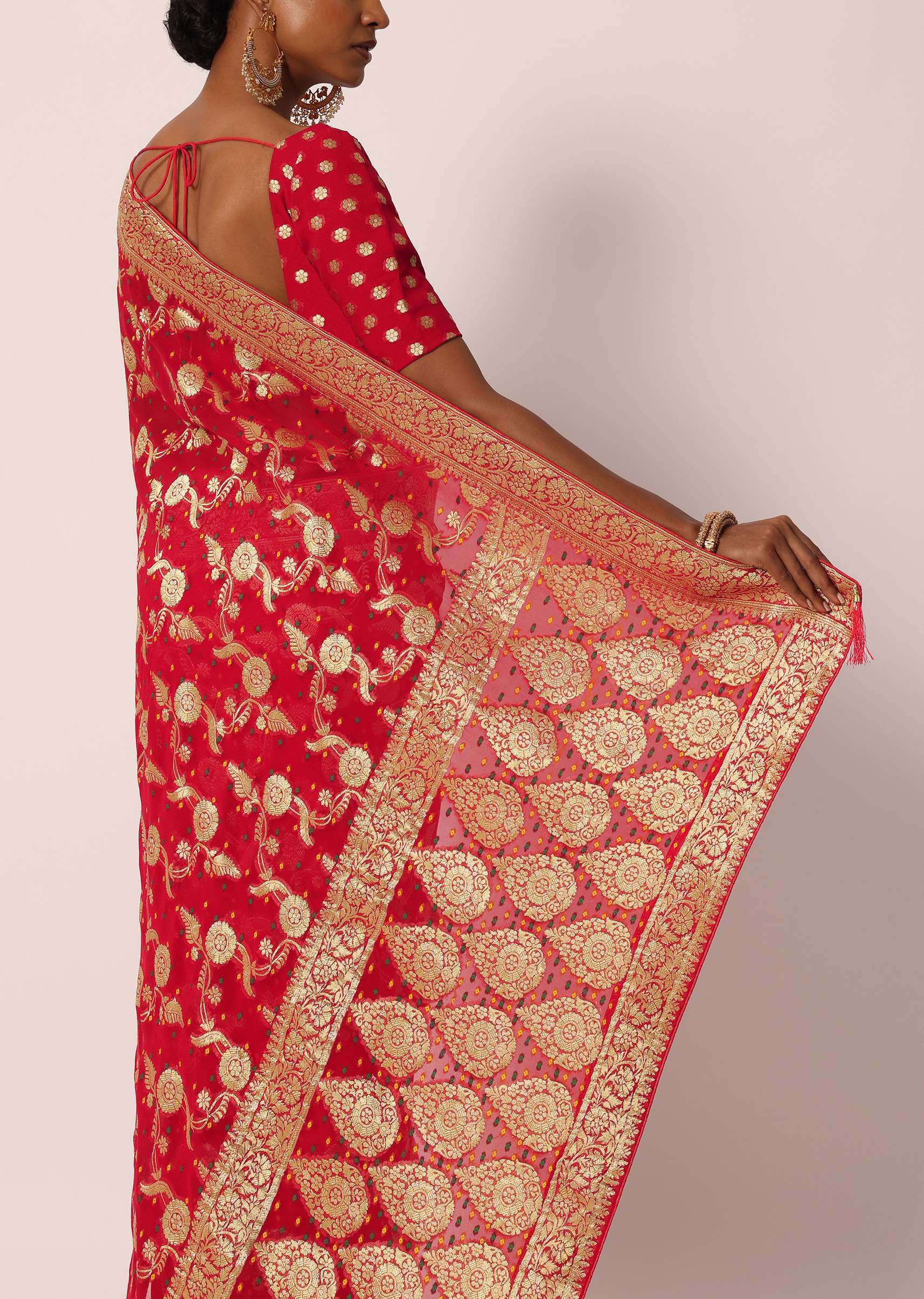 Red Khadi Gota Patti Banarasi Saree With Unstitched Blouse Piece