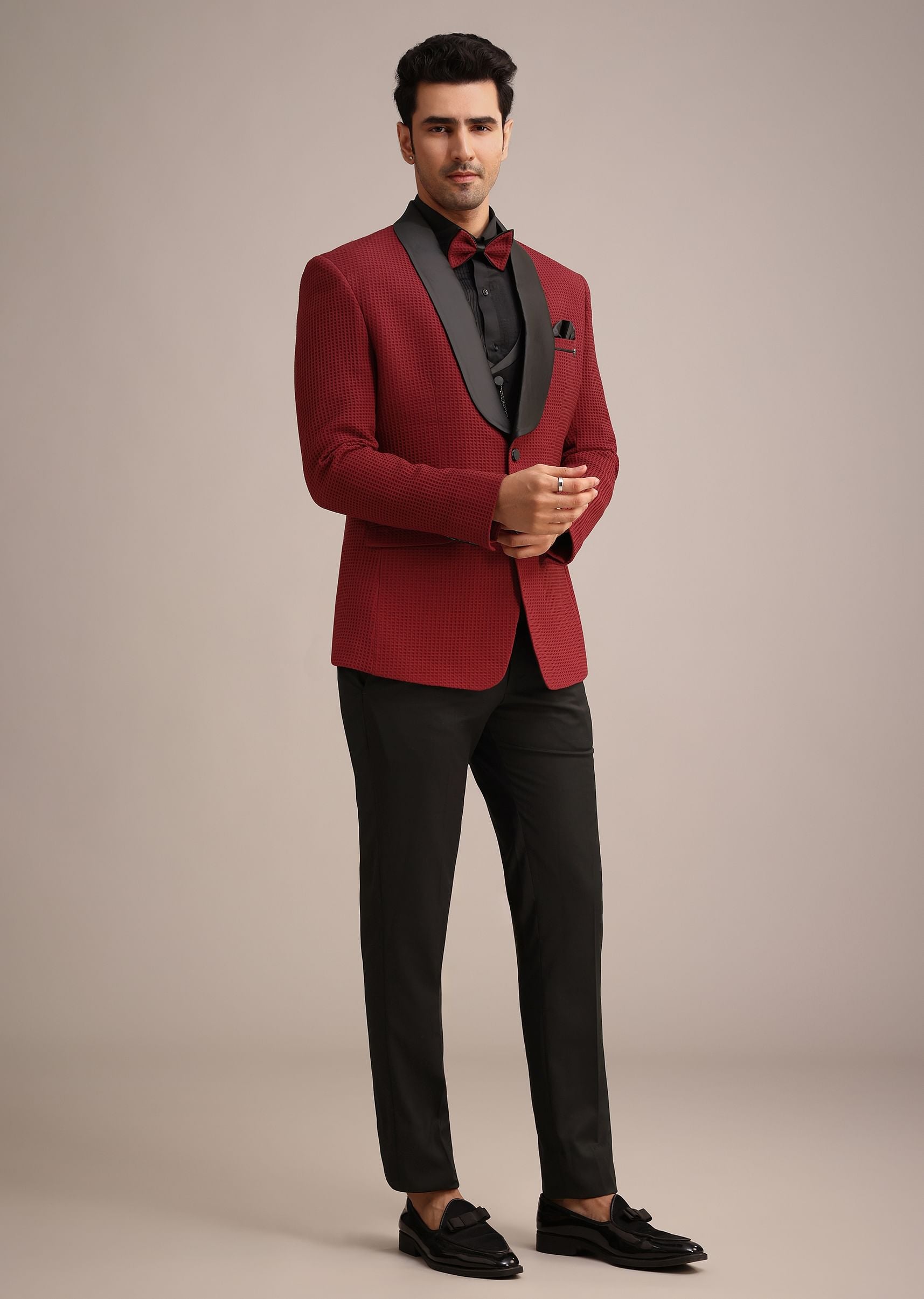A showstopper look that will command attention everywhere you go in this red tuxedo set. Crafted with a contrast shawl collar, the front-buttons and full sleeve design lend an alluring... More Product Details