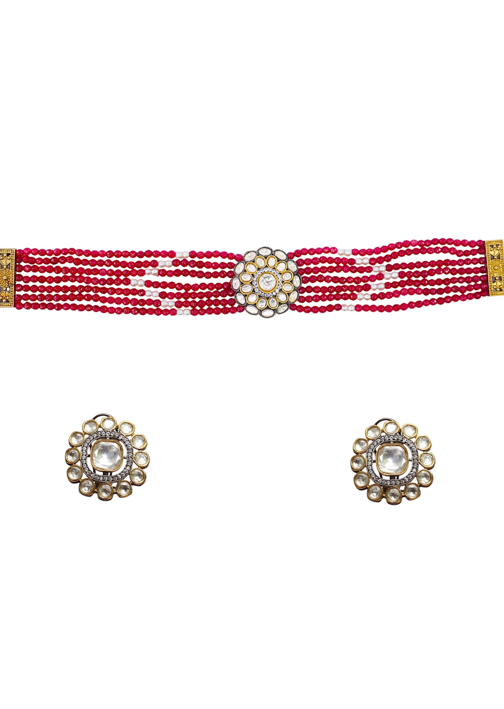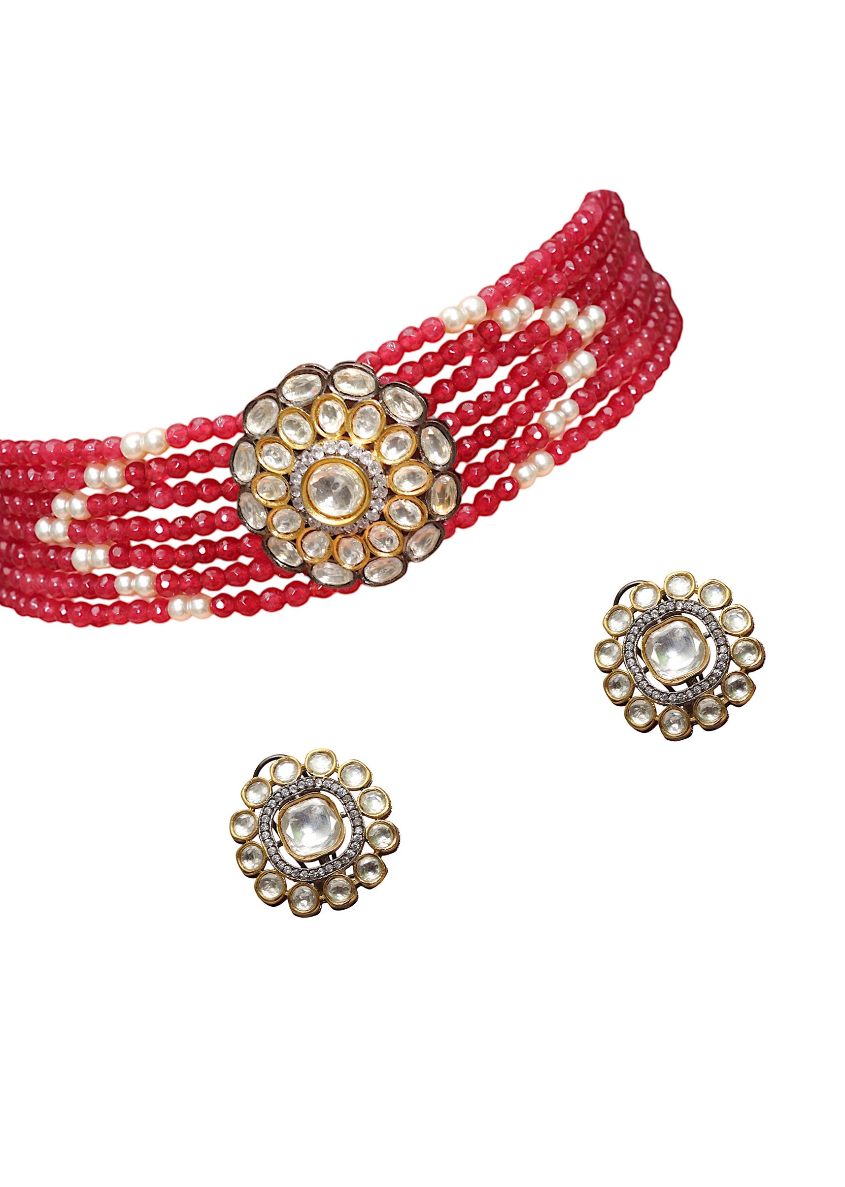 Red Kundan Encrusted Beaded Pendant Necklace Set