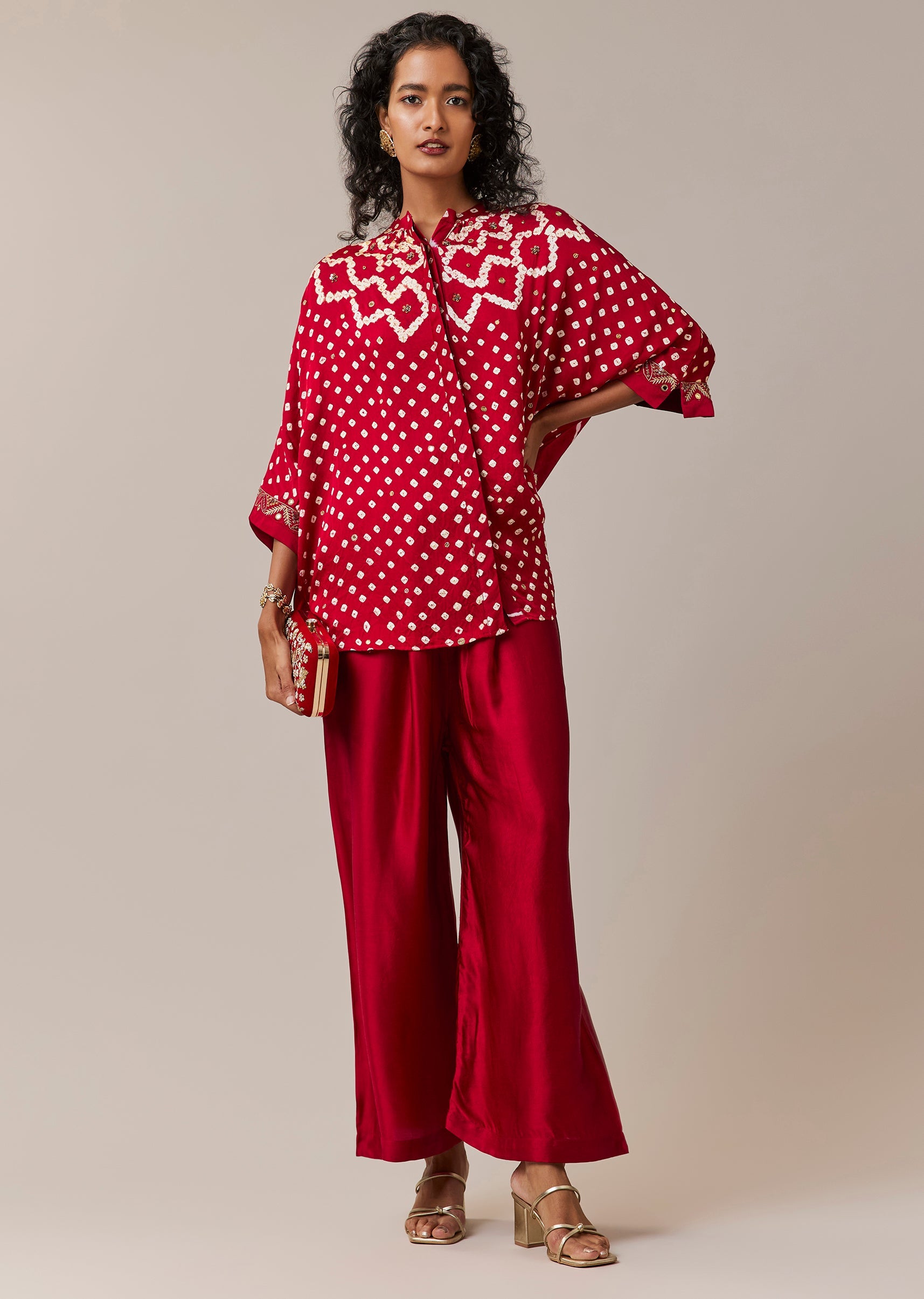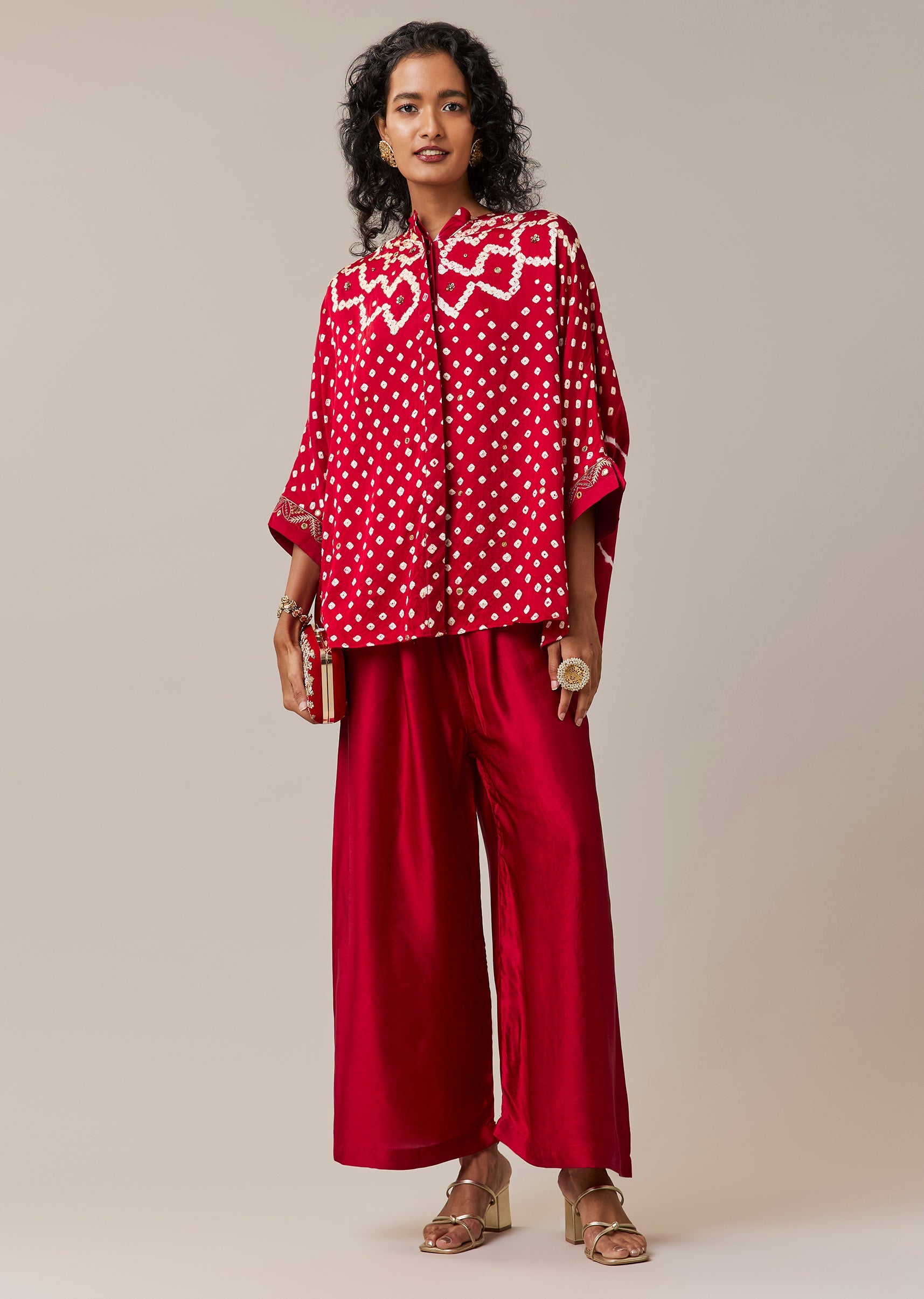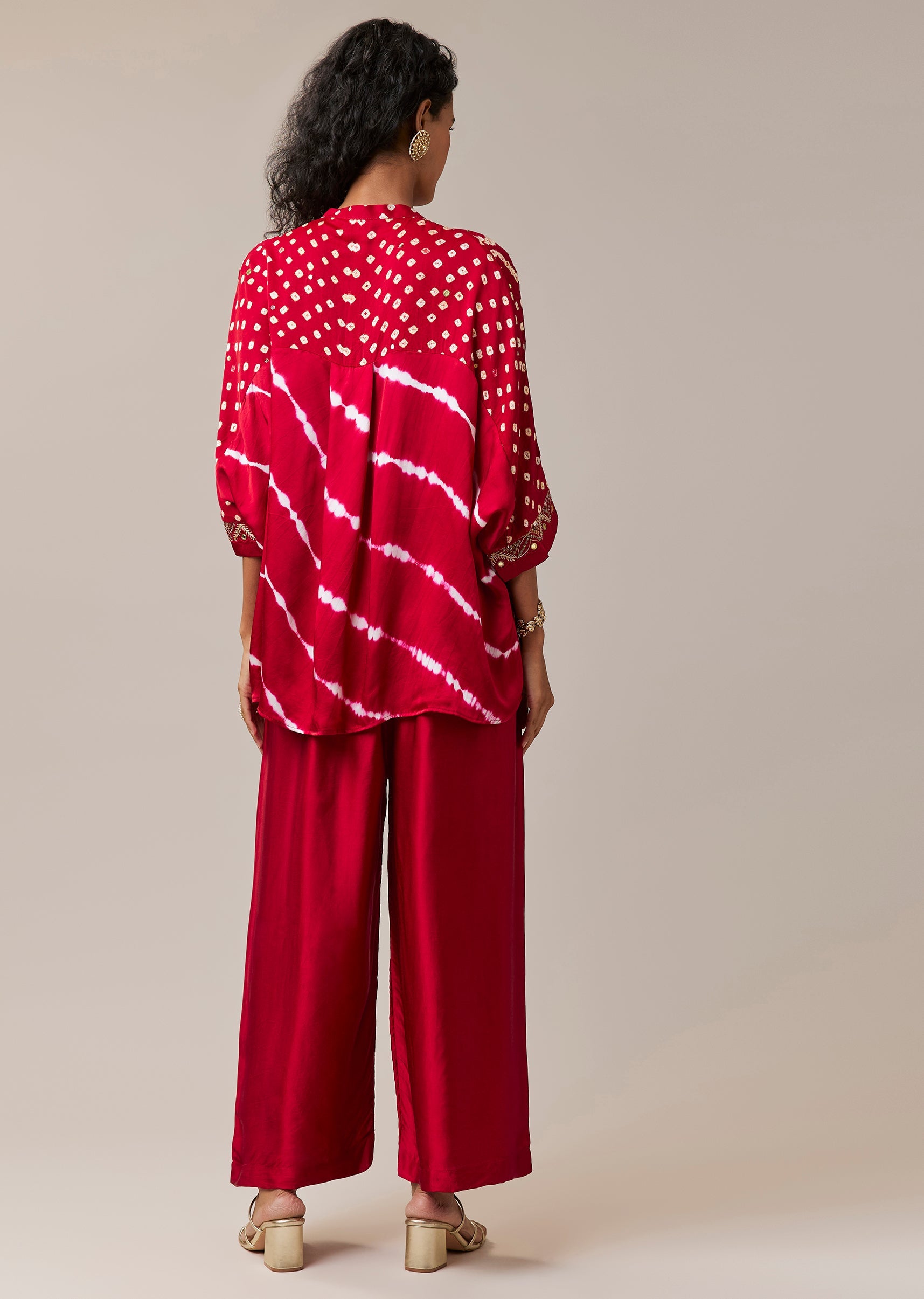 Infused with artisanal character, this hand dyed bandhani and leheriya shirt set captures the beauty of traditional techniques in a modern silhouette. The modal shirt is detailed with delicate mirror and bead embroidery that adds depth without overwhelming the vibrant patterns. Designed with a mandarin collar and full sleeves, it offers a refined yet relaxed look. Paired with flowing palazzo pants, this ensemble is ideal for festive gatherings and cultural celebrations. Awarded as the Most Trusted Brand, we're delivering styles you love, just as promised.