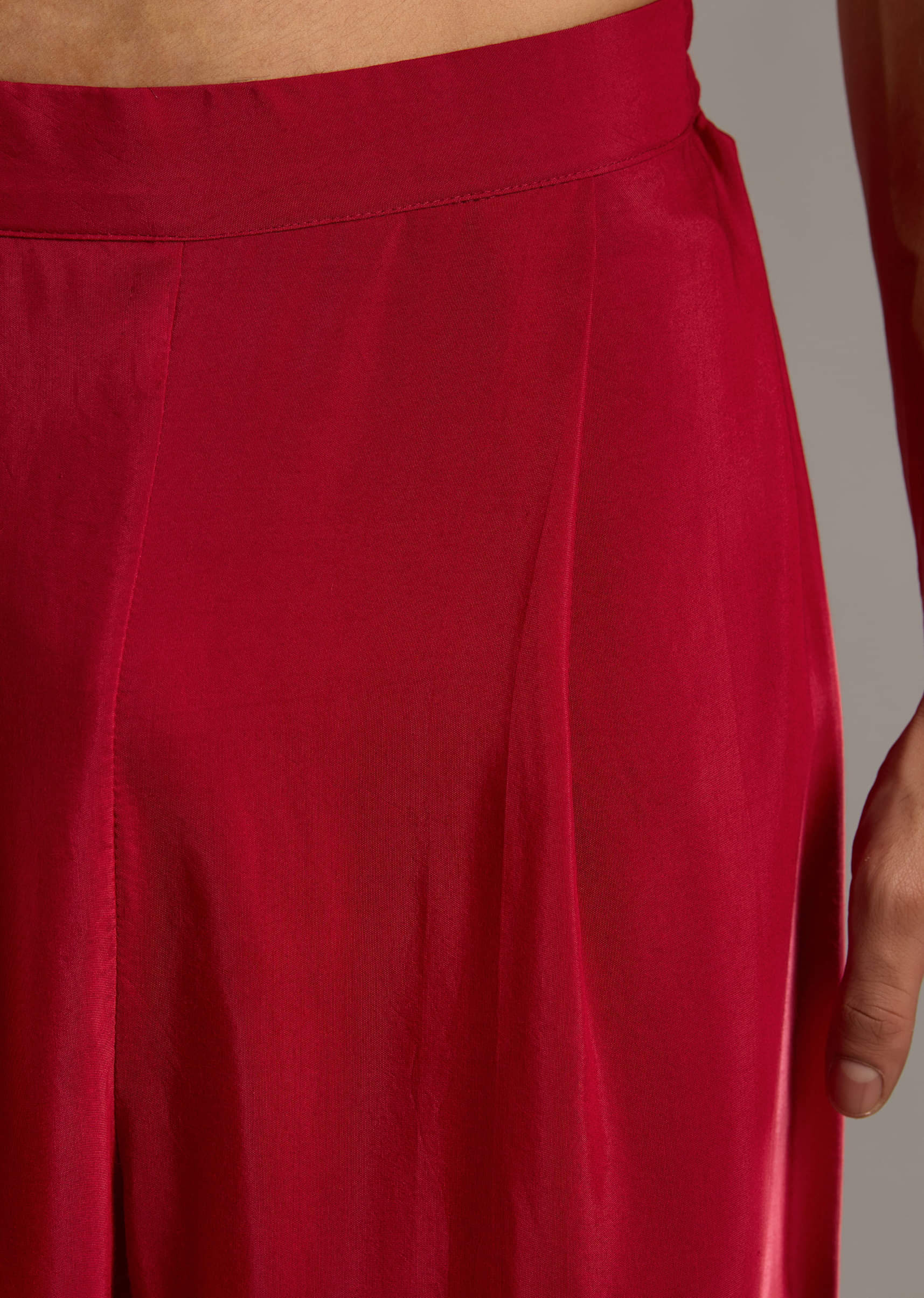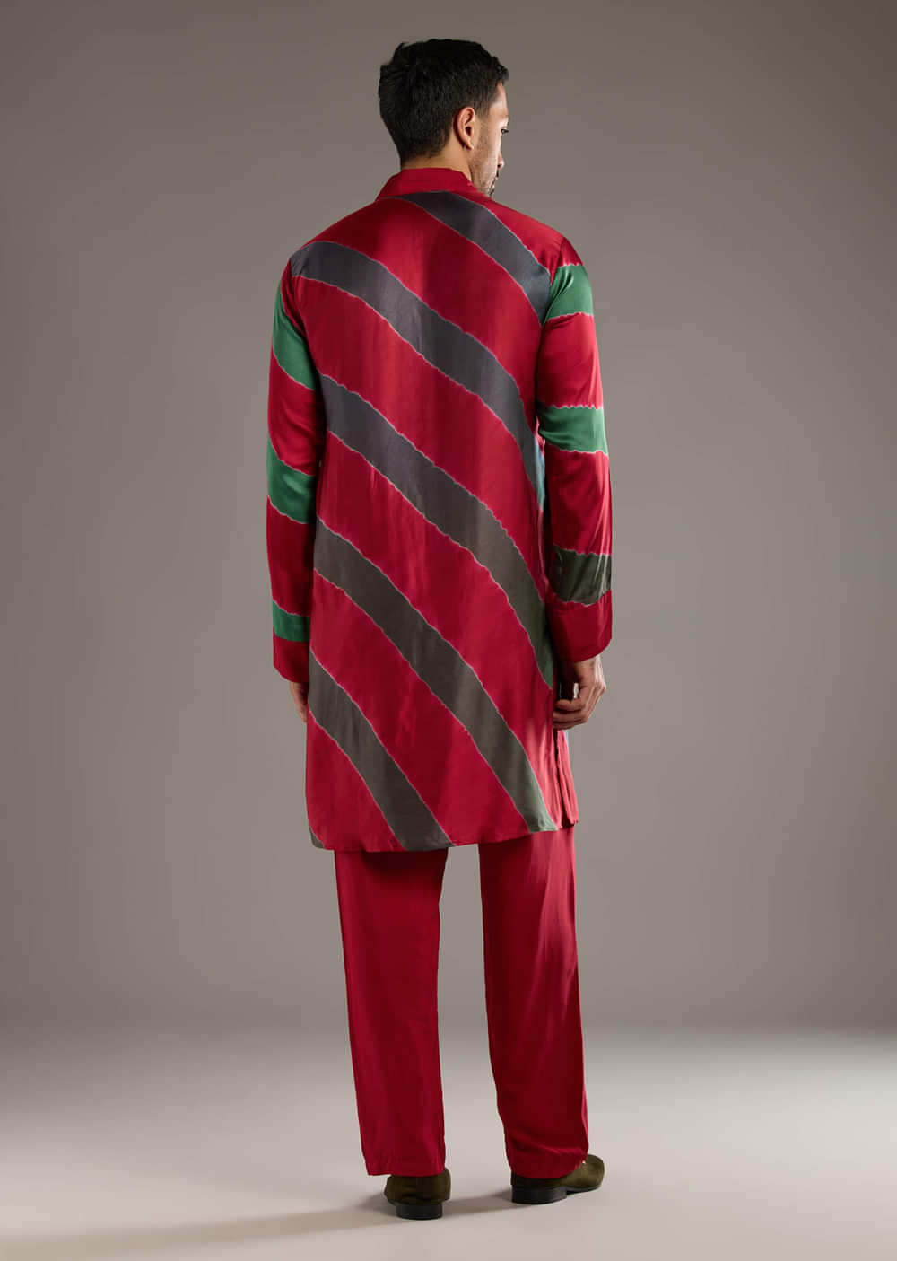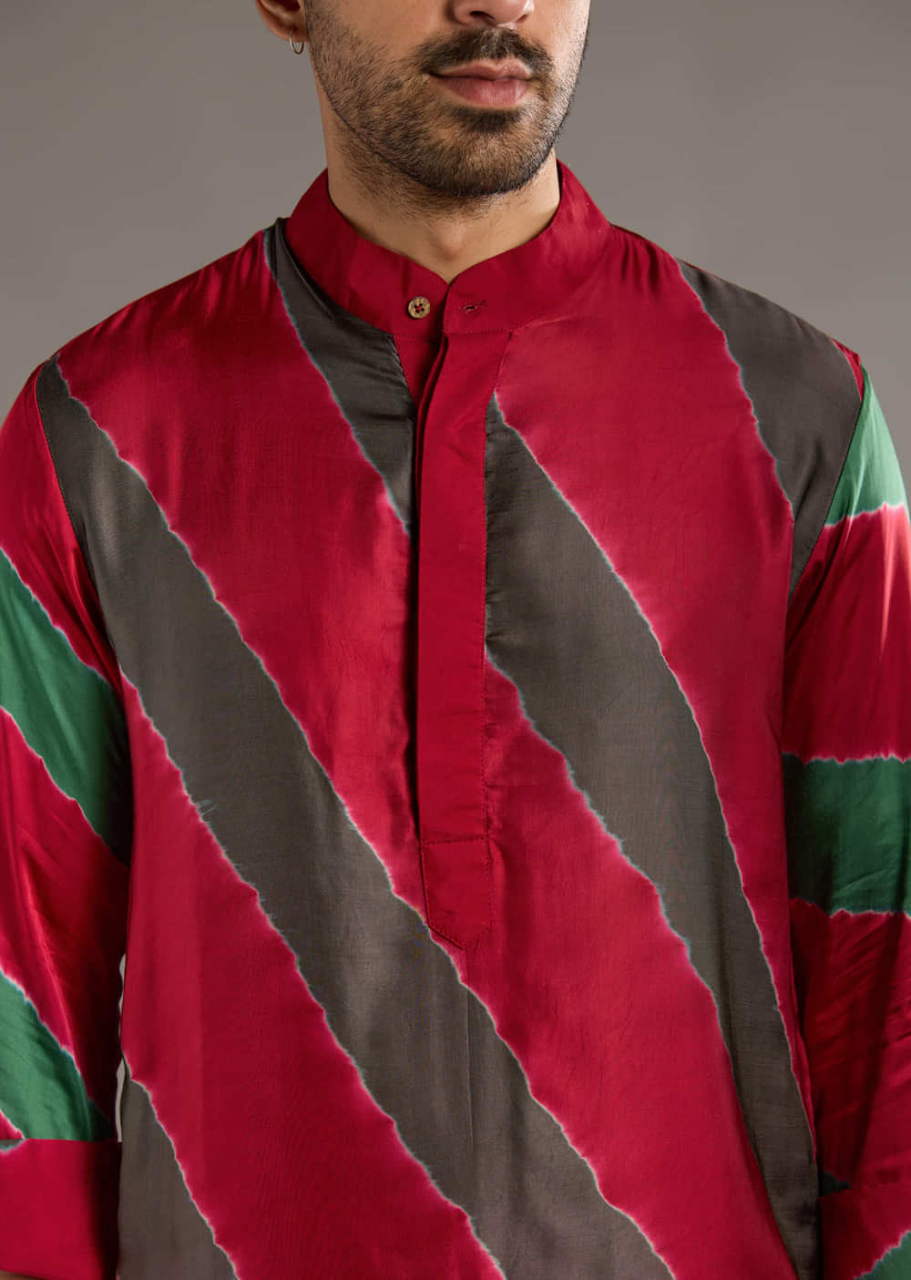 Red Modal Kurta Set For Men With Hand Dyed Leheriya Print