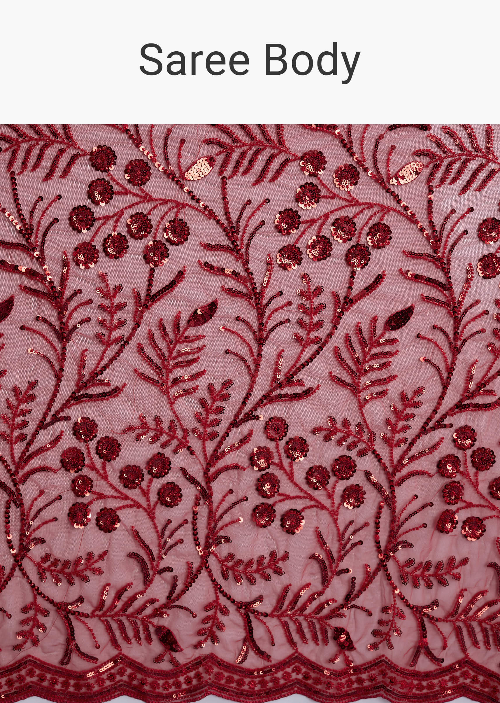 Red Net Saree With Floral Sequins Embroidery
