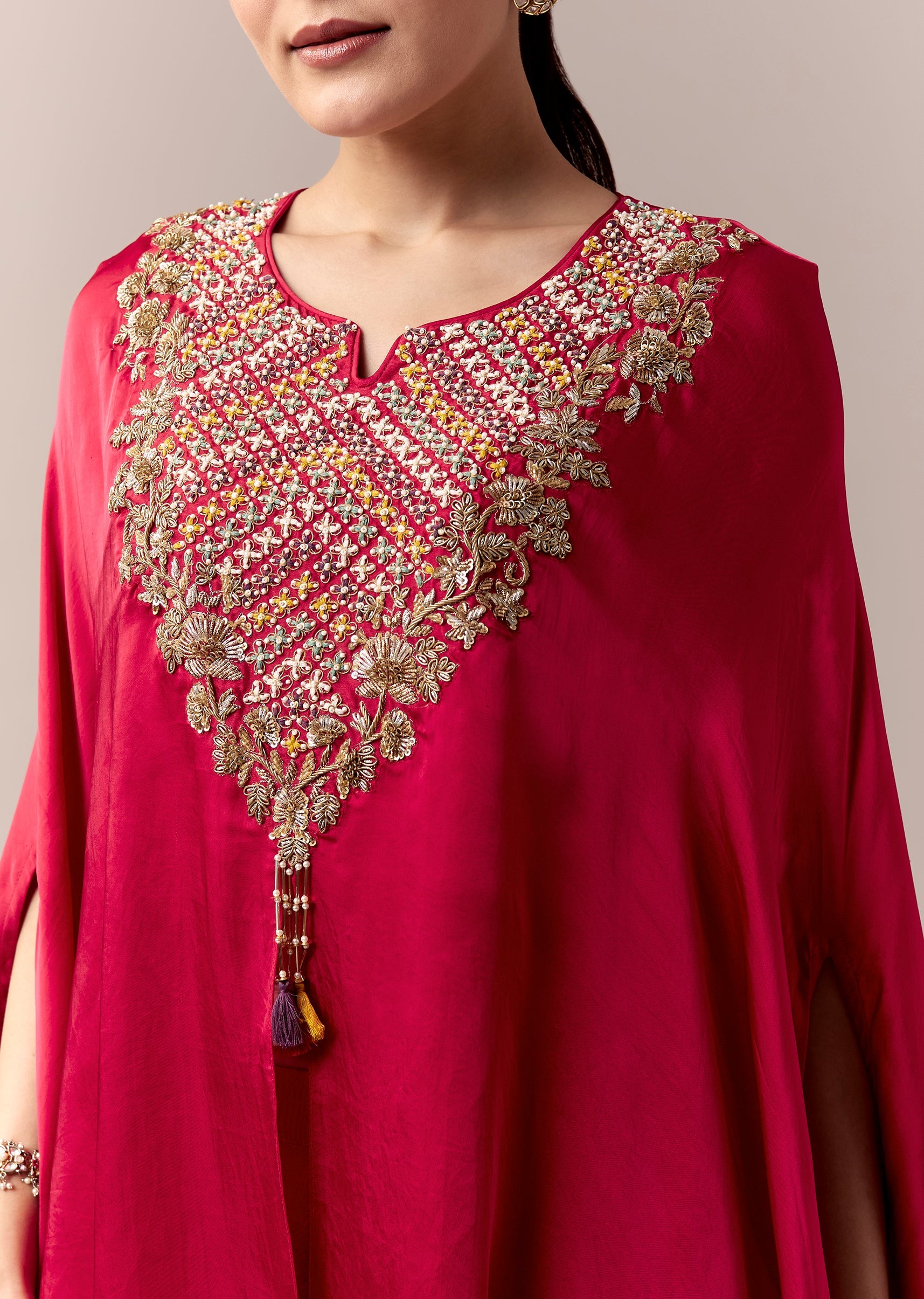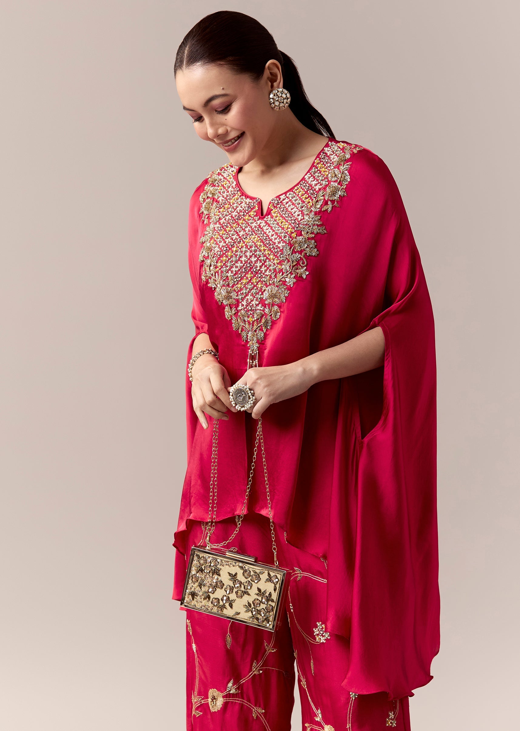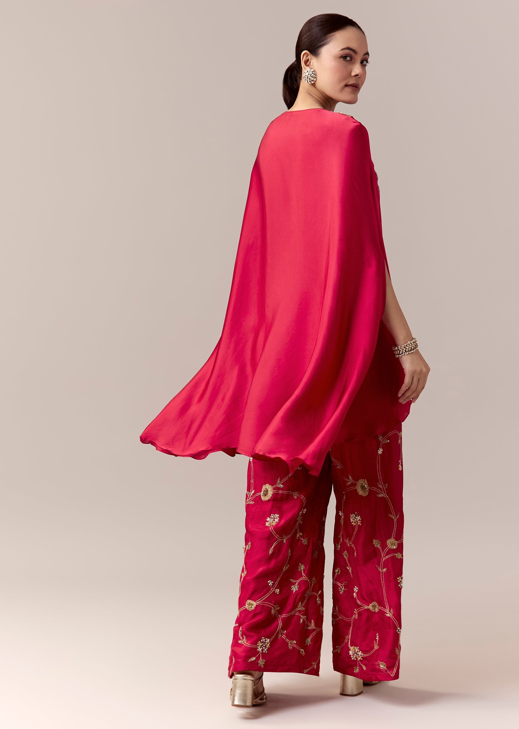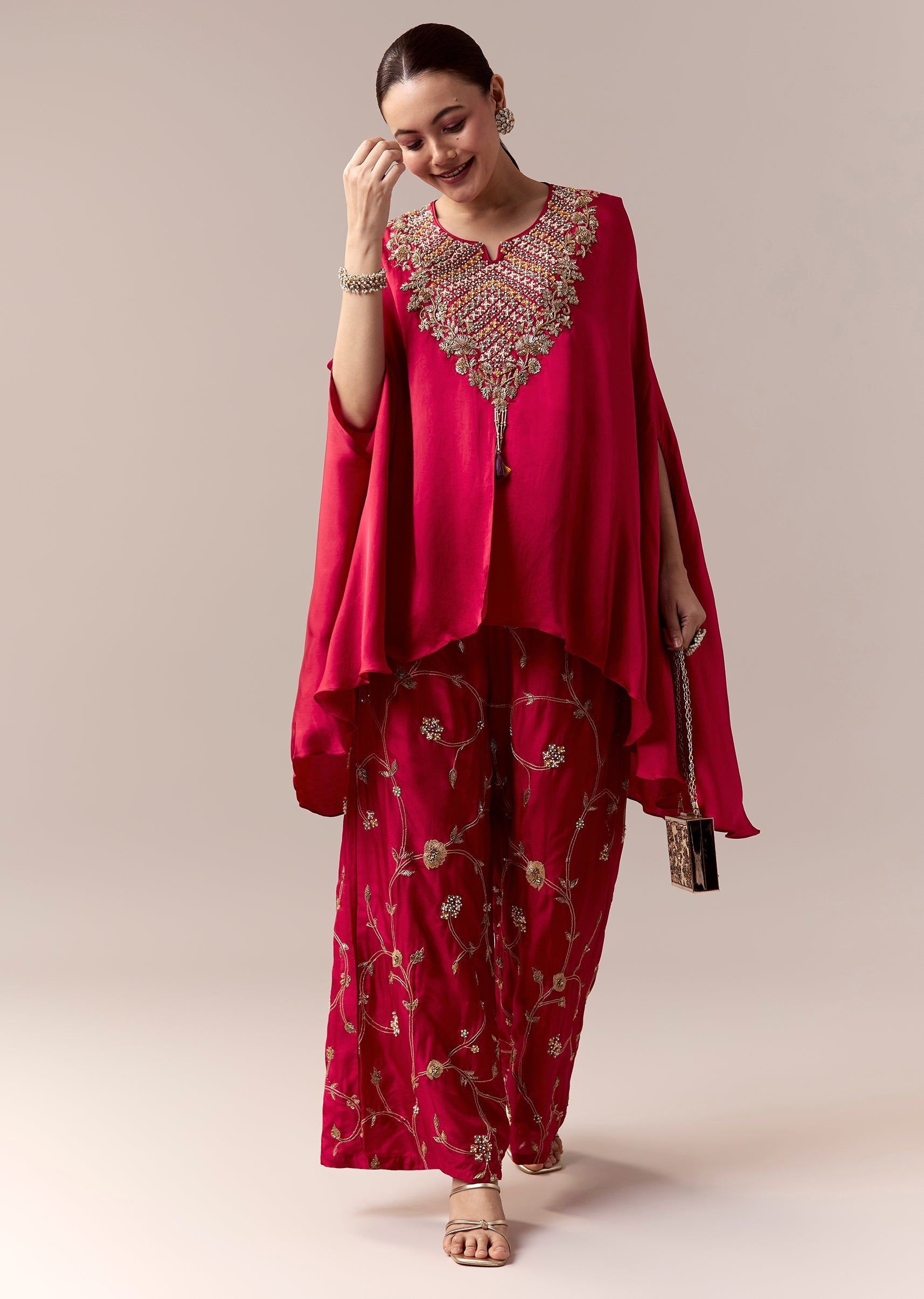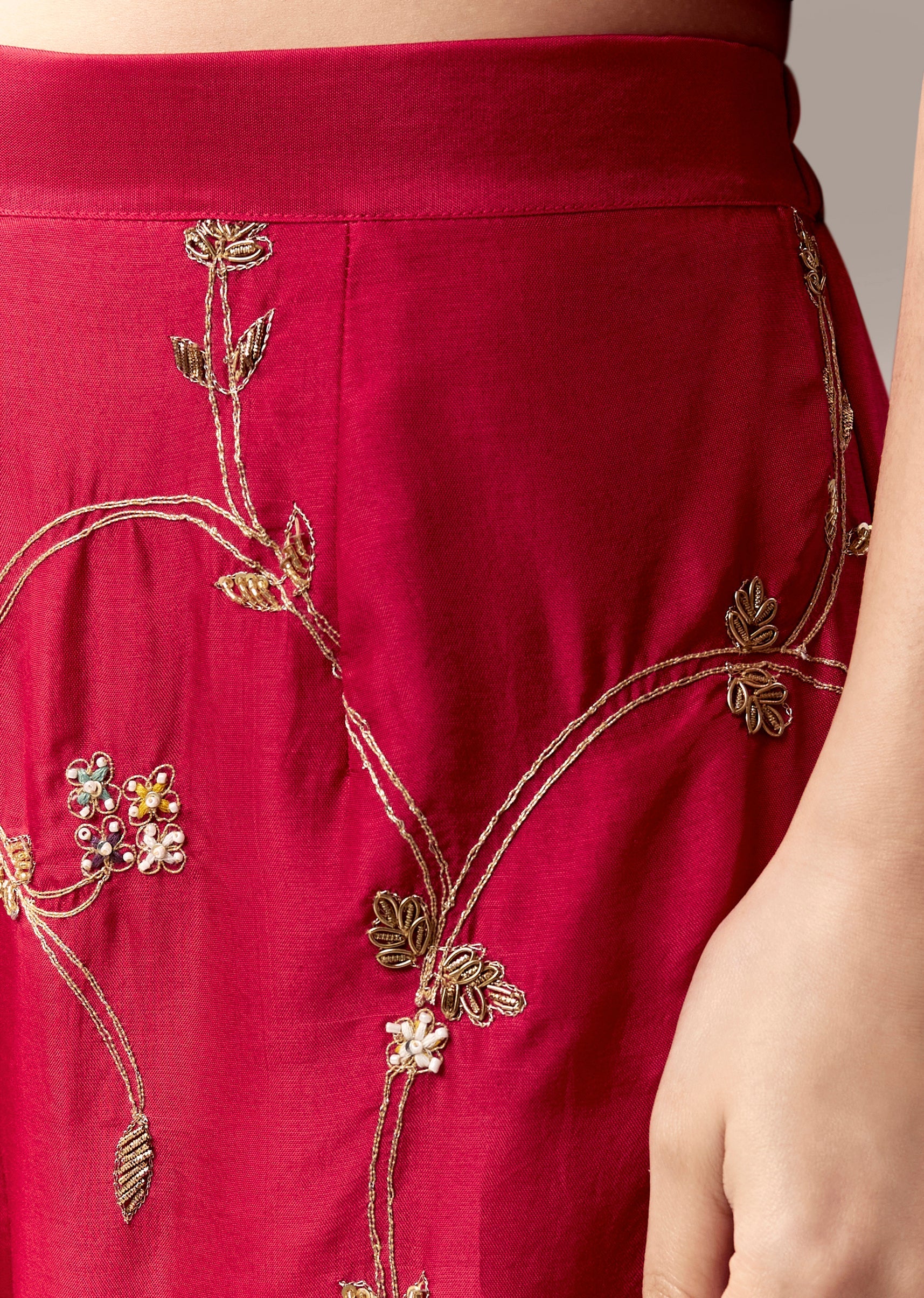 Red Palazzo Suit With Thread Zardosi And Moti Work