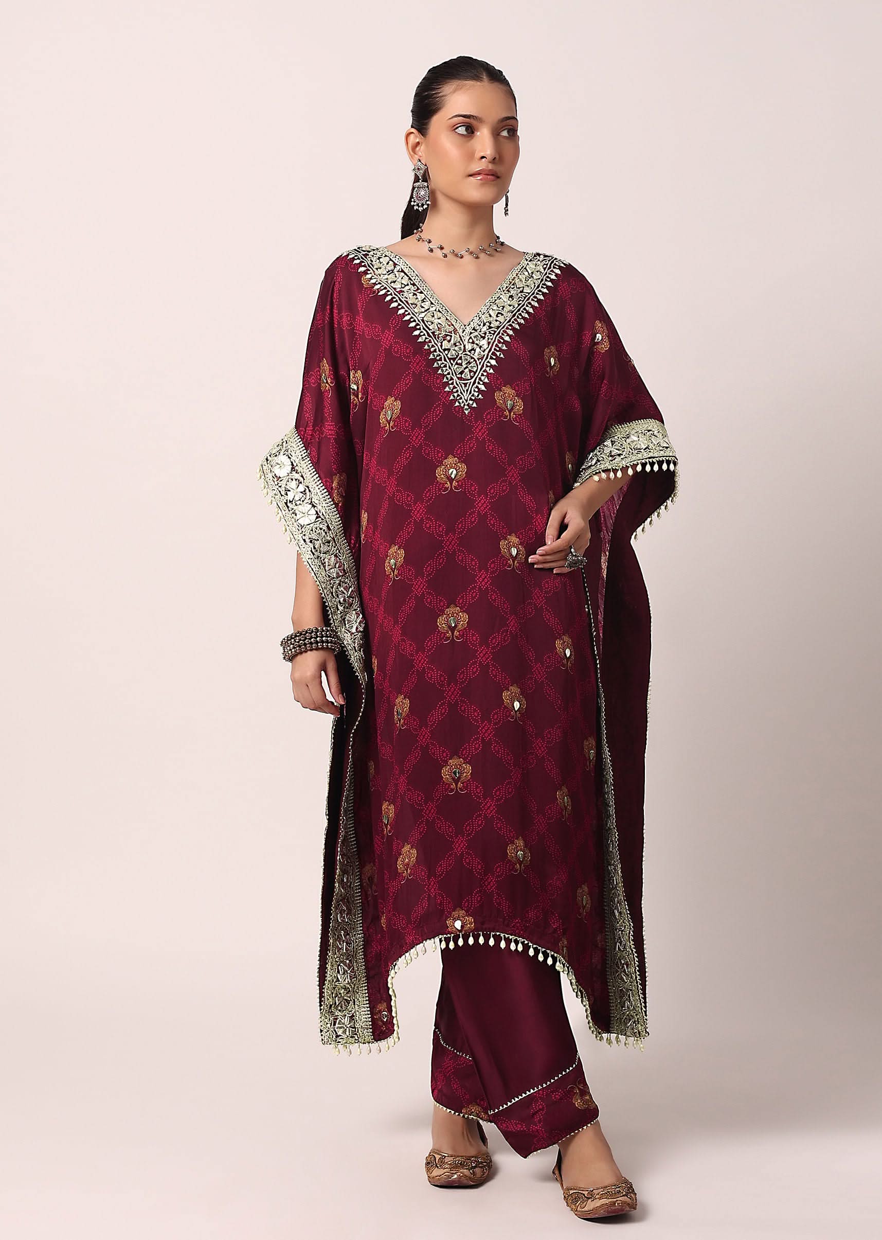 A stylish pick that will keep you chic and comfortable through the day is this pant set. Crafted in striking red hue, this kaftan kurta is adorned with mirror, gota... More Product Details