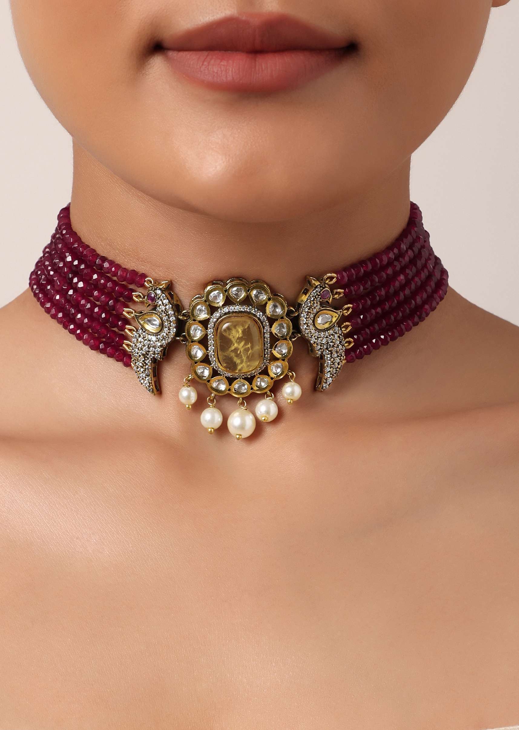 Step into the world of timeless glamour with our captivating choker set. Accented with glistening kundan, it is constructed in mix metal. Adorned with a string of layered red beads, it is accentauted with floral motif yellow pendants. Avoid contact with water, chemicals, harsh liquids, perfumes, etc.Do not wear this piece of jewelry while showering, gymming, swimming, etc.Please keep the product away from moisture and humidity when not in use. Awarded as the Most Trusted Brand, we're delivering styles you love, just as promised.