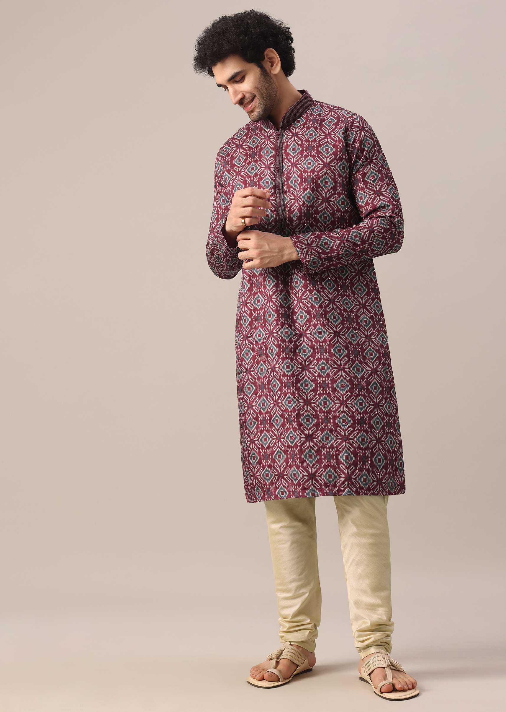 Crafted from silk this exquisite kurta is the perfect choice for year-round festive holidays. Enhanced with delicate embroidery on the yoke and neckline it boasts of stunning prints all-over. The... More Product Details