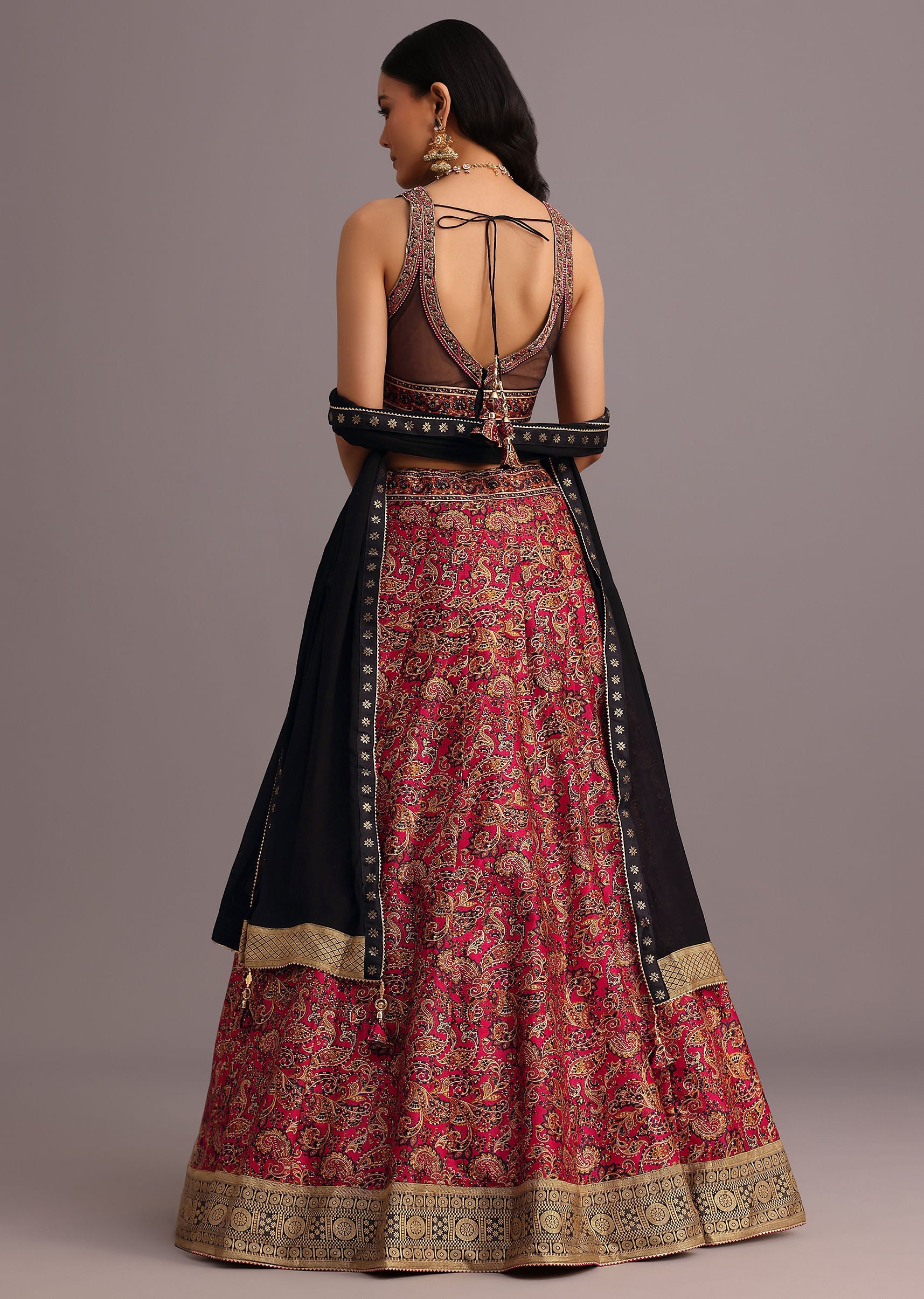 Red Printed Zari Embroidered Lehenga Choli With Dupatta