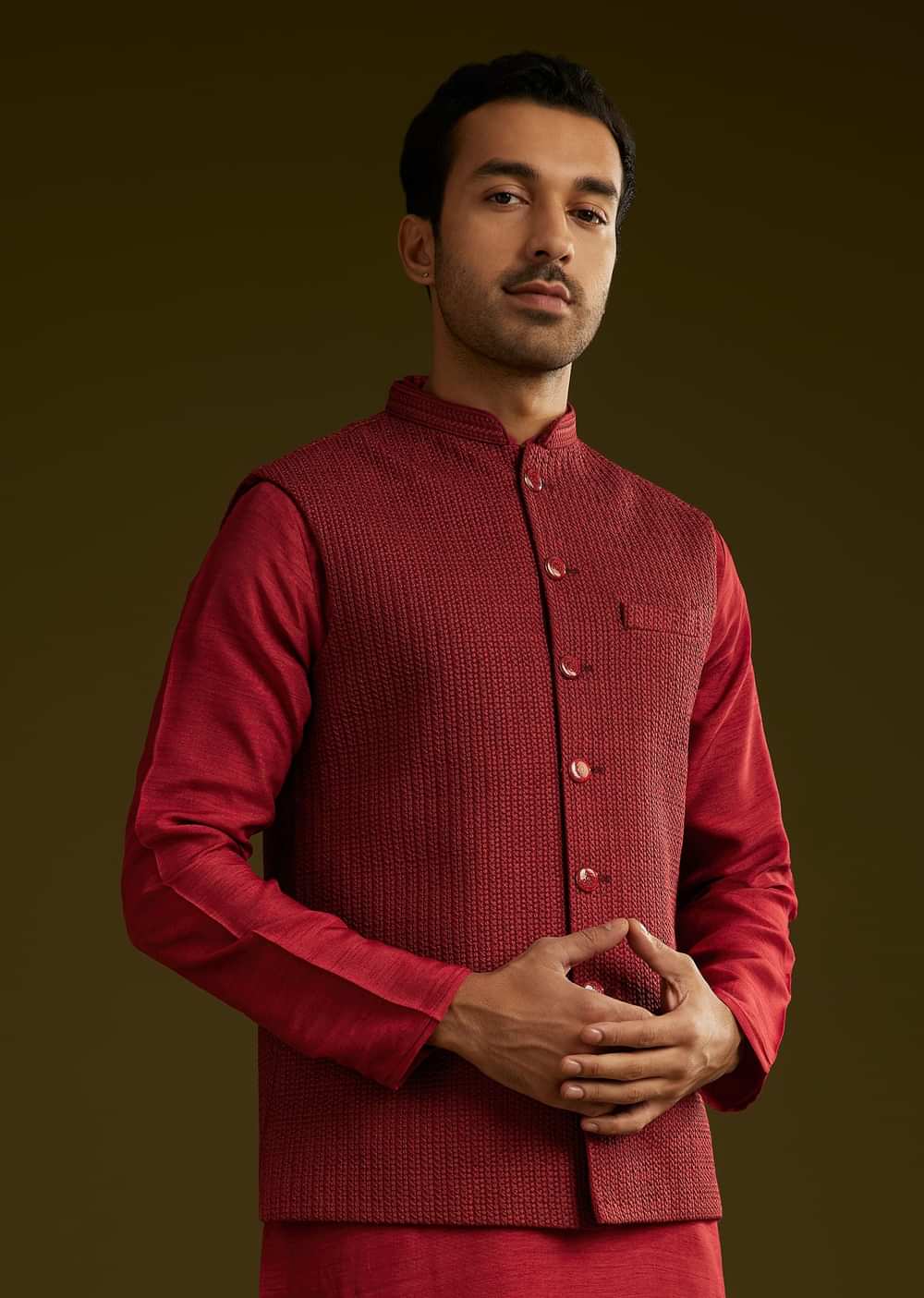 A bold red rayon kurta jacket set with a minimalistic nowork design. The mandarin collar full sleeves and front button closure make it a versatile addition to any ethnic wardrobe..Awarded As The Most Trusted Brand We'Re Delivering Styles You Love Just As Promised.