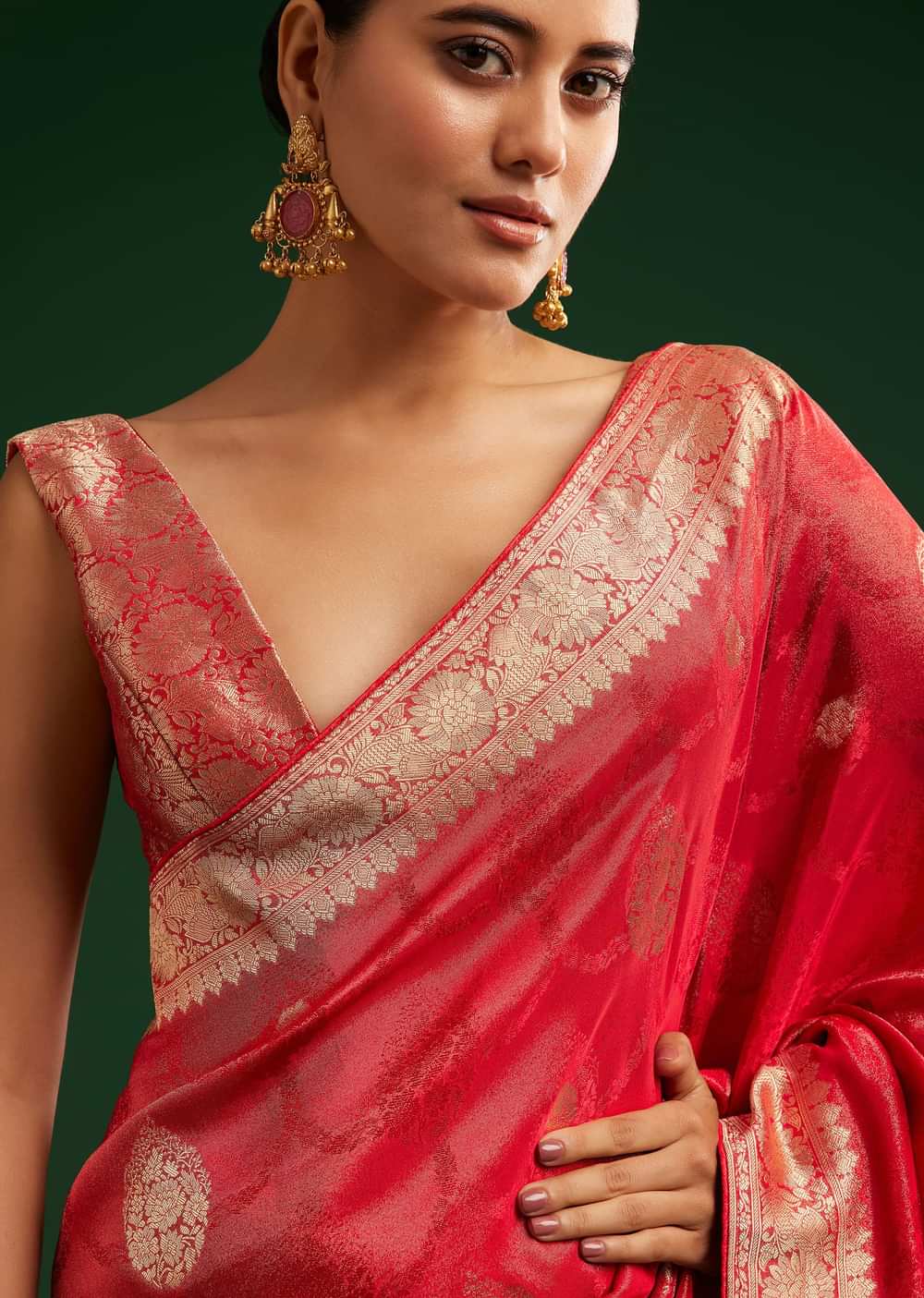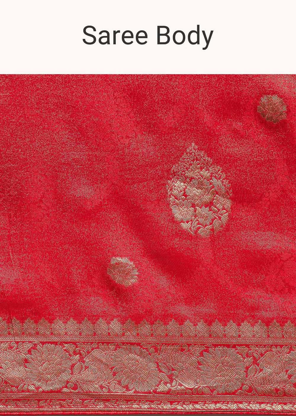 Red Saree With Zari Motif and Heavy Embroidered Blouse