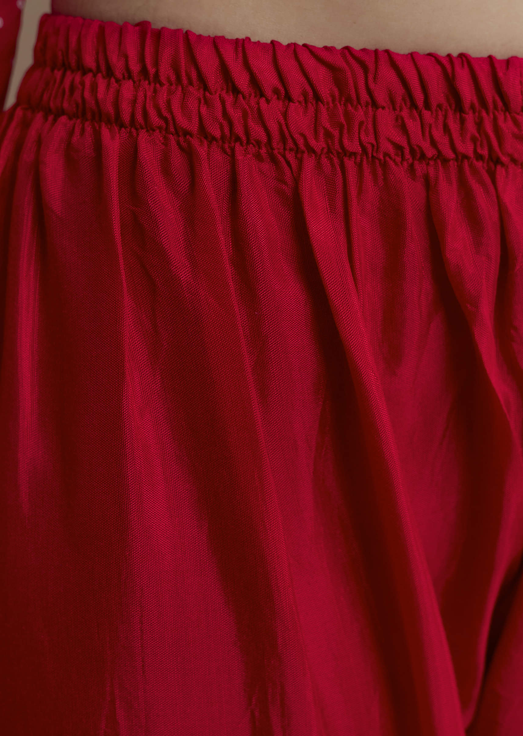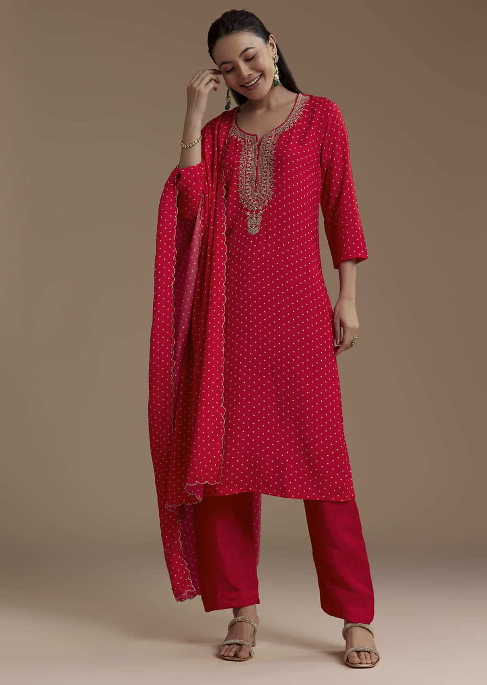 Red Silk Bandhani Print Kurta Set with Zari Work