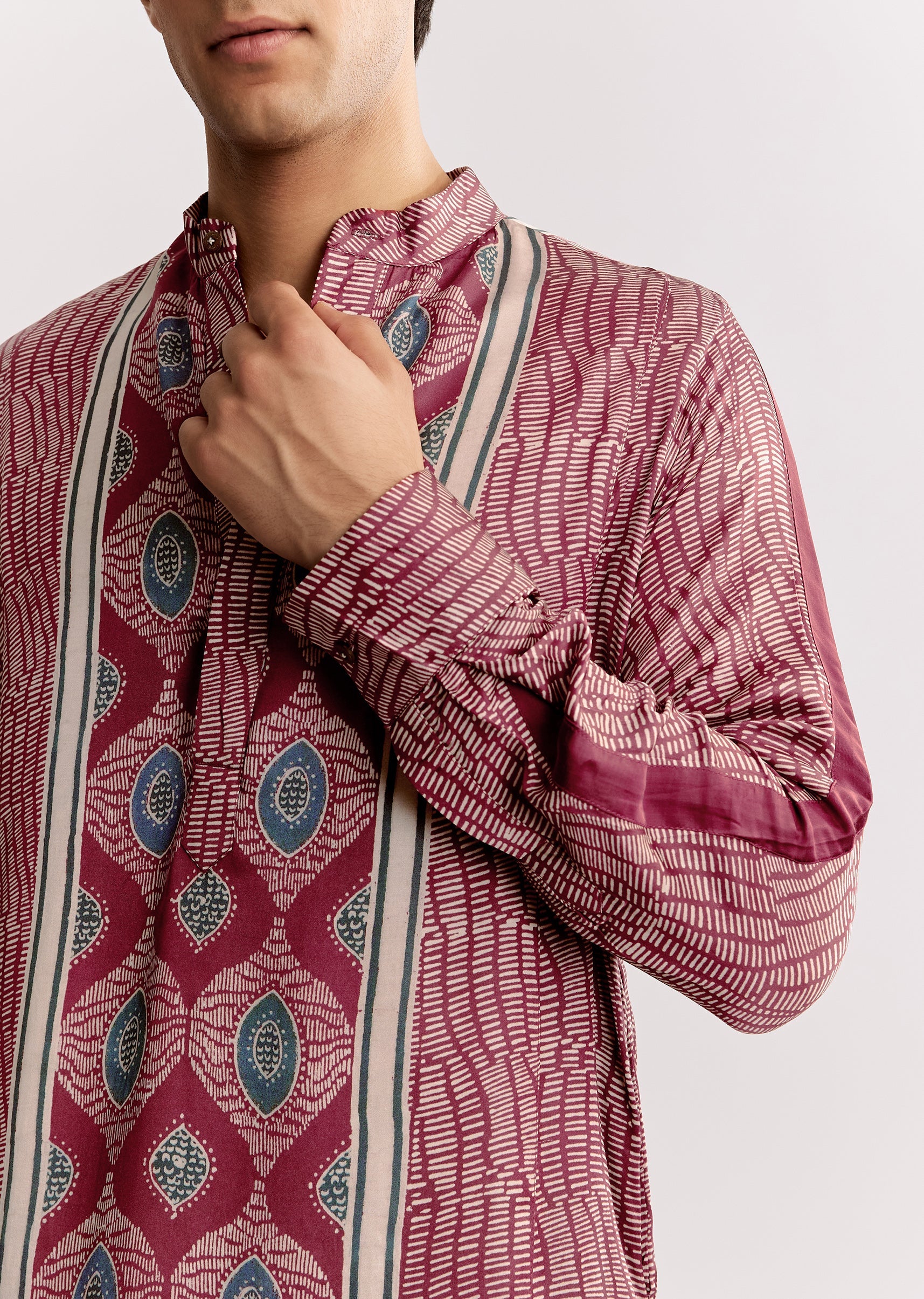 Commanding And Classic This Red Silk Kurta Jacket Set Glows With Ajrakh Craftsmanship Ideal For Ceremonies That Celebrate Roots And Regality.Awarded As The Most Trusted Brand We'Re Delivering Styles You Love Just As Promised.